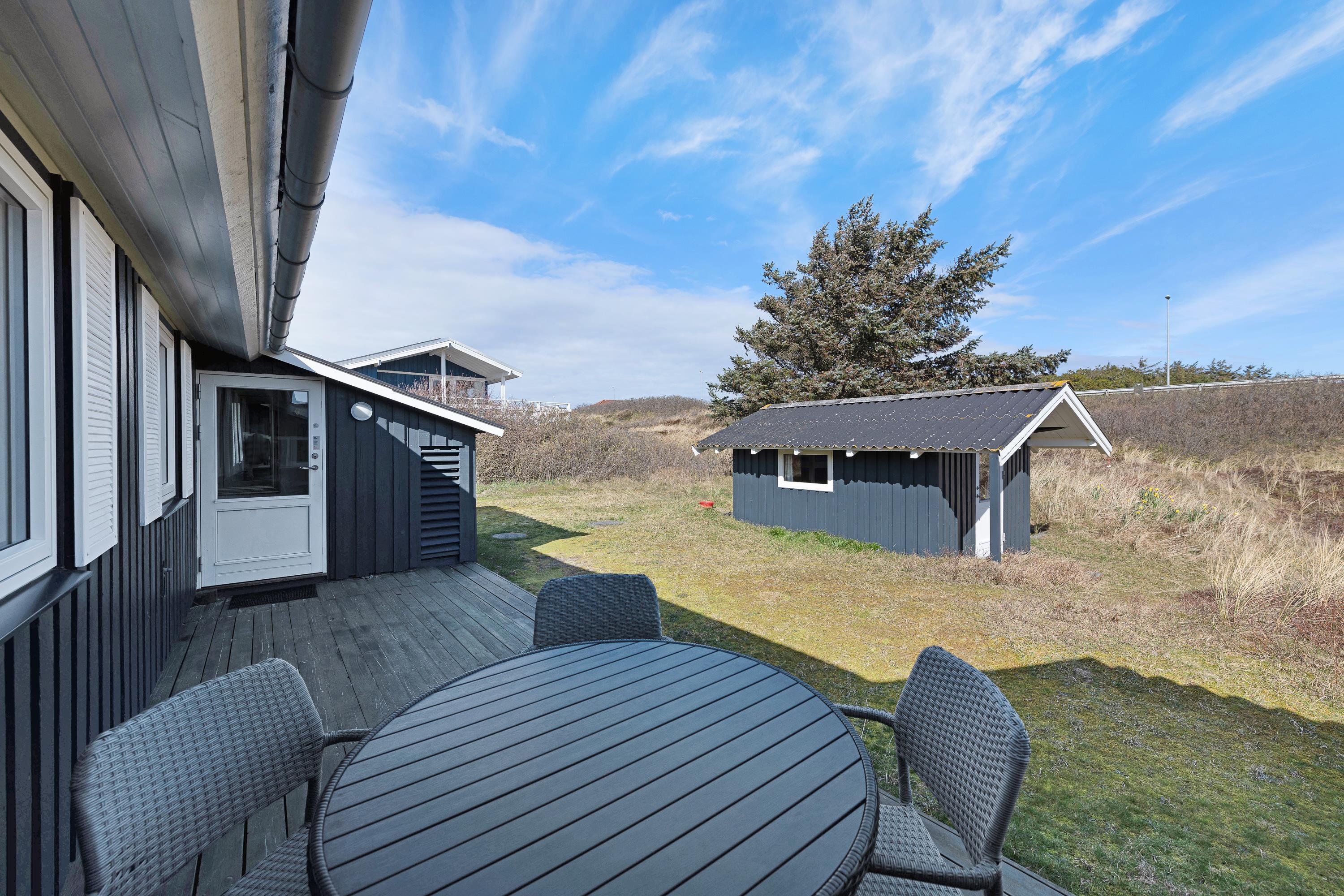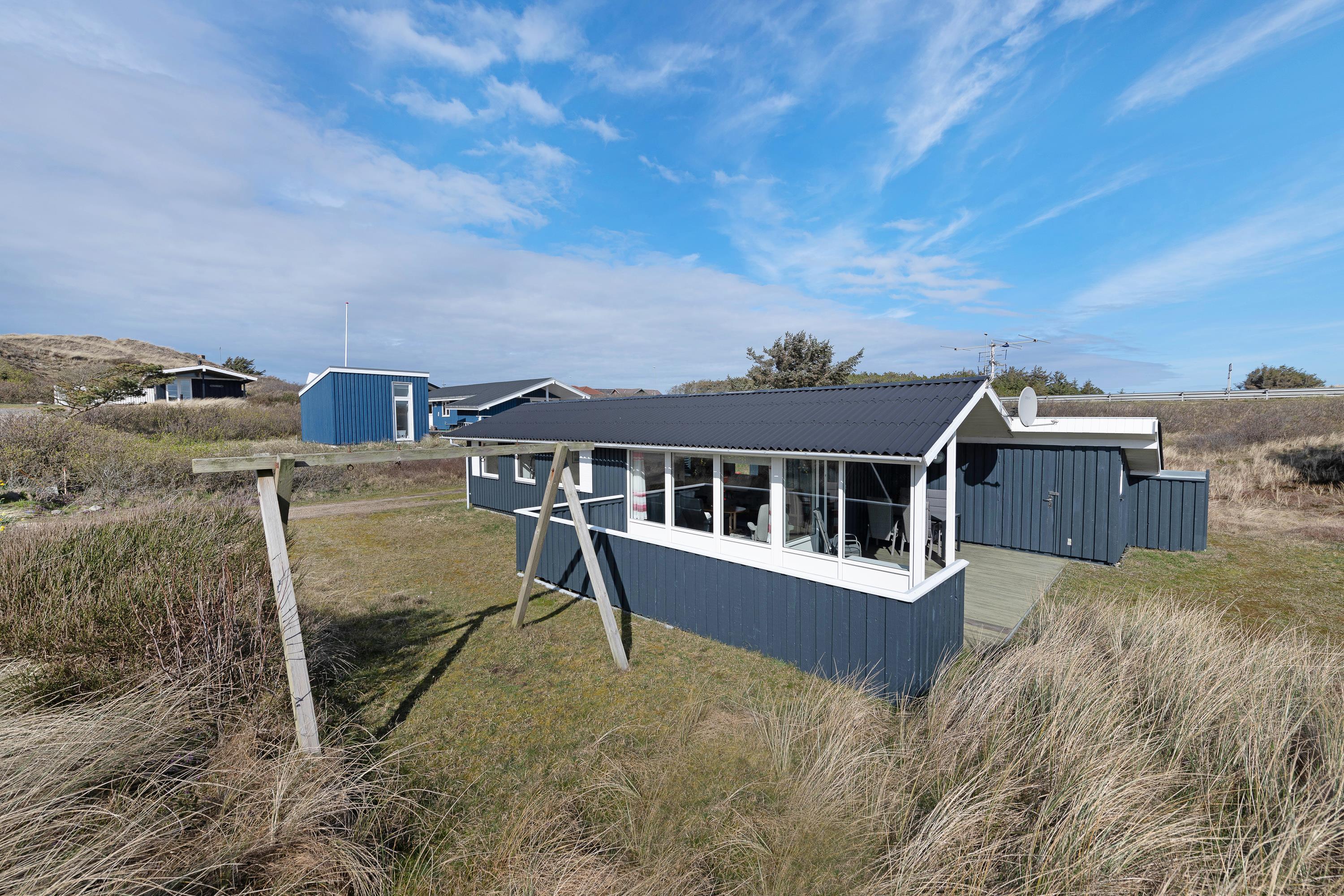 Sommerhuset på Søndergade 76 ligger på en flot naturgrund kun 350 meter fra stranden ved Vesterhavet og endnu kortere fra Ringkøbing Fjord i modsat retning. Både børn, voksne og hunde vil elske en tur til vandet, der året rundt byder på store naturoplevelser og dejlig havluft. Om aftenen kan I nyde de storslåede, romantiske solnedgangene fra toppen af klitterne, imens I mærker den friske vind i kinderne.
