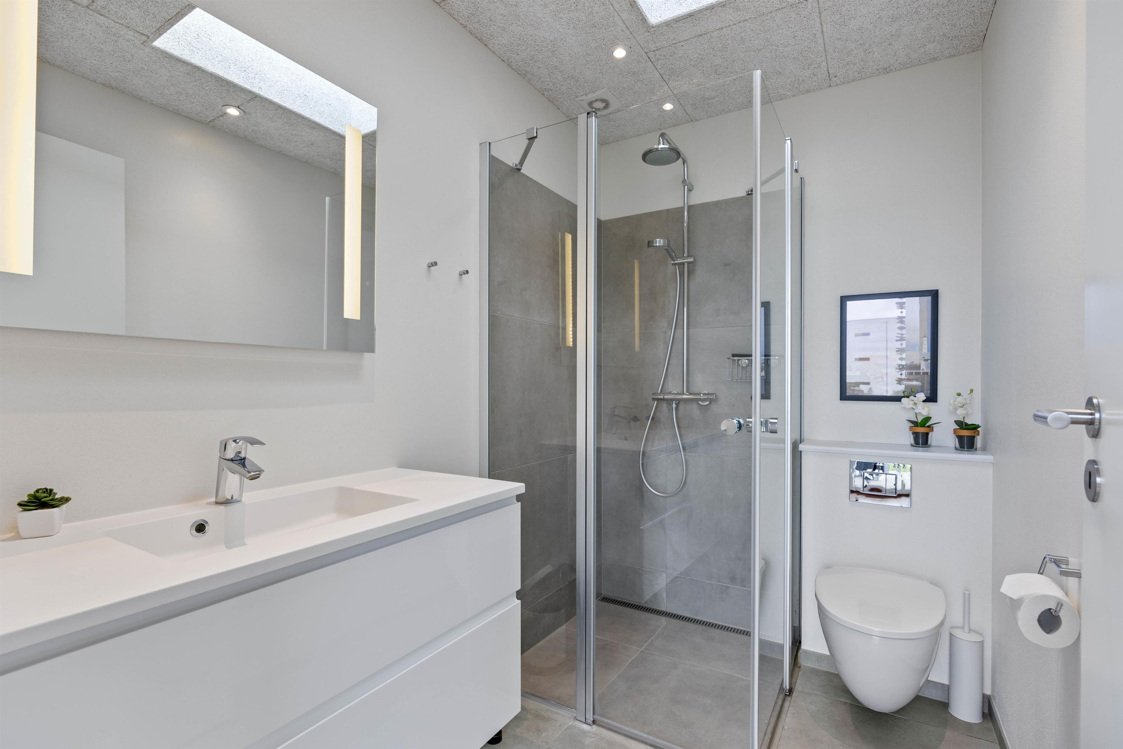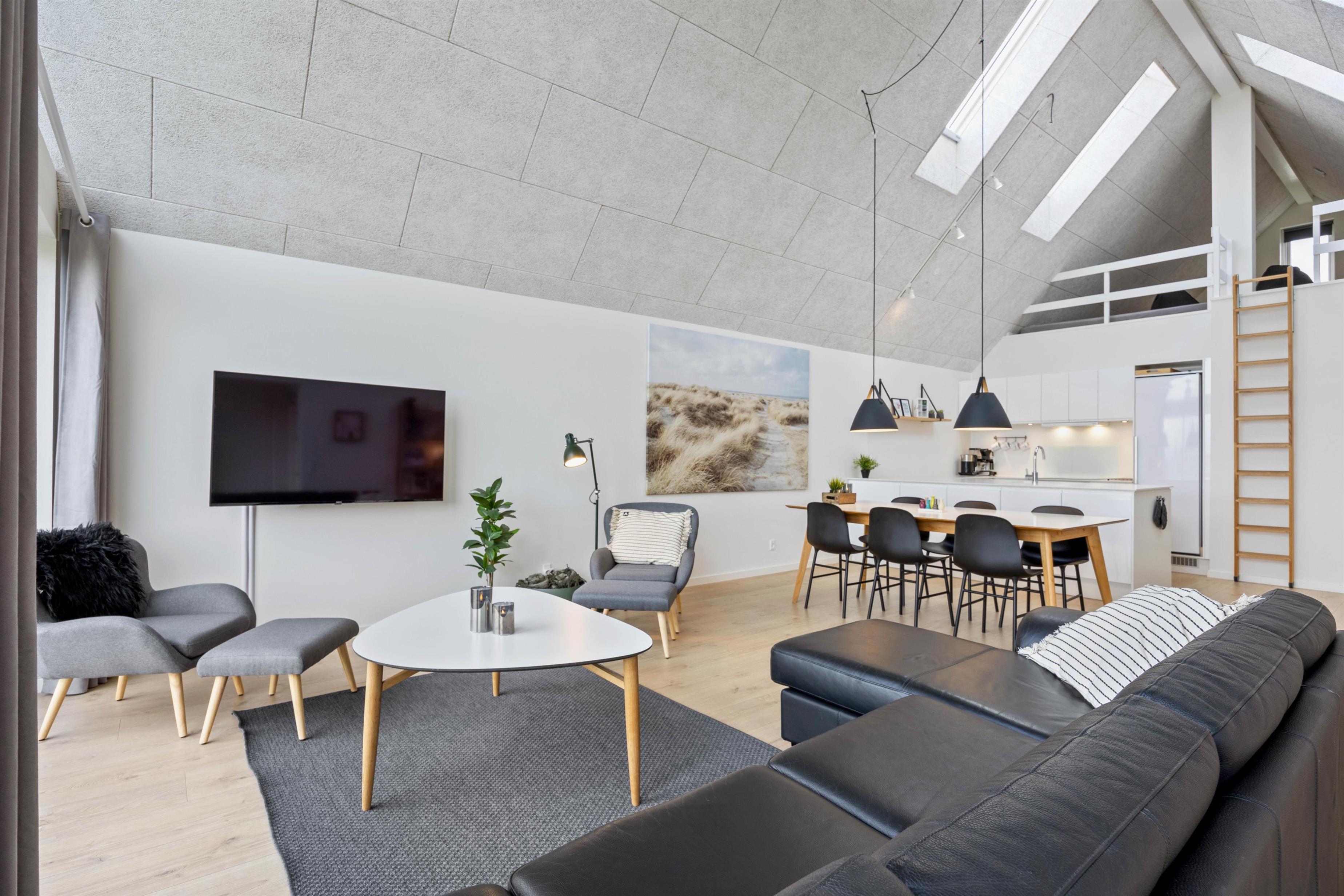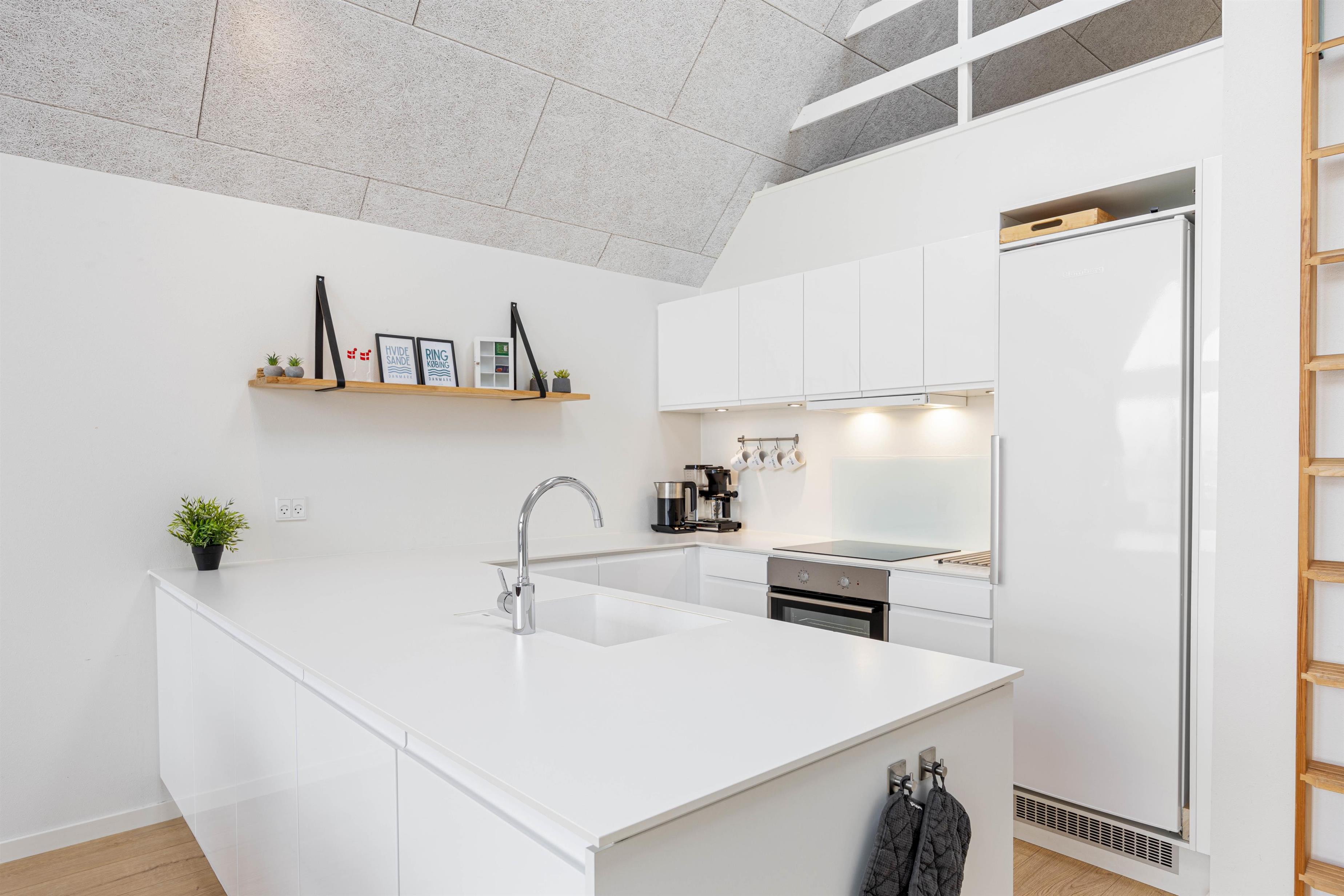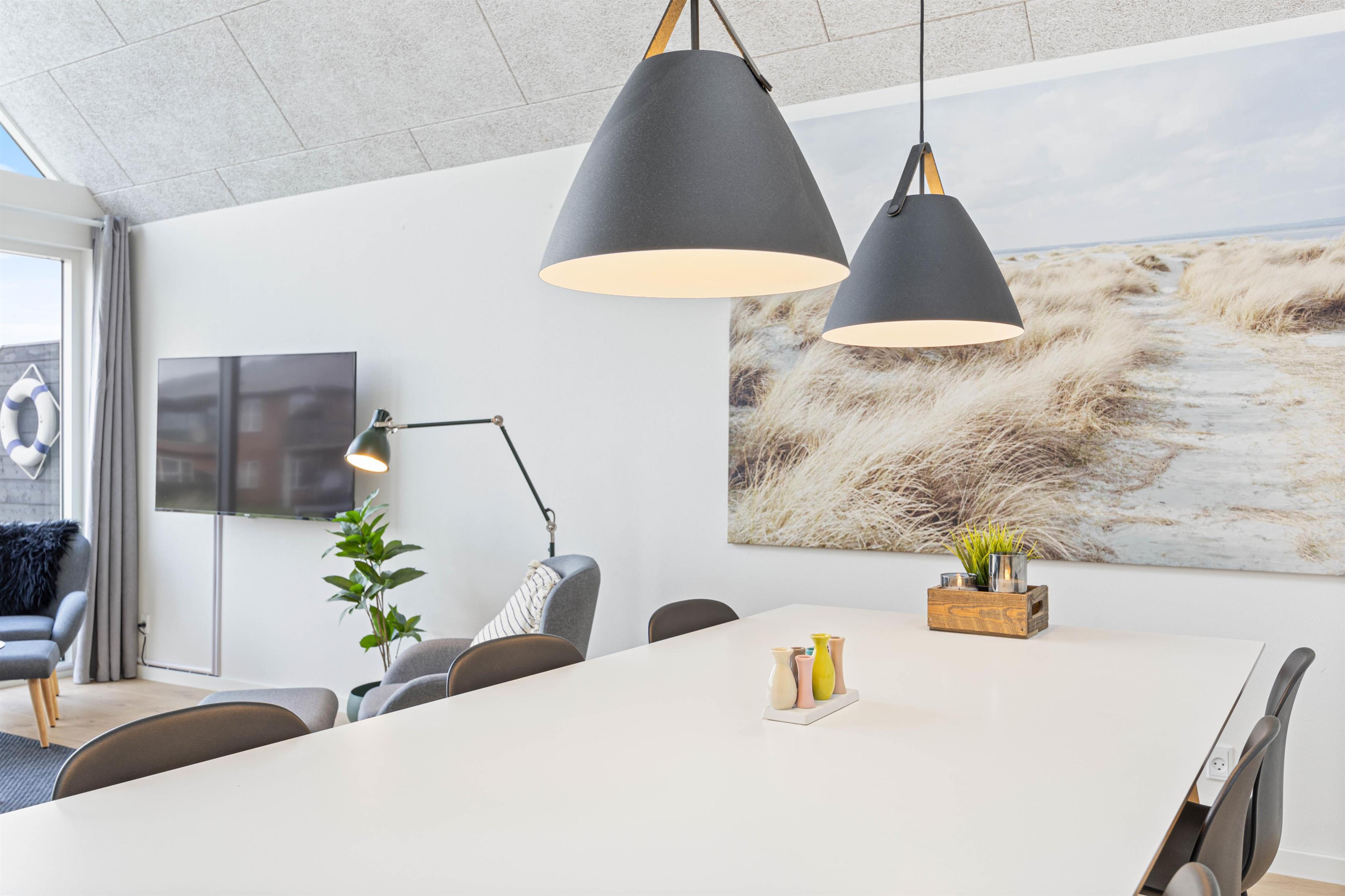 Feriehuset er lyst og lækkert indrettet med gulvvarme overalt og med alle moderne bekvemmeligheder, bl.a. opvaskemaskine, vaskemaskine og tørretumbler. Med de 2 fine badeværelser undgår I ventetid til tandbørstningen - og det er ideelt til 2 familier, der gerne vil holde ferie sammen.