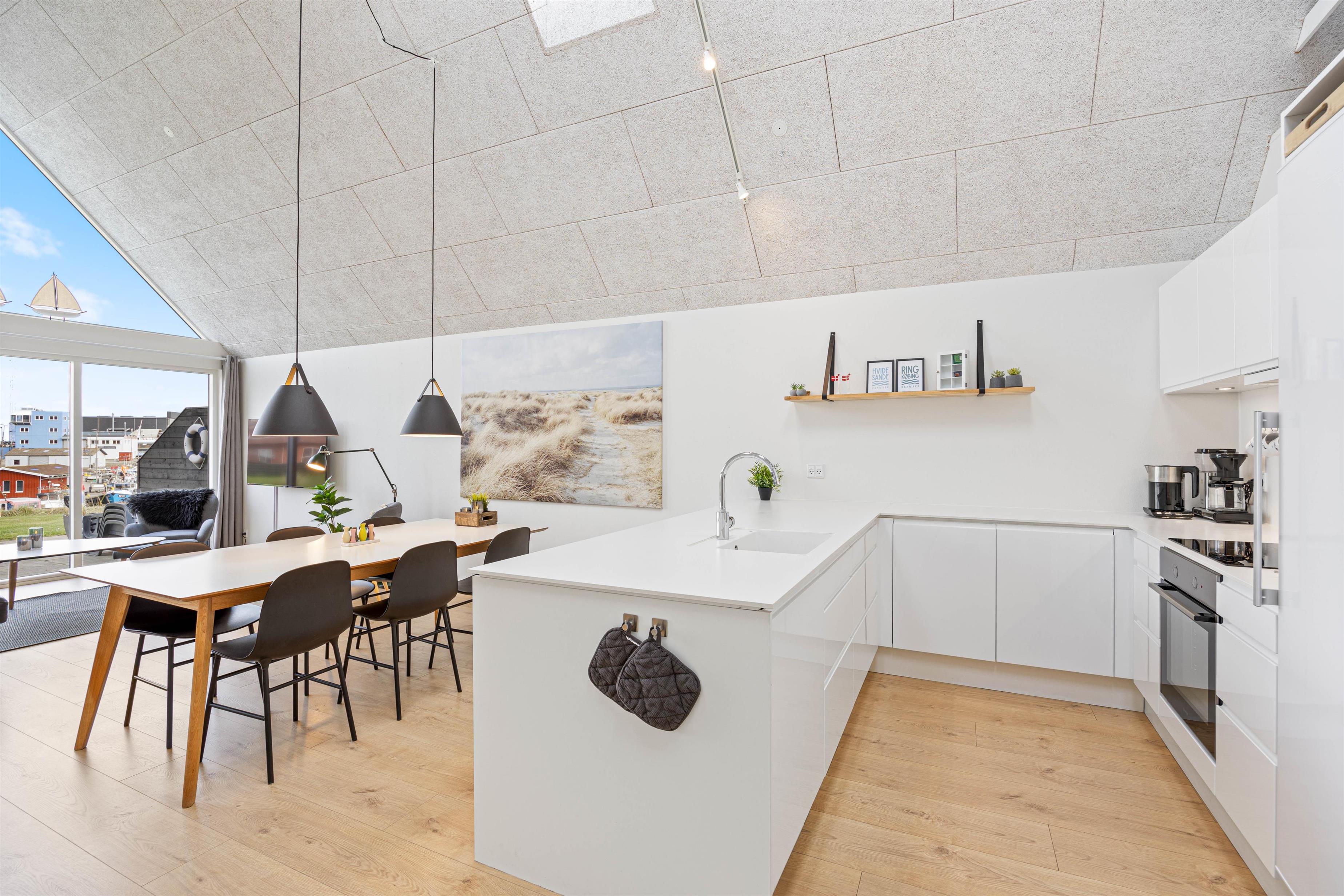 Midt i Hvide Sande på Kirkevej 3C finder I dette lækre og topmoderne byhus, færdigbygget i 2020. Herfra er der udsigt over den oprindelige havn og slusen. Med sine 120 kvadratmeter er der rigtig god plads til 5 personer og måske familiens firbenede ven. Feriehuset er flot og lyst indrettet med loft til kip og store vinduespartier mod nord, som giver et fantastisk lys.