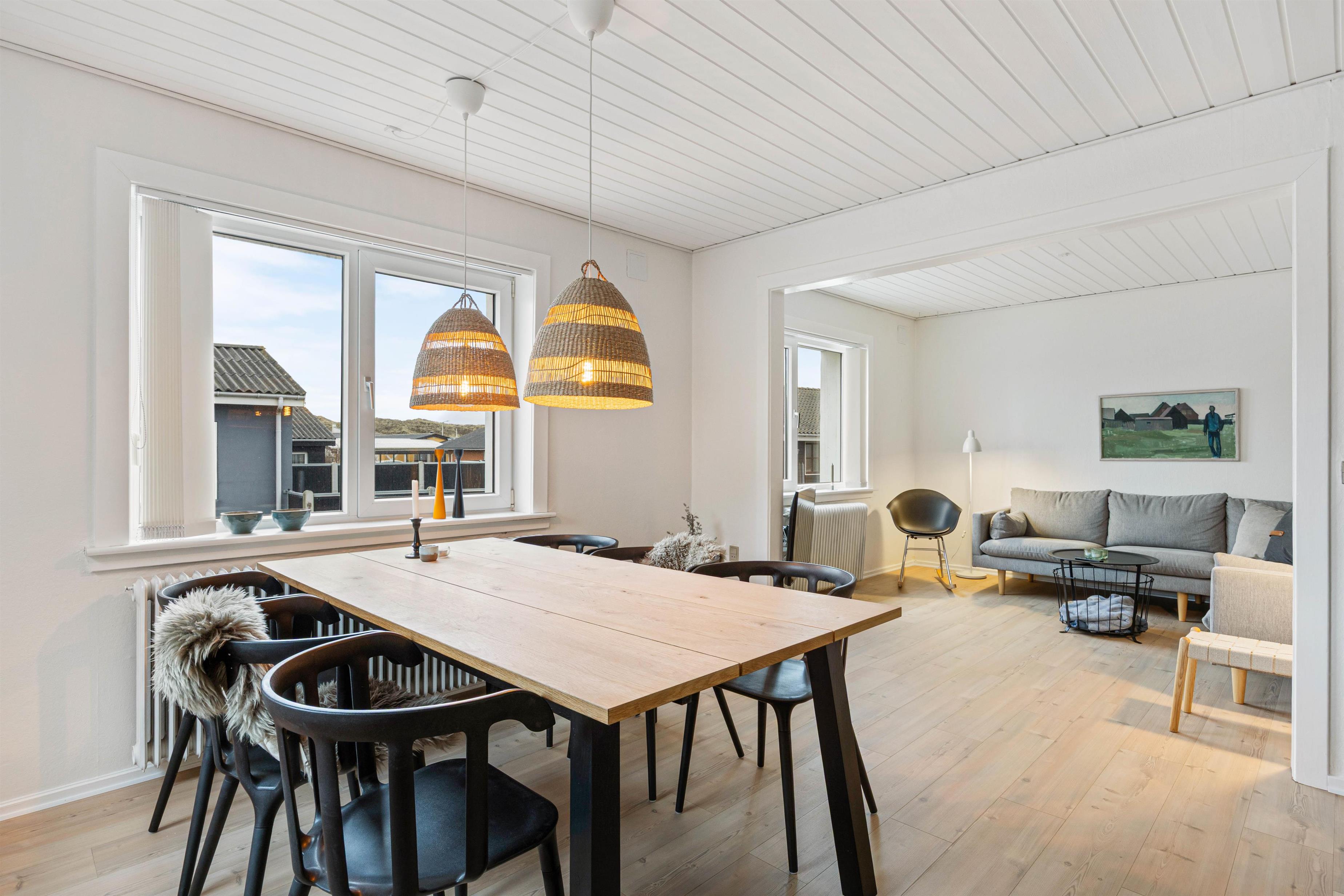 Huset ligger centralt på sydsiden i Hvide Sande, hvilket gør det nemt for jer at nå tingene til fods. I har kun 750 meter til nærmeste indkøbsmuligheder, og I kan gå til havnen i Hvide Sande og alle de hyggelige restauranter, bagerier og butikker. Endnu tættere på er Vesterhavet og sydstranden, hvor I kan gå tur på moleanlægget og bade - om sommeren er her et bemandet livreddertårn.
