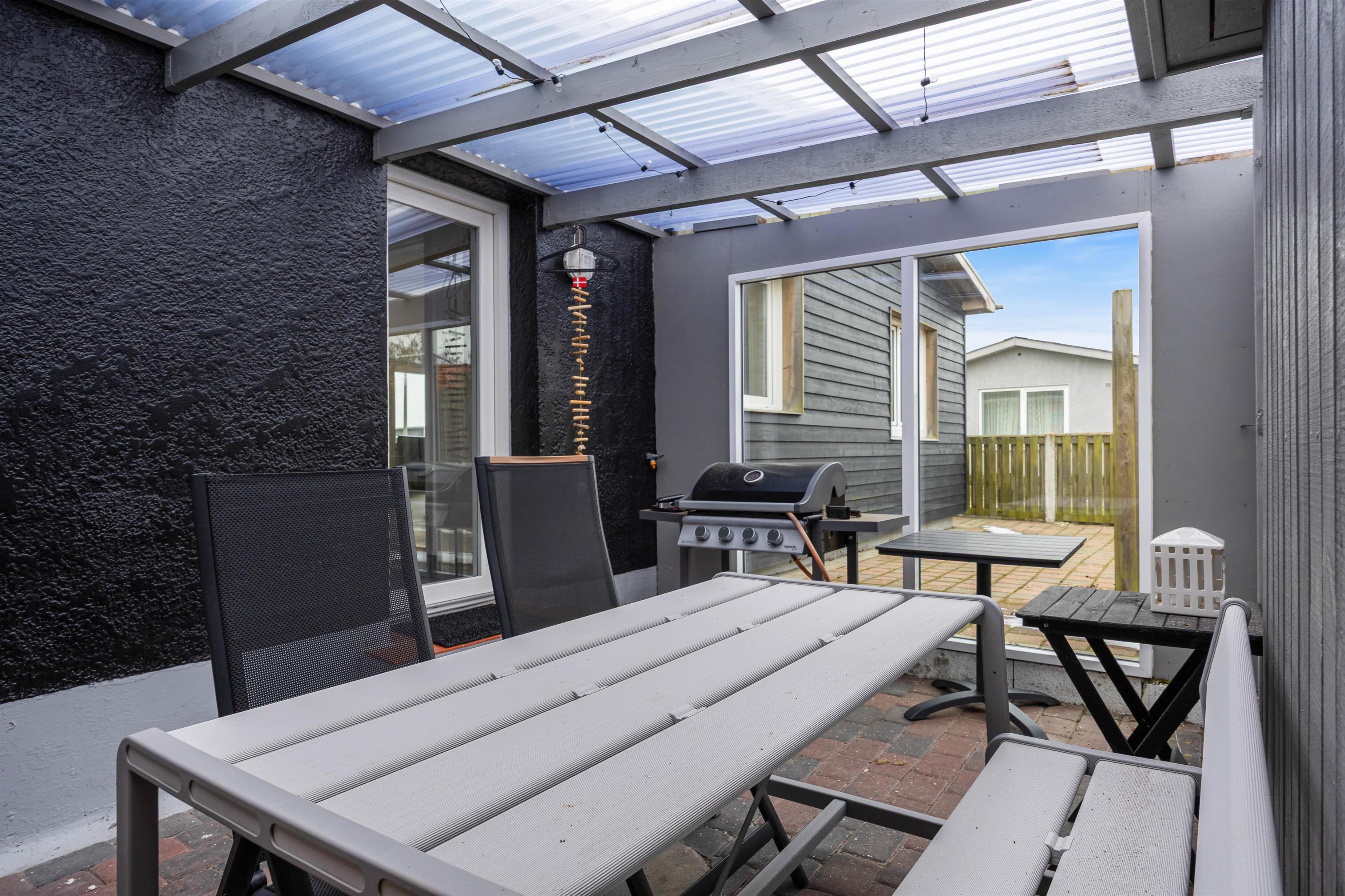 Sommerhuset har en udestue, hvilket giver jer et ekstra sted at samles, når solen går ned, eller vinden tager til. Det er et rigtig hyggeligt sted at sidde en sommeraften og nyde et glas vin. I udestuen finder I gasgrillen, som giver jer muligheden for at tilberede et lækkert måltid, der kan nydes i udestuen eller ude på den afskærmede terrasse.