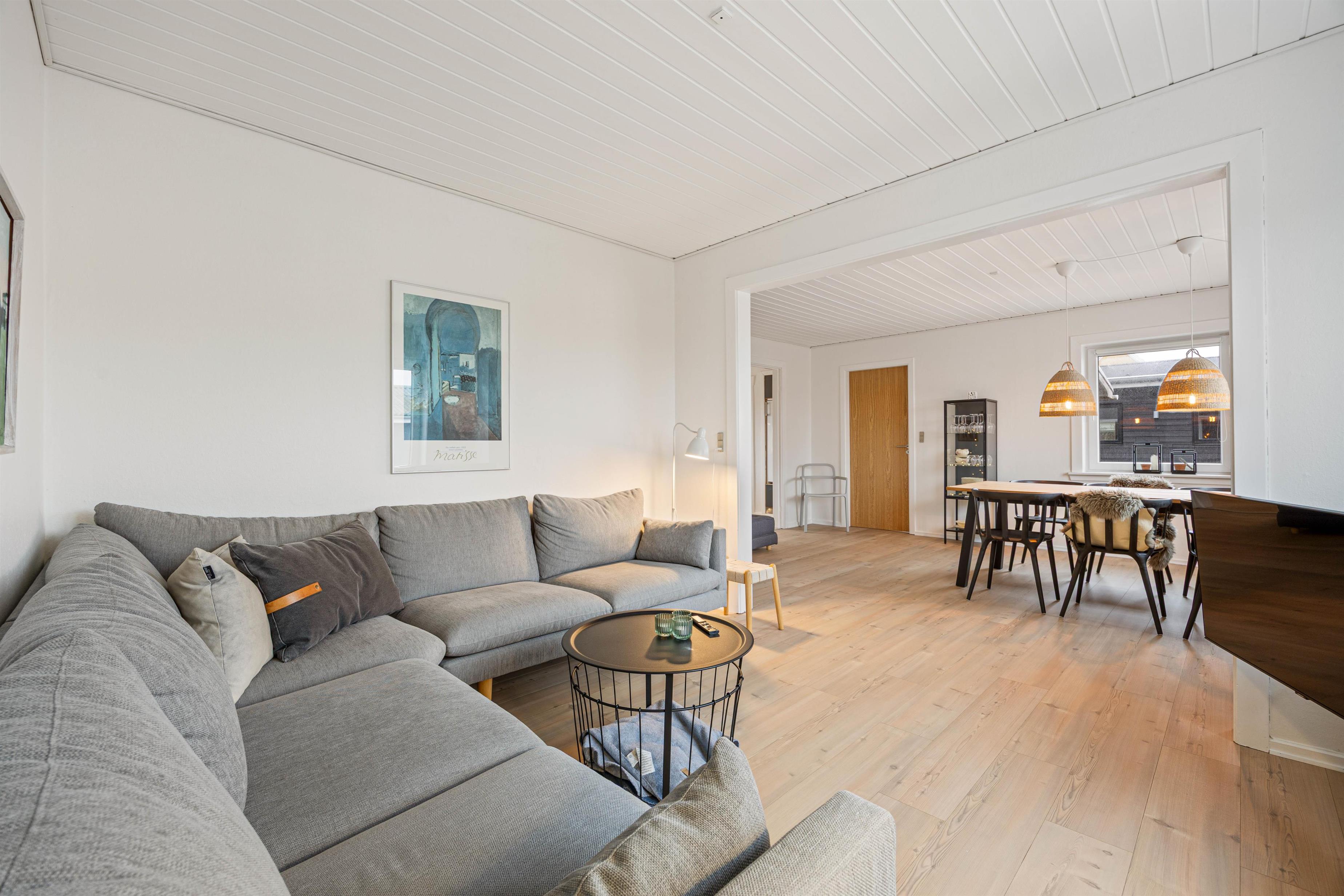 Stuen og spisestuen ligger i åben forbindelse, så man har mulighed for at være sammen, hvad enten man ser TV, eller om man spiller spil ved bordet. I stuen kan I slå jer ned i sofaen og slappe helt af – her kan I tænde for fladskærms-TV’et, hvor I vil finde danske TV-programmer til rådighed.