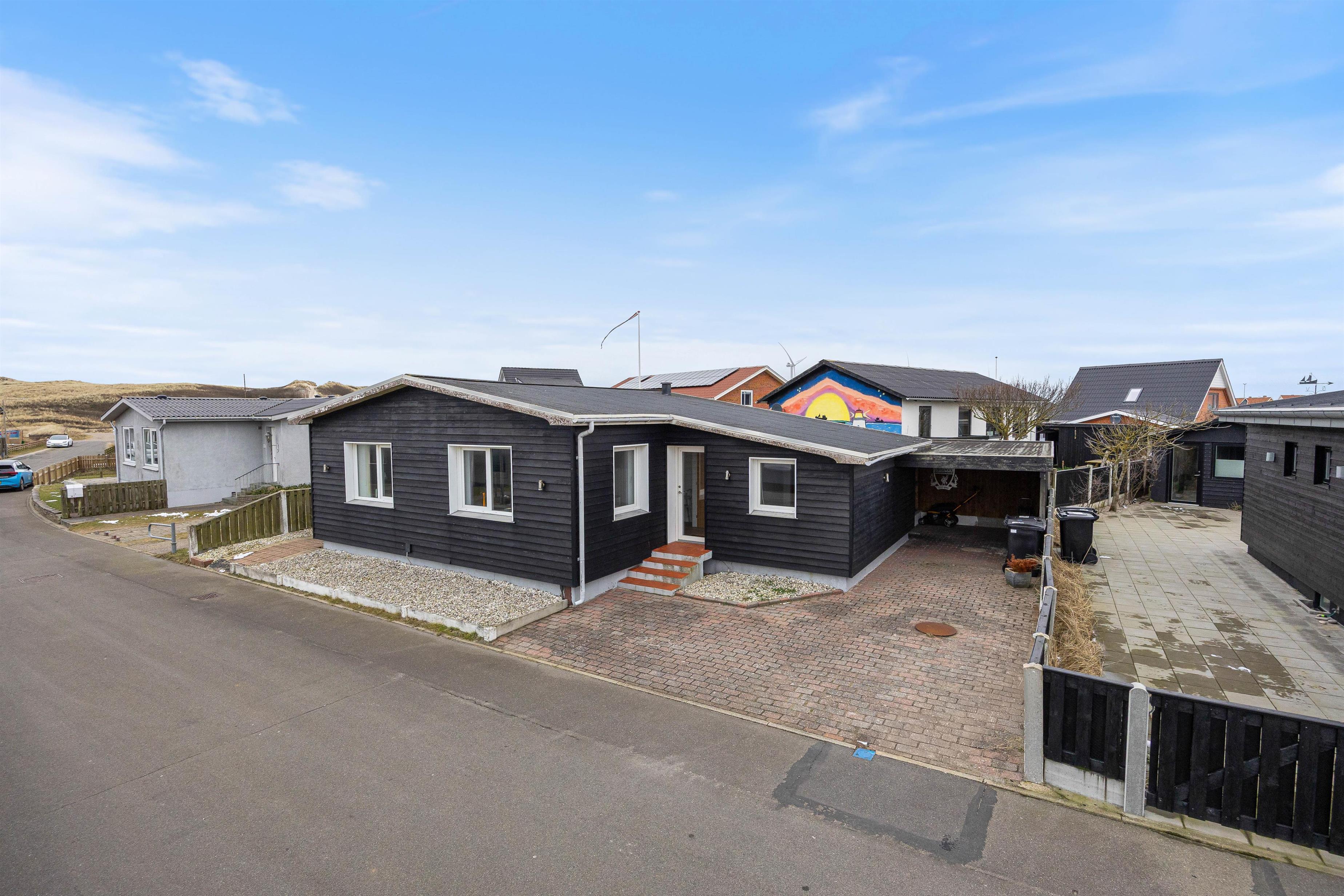 Når I ankommer, gør carporten det nemt at parkere, og skuret kan give ekstra plads til opbevaring af alt fra strandting til cykler. Her finder I desuden en vaskemaskine og tørretumbler.