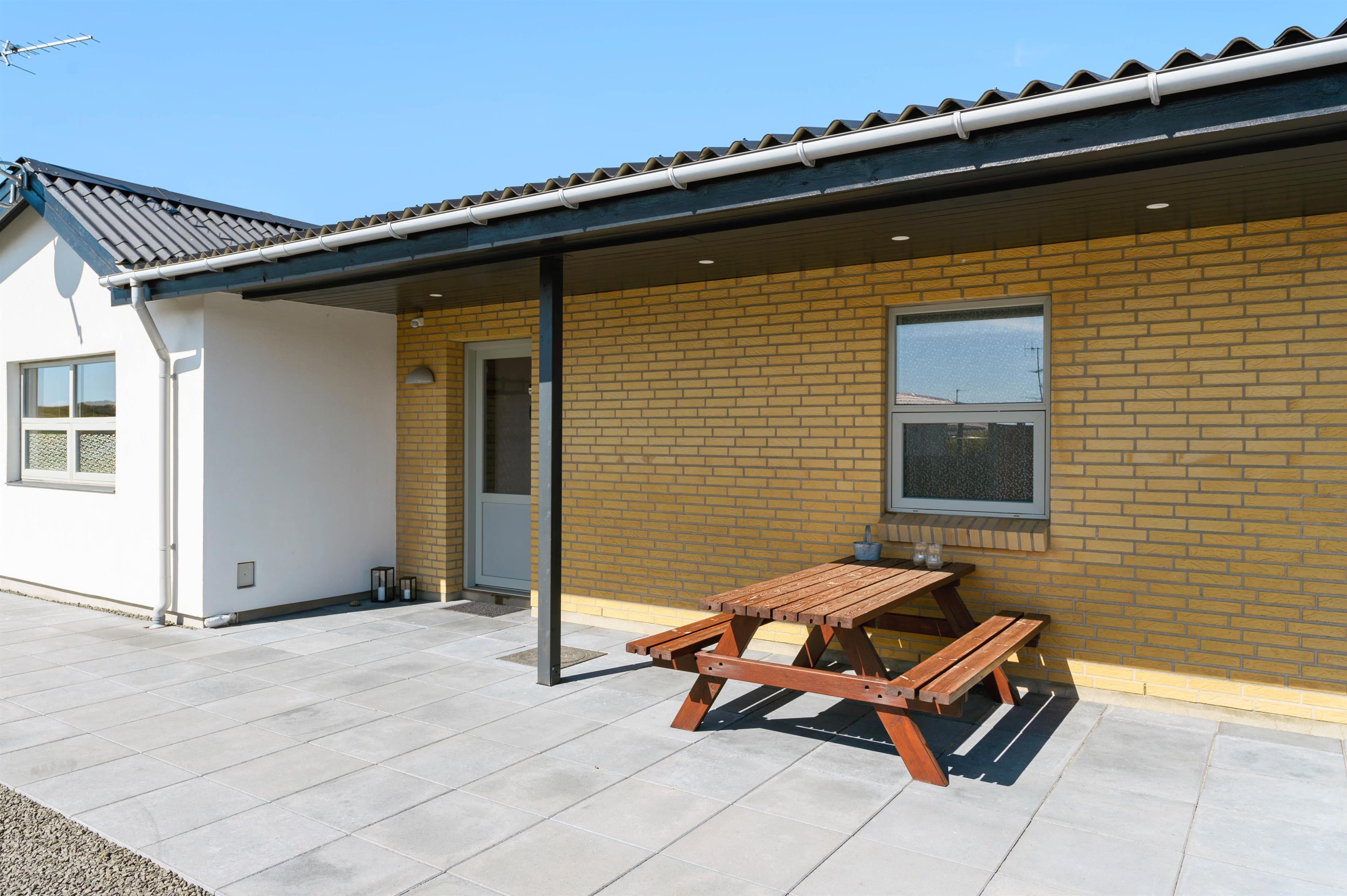 Ved sommerhuset finder I 2 gode terrasser, hvor I kan nyde en varm sommerdag med et glas vin og et godt stykke kød, som er tilberedt på gasgrillen. Den sydvendte terrasse er delvist overdækket, så I kan sidde i ly for en lille regnbyge på en ellers lun sommerdag.