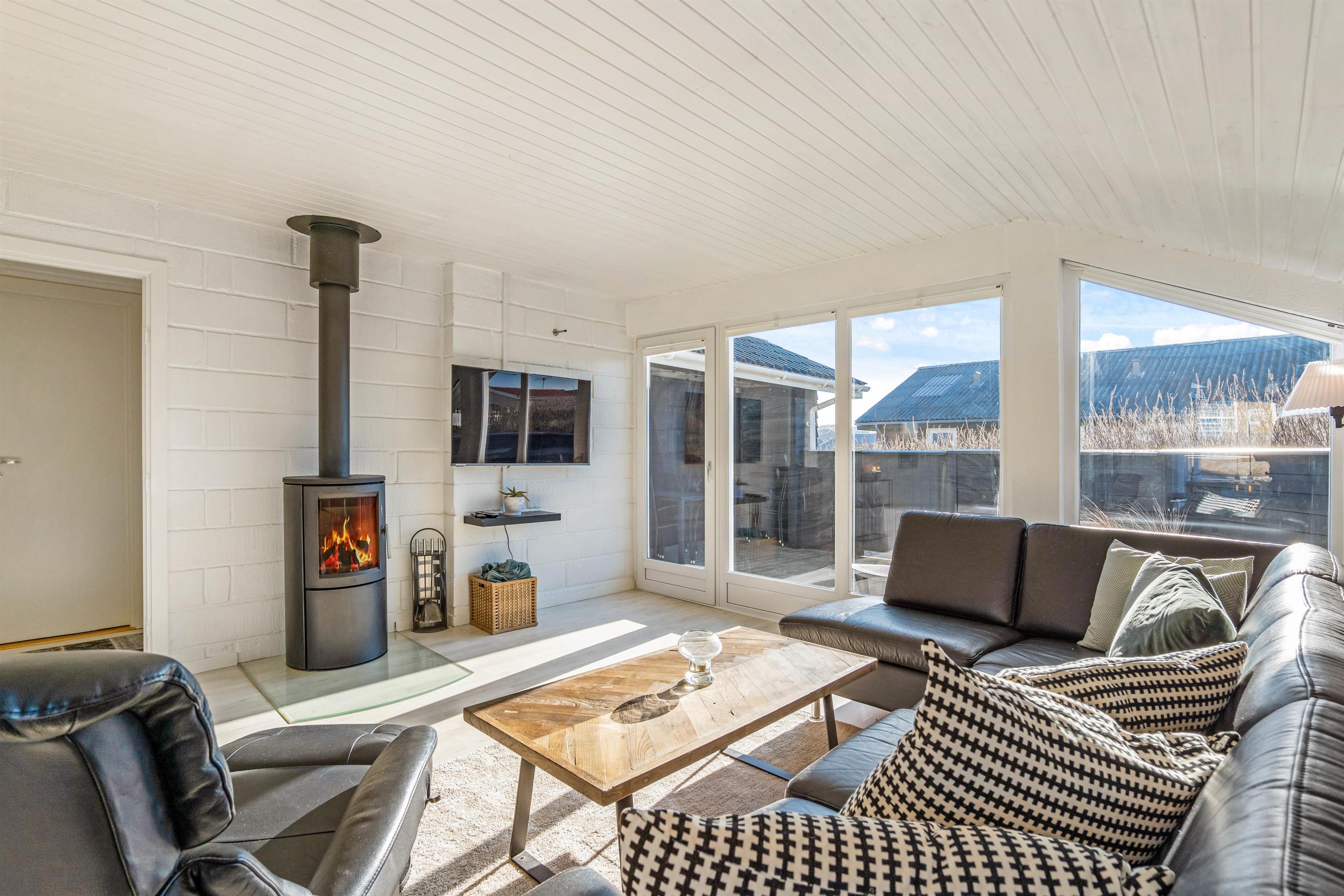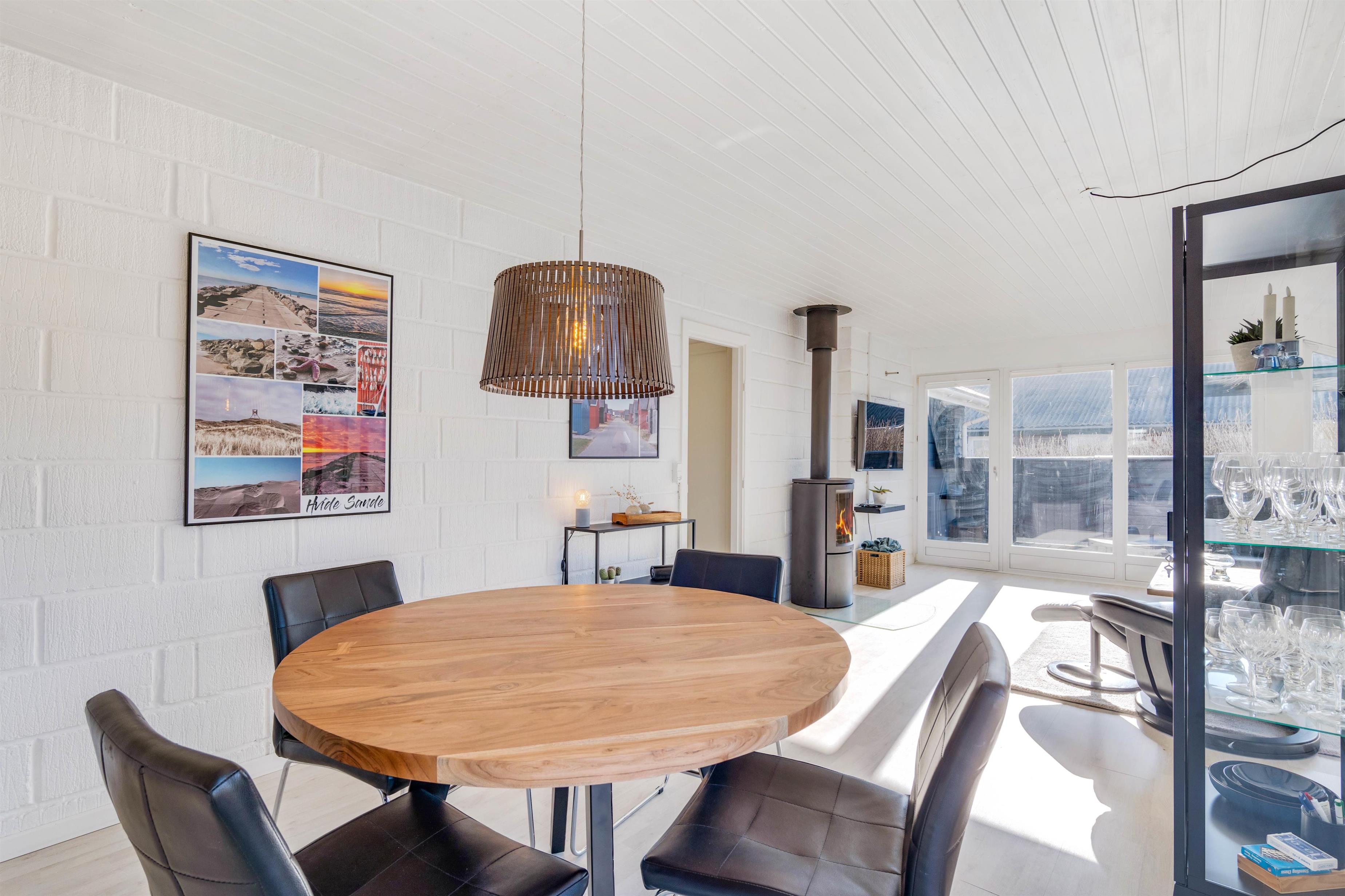 Sommerhuset der blev renoveret i 2010, fremstår i dag lyst og med en moderne nordisk indretning. I husets køkkenalrum møder du et velindrettet rummeligt køkken og stue, men dog er den hyggelige sommerhusstemning stadig bevaret. Så slå benene op foran fjernsynet mens du nyder varmen fra brændeovnen. Eller tilbered et lækkert måltid til familien i det velfungerende køkken.