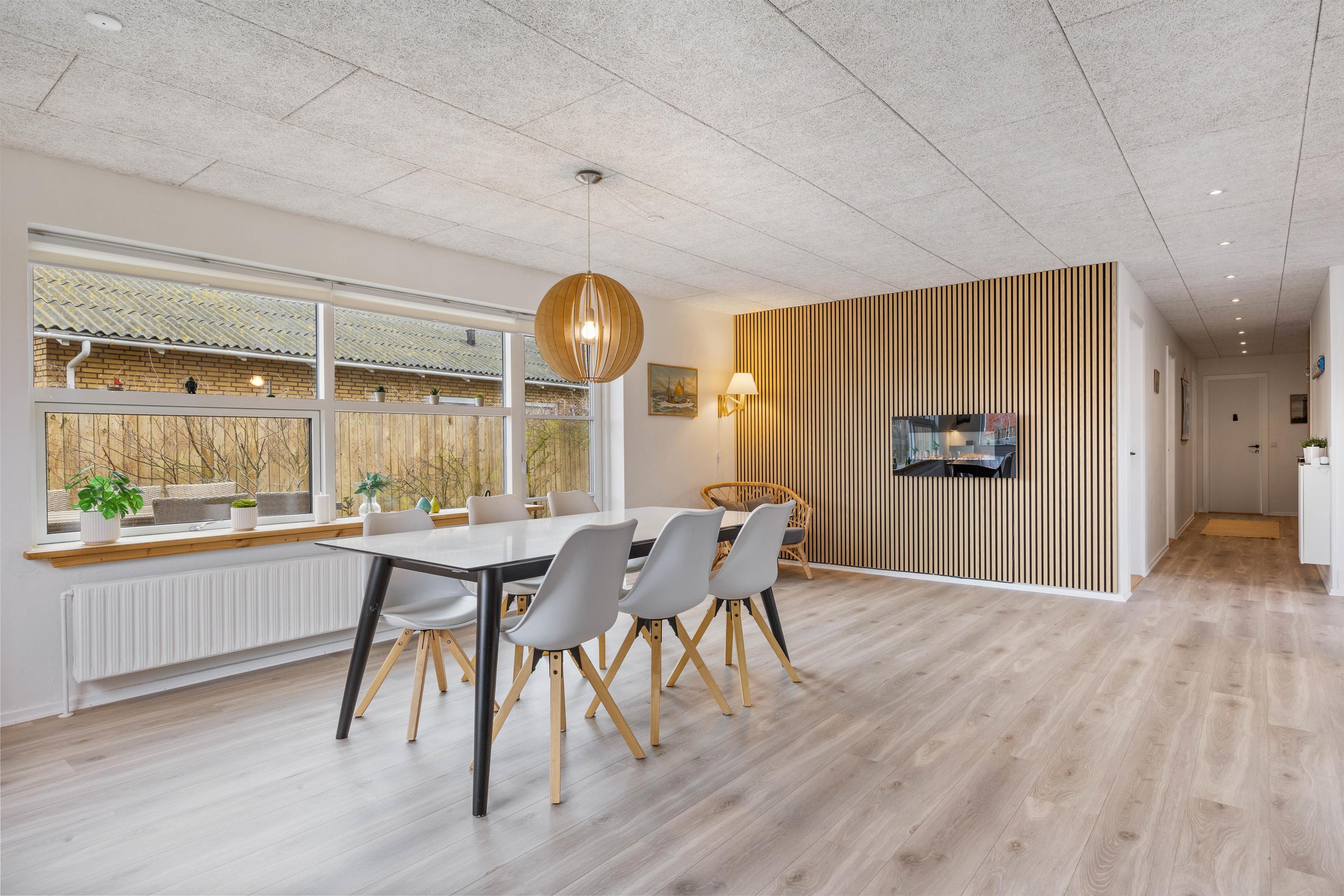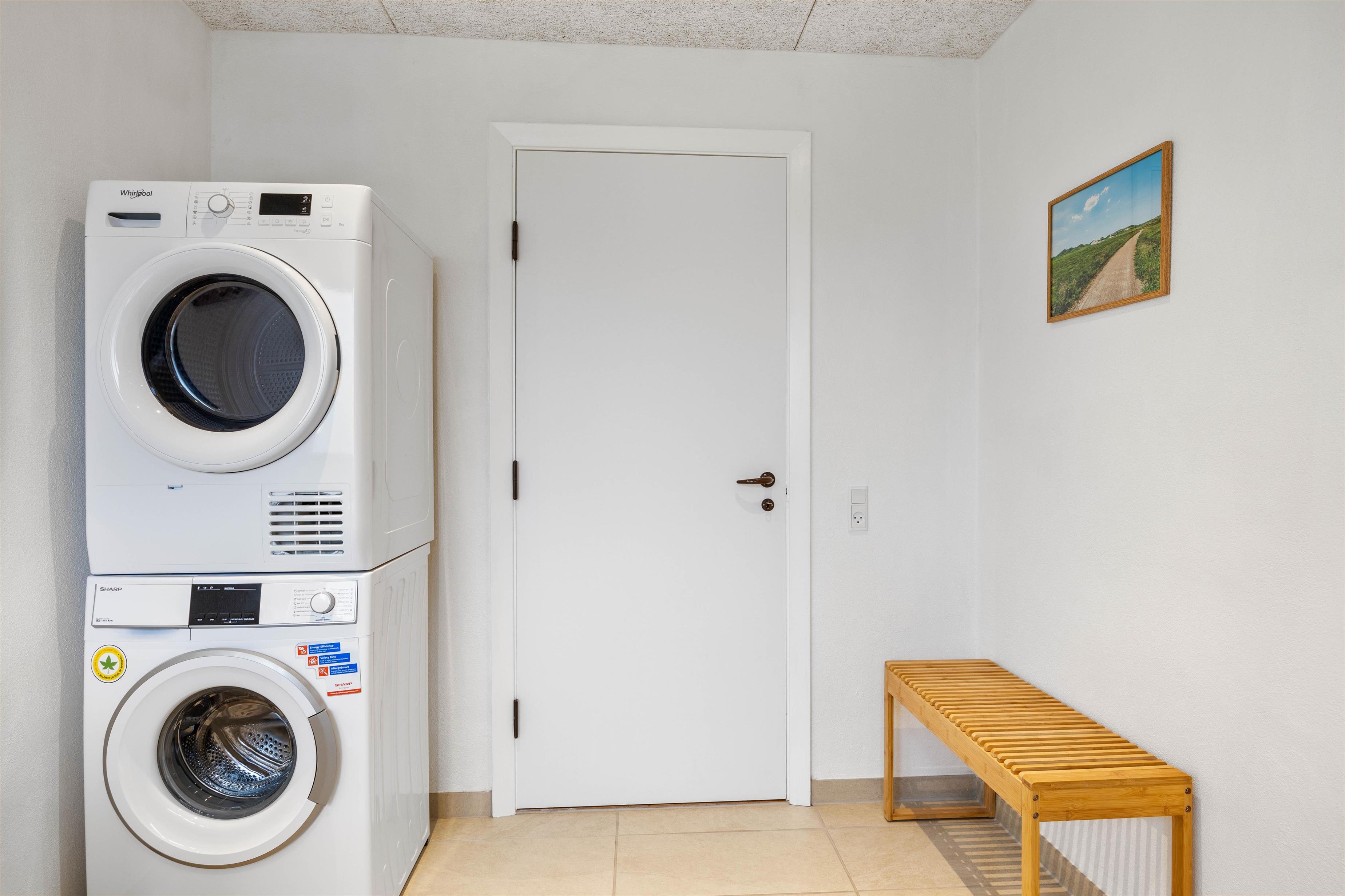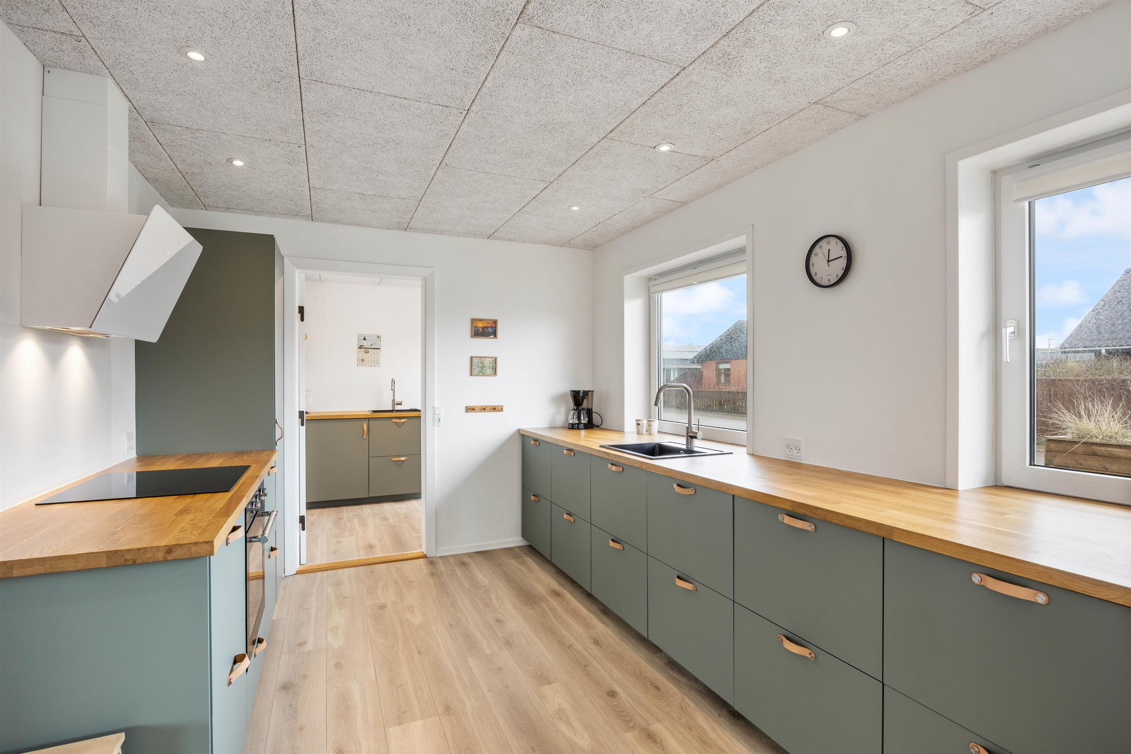 Det første, I træder ind i, når I kommer til sommerhuset, er et godt bryggers med god plads til fodtøj og overtøj. Herfra er der indgang til et stort og åbent køkken, hvor blandt andet opvaskemaskine, mikroovn og induktionskomfur står til jeres rådighed - alt, feriens kok har brug for. Dagens måltider tilberedes derfor uden problemer, hvis I ikke vælger at spise på et af byens lækre spisesteder, der ligger i gåafstand fra huset.