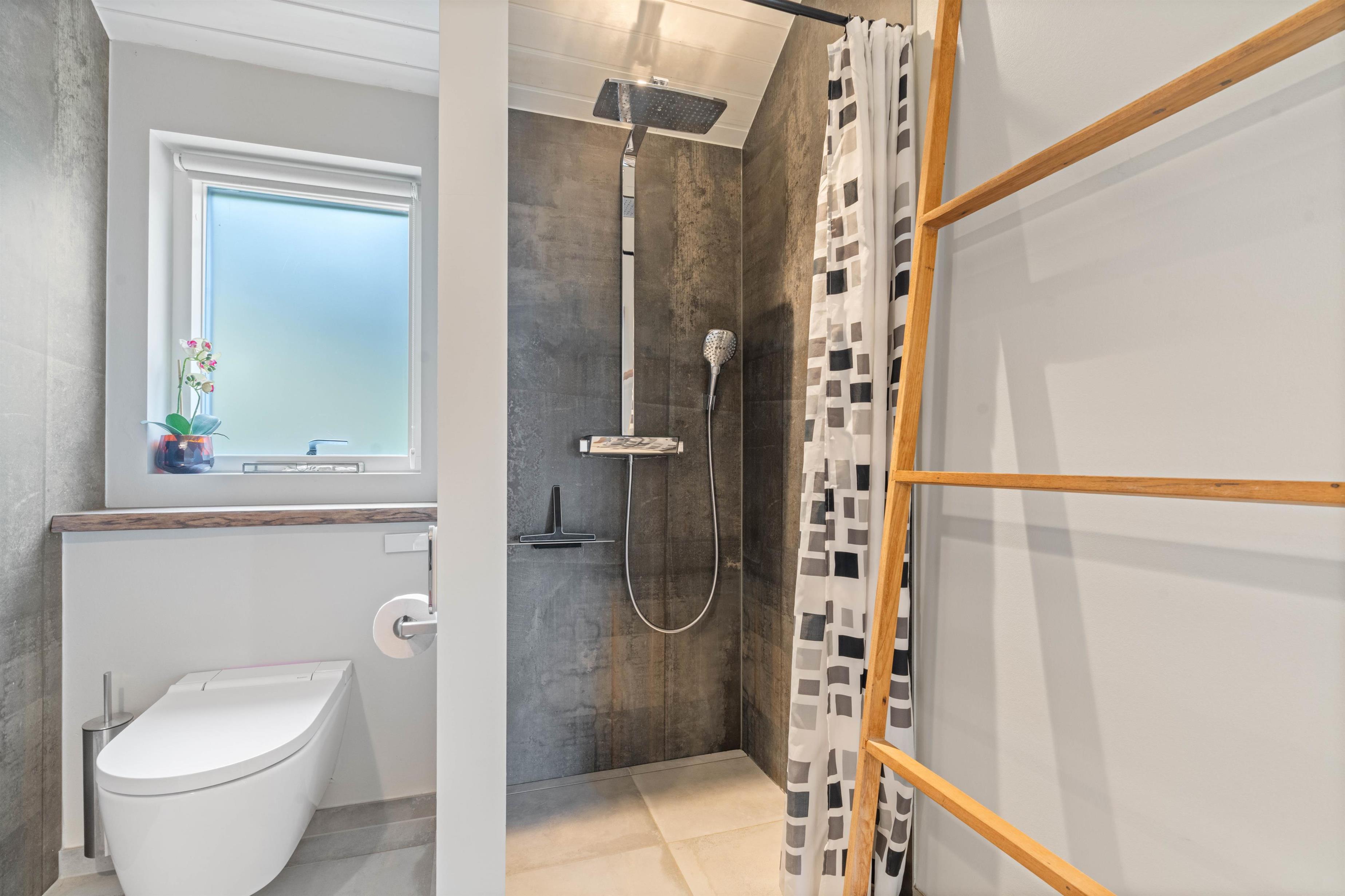 Her er også 2 smagfuldt indrettede badeværelser samt vaskemaskine og tørretumbler