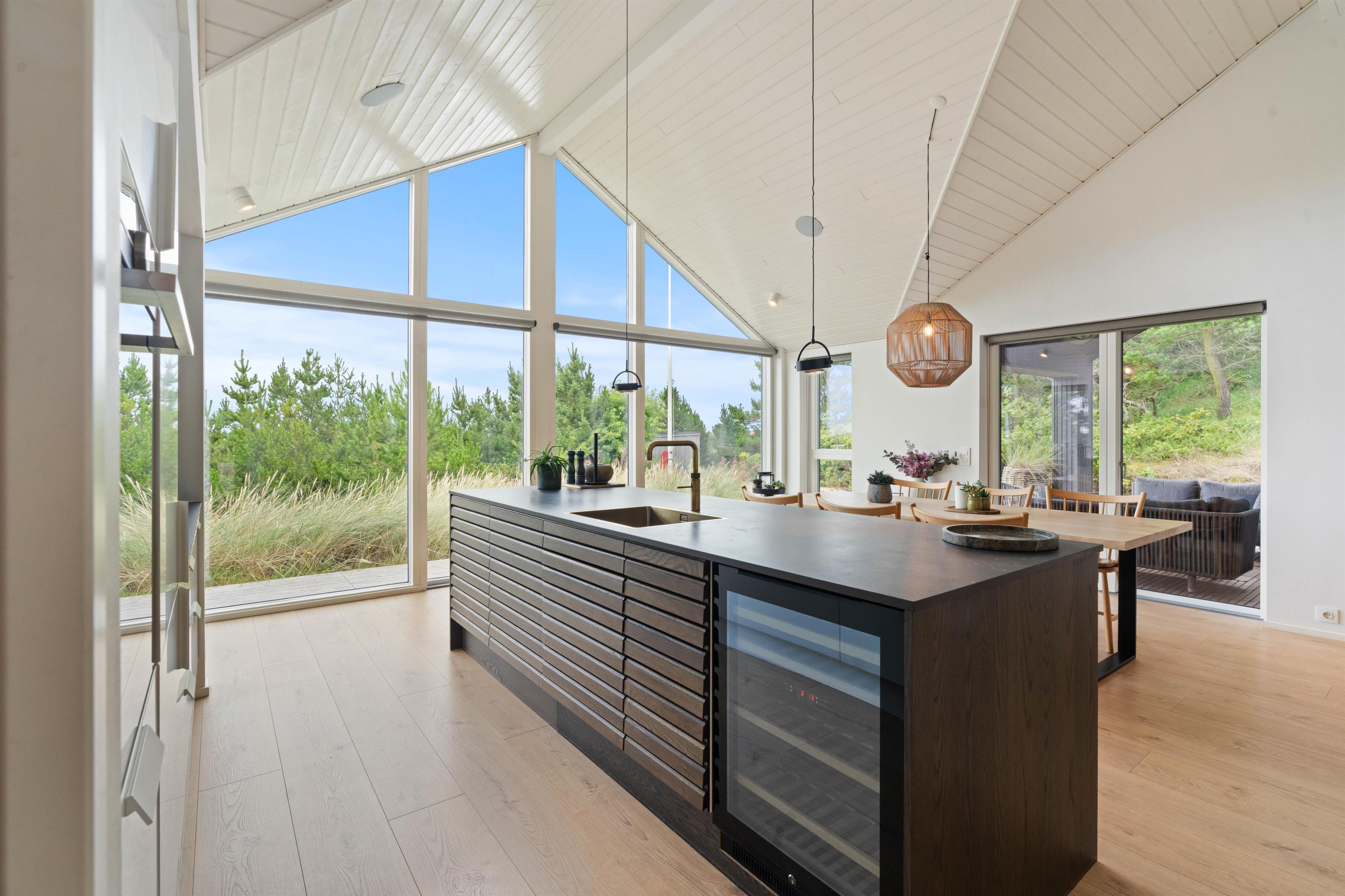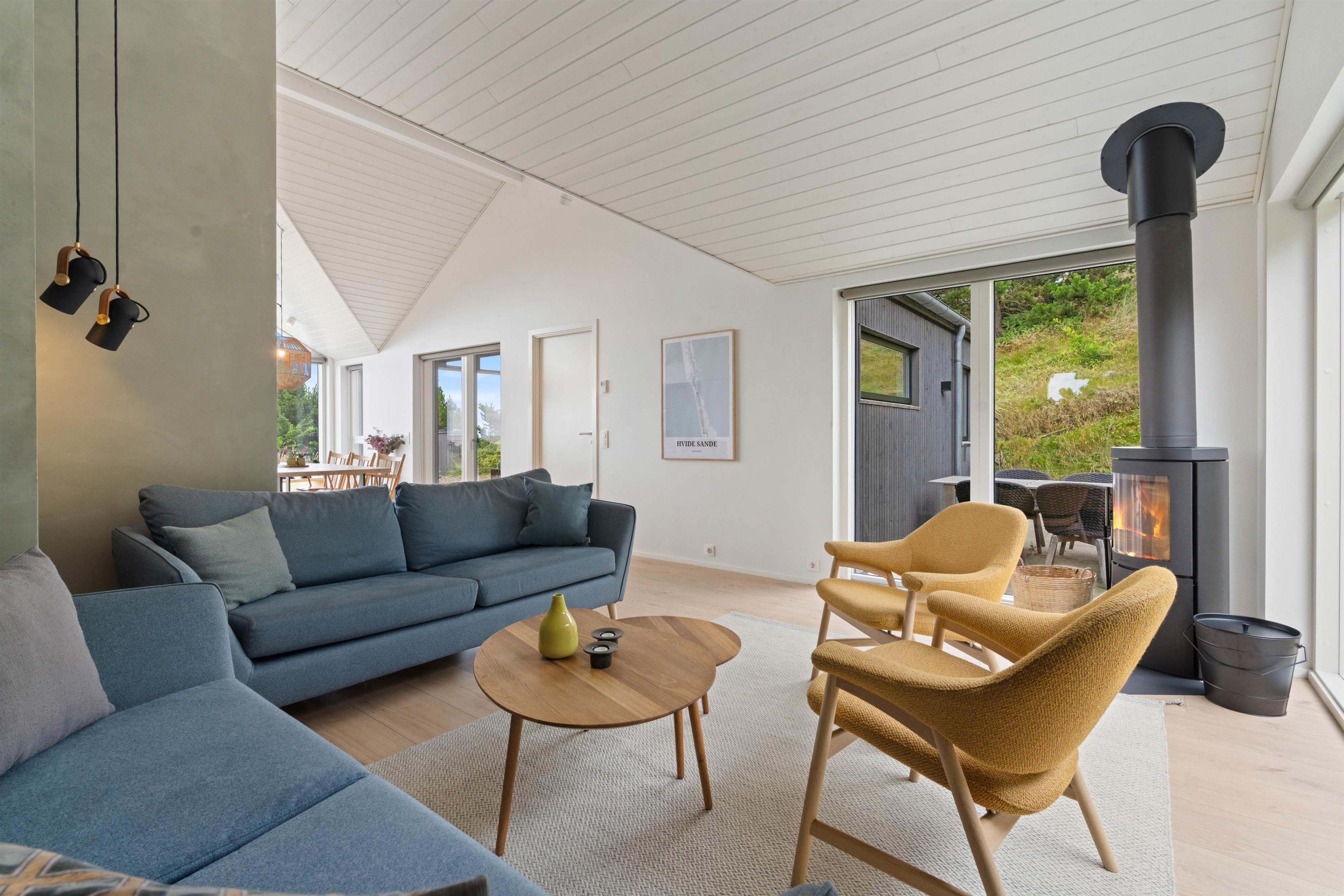 Hvis man leder efter et feriehus udover det sædvanlige og sætter pris på en ferie i smagfulde omgivelser, er dette sommerhus et rigtig godt valg. Huset er opført i 2019 og virkeligt smukt indrettet i gode kvalitetsmaterialer, både inde og ude.