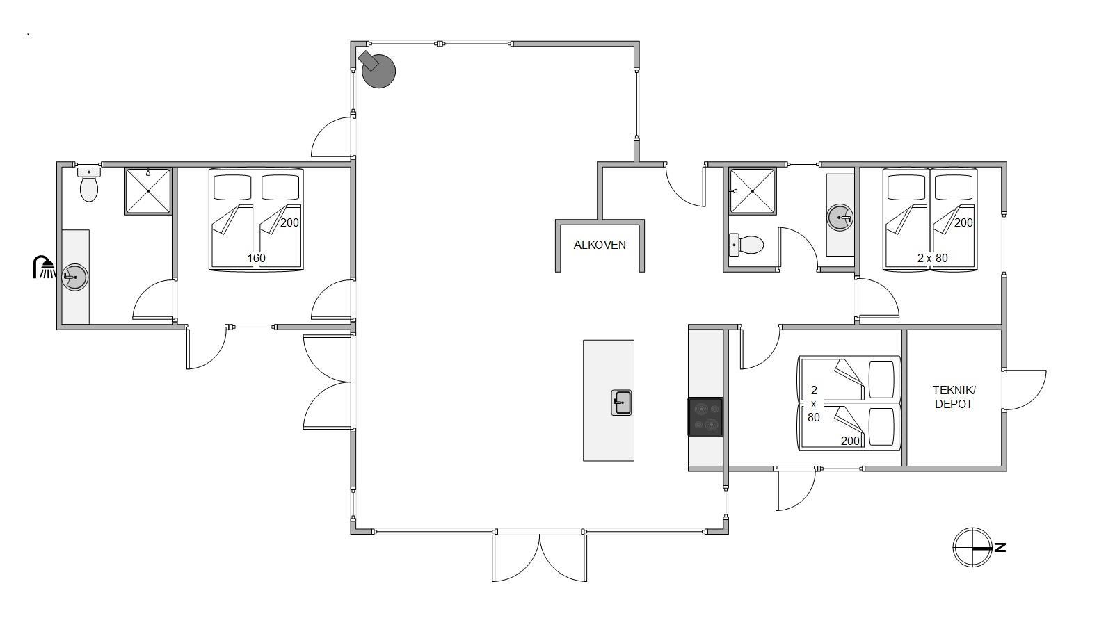 Udebruseren kan benyttes fra april til november, hvor I kan skylle sand og salt af eller tage et dejligt koldt skyl på en varm sommerdag.