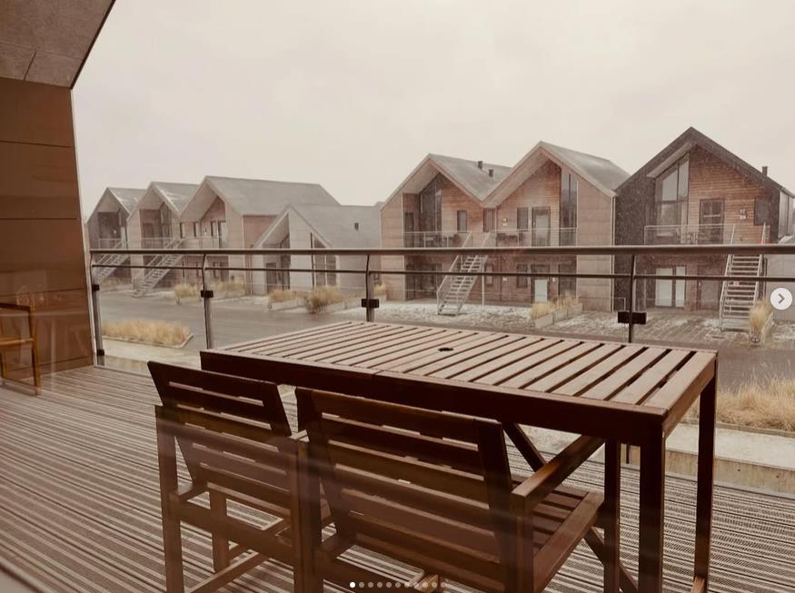 Udendørs kan I nyde livet på ferielejlighedens dejlige altan, hvor I kan sidde og nyde udsigten til en af kanalerne i Langsand. Havemøblerne indbyder til lange, rolige stunder, hvor I kan læne jer tilbage og nyde solen med en kop kaffe i hånden, mens den elektriske grill står klar til at tilberede lækre feriemåltider.