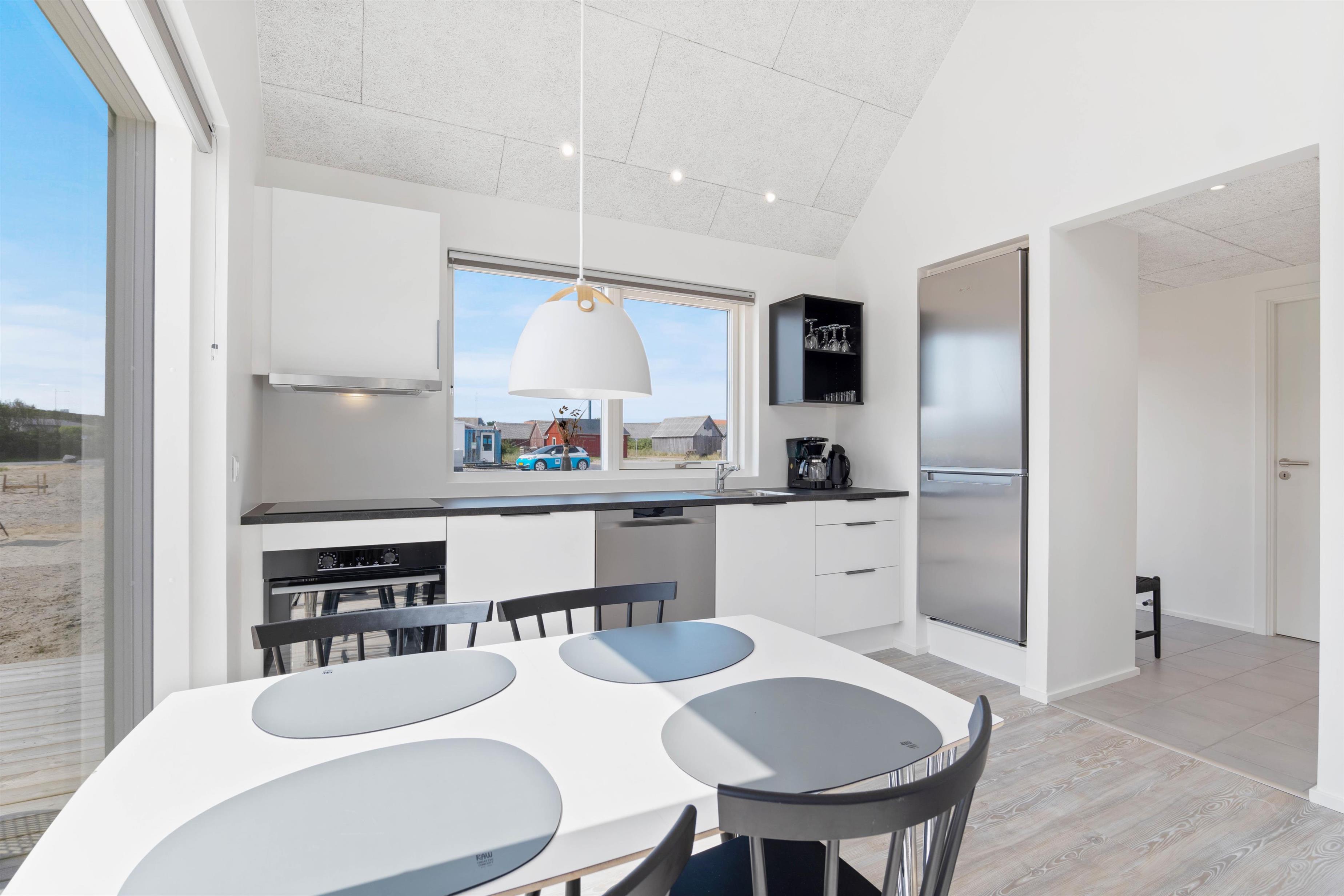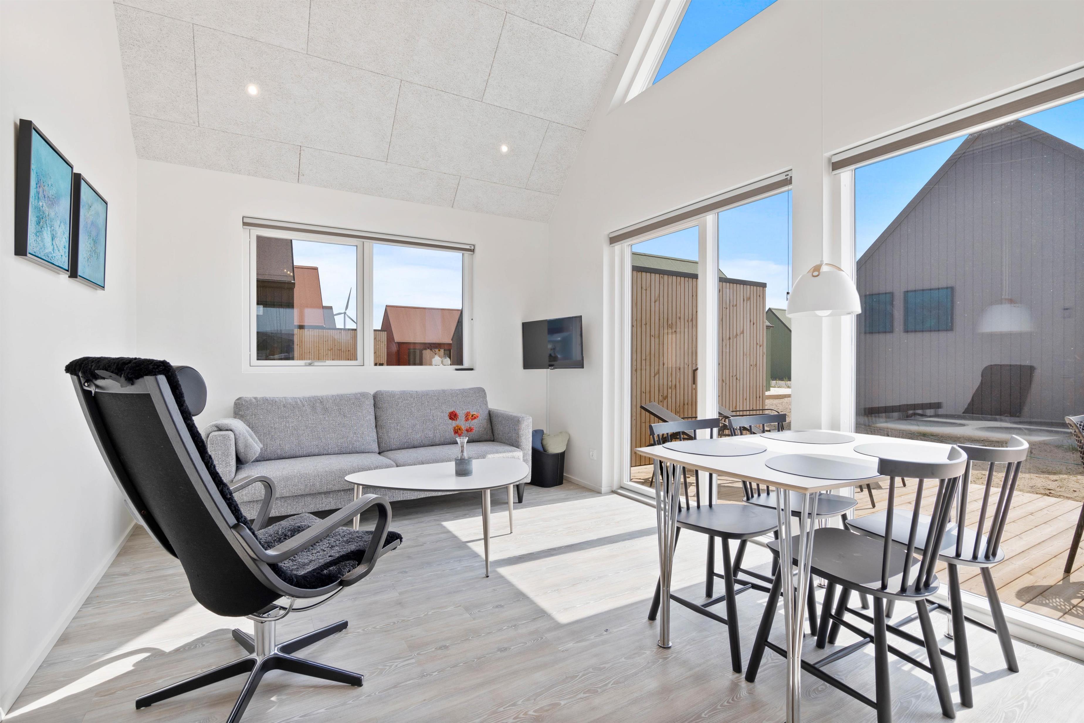 Det moderne feriehus er bygget i 2022 og har en lys og indbydende indretning. Sommerhusets stue ligger i åben forbindelse med spiseplads og det fine køkken. Efter en lang feriedag kan I slappe af på sofaen, og med danske tv-kanaler i fjernsynet vil I ikke komme til at kede jer. På en regnvejrsdag kan I også nyde en god kop kaffe og spille et spil kort.