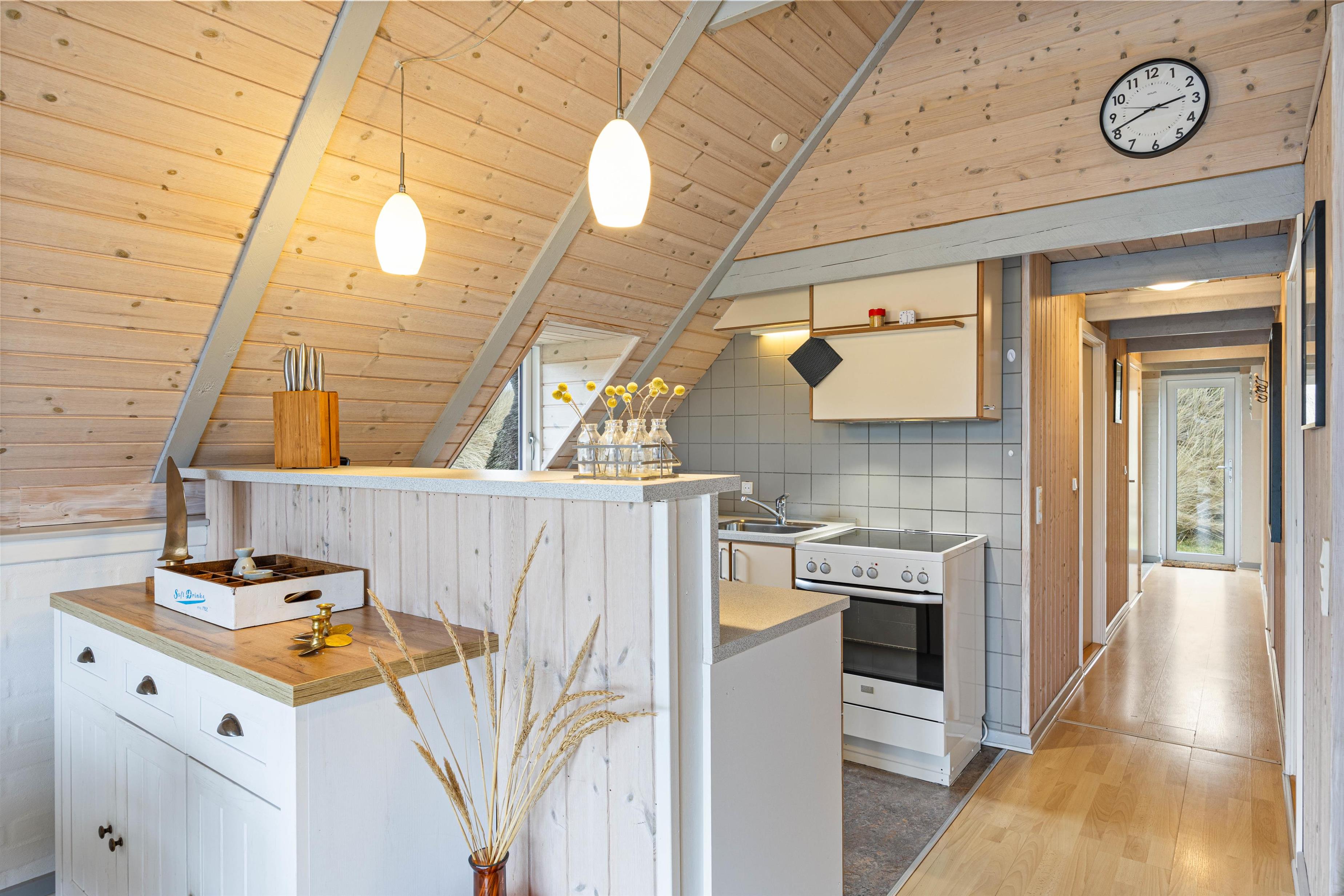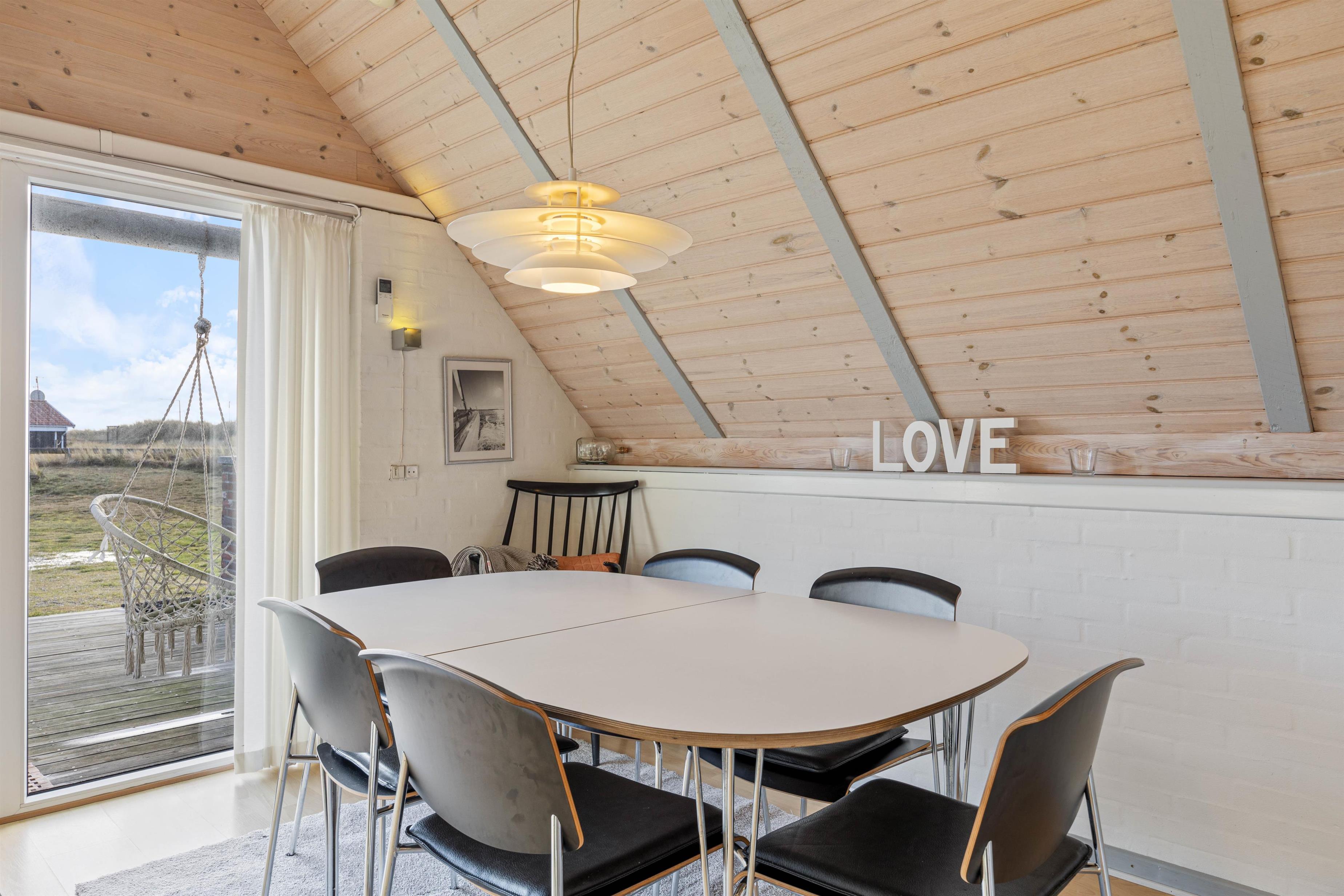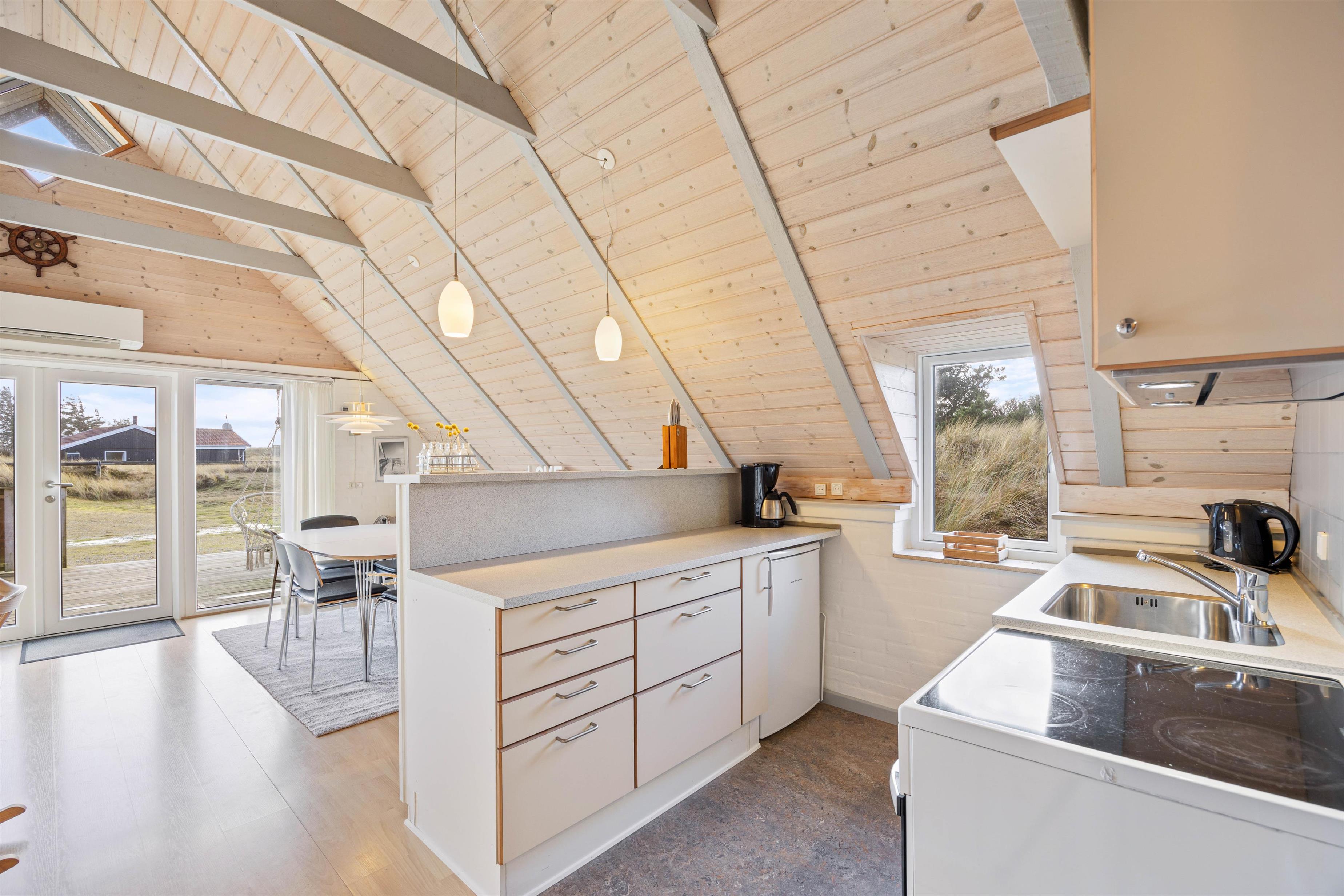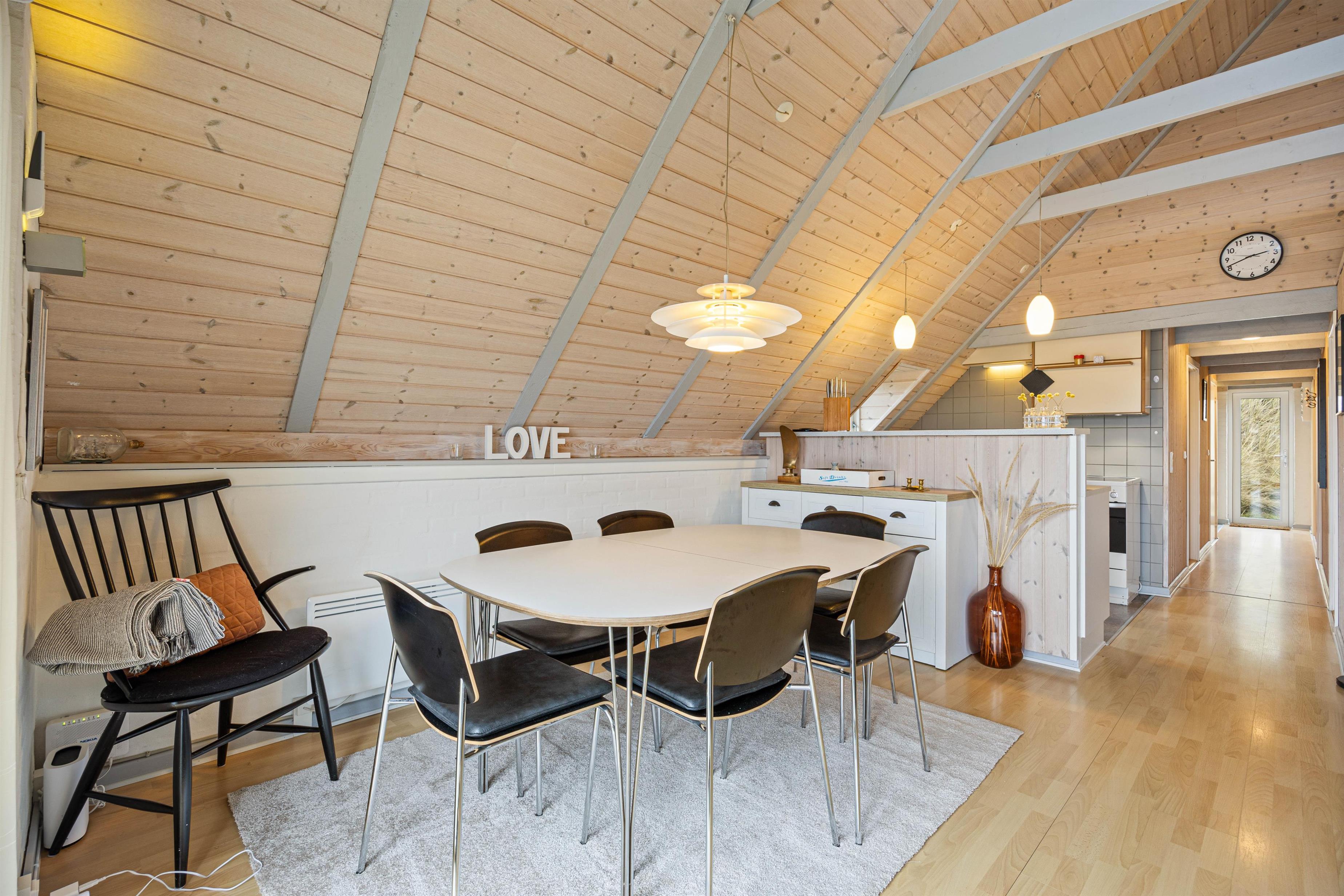 Samlingspunktet bliver det hyggelige og rummelige alrum, med loft til kip. Her er køkkenet, stuen og spisestuen er i åben forbindelse, så der er mulighed for at nyde tiden med hinanden, selvom der både ses tv, spilles brætspil og laves mad. Rummet kan I med fordel varme op med den energibesparende varmepumpe eller tænde op i brændeovnen, der især er skøn på de køligere dage. Fra stuen kan I også slå dørene op ud til den solskinsrige terrasse.