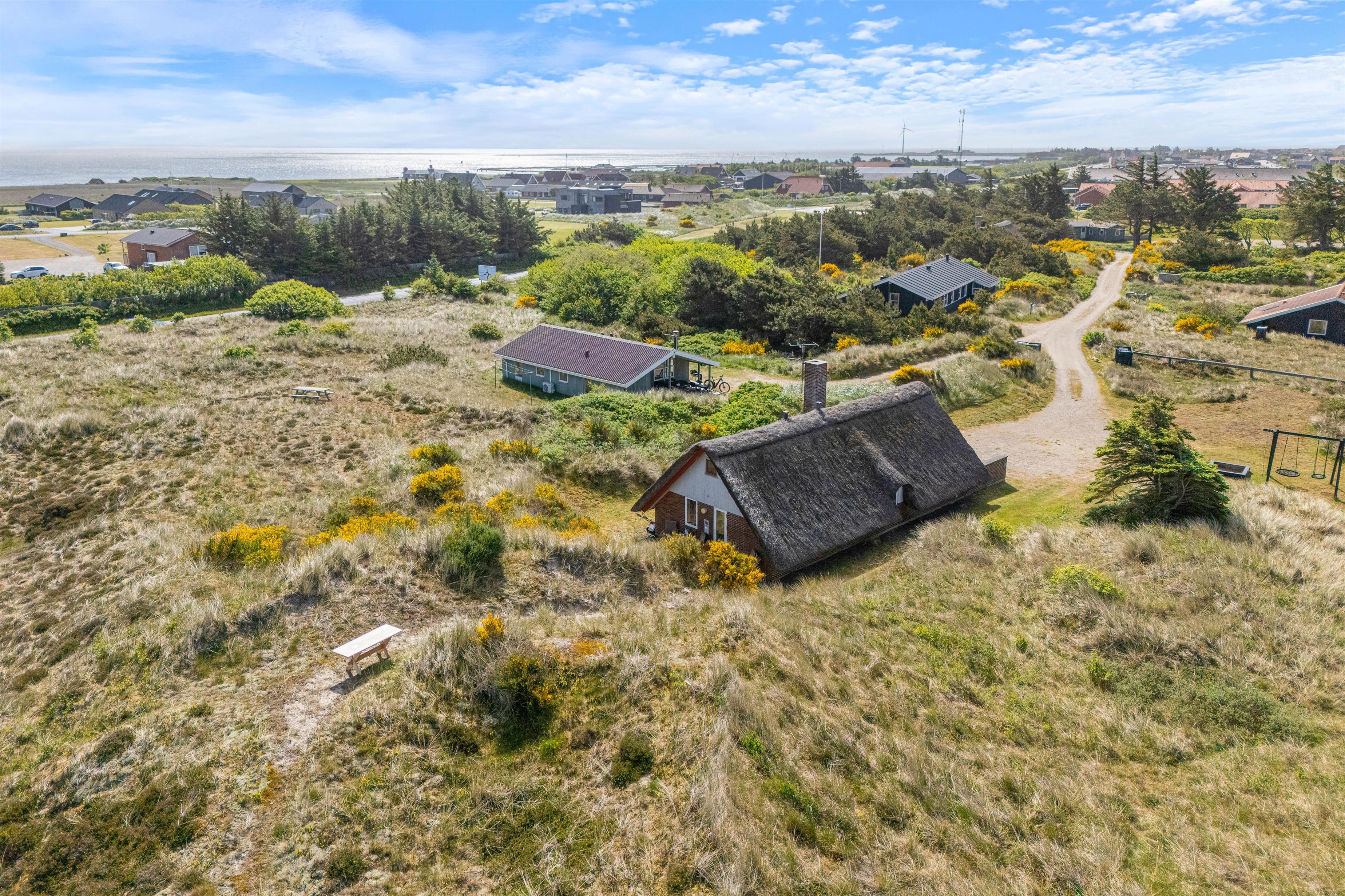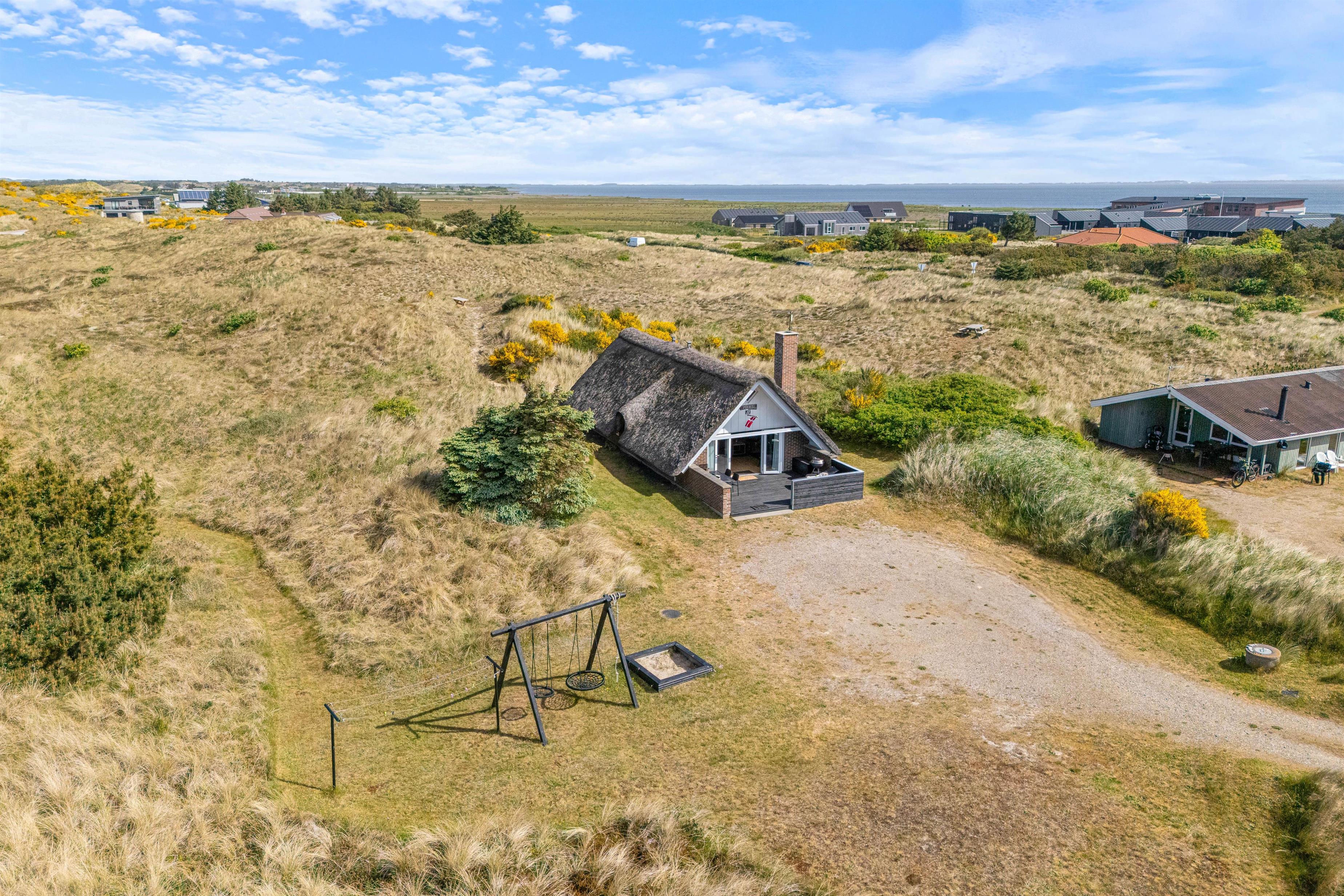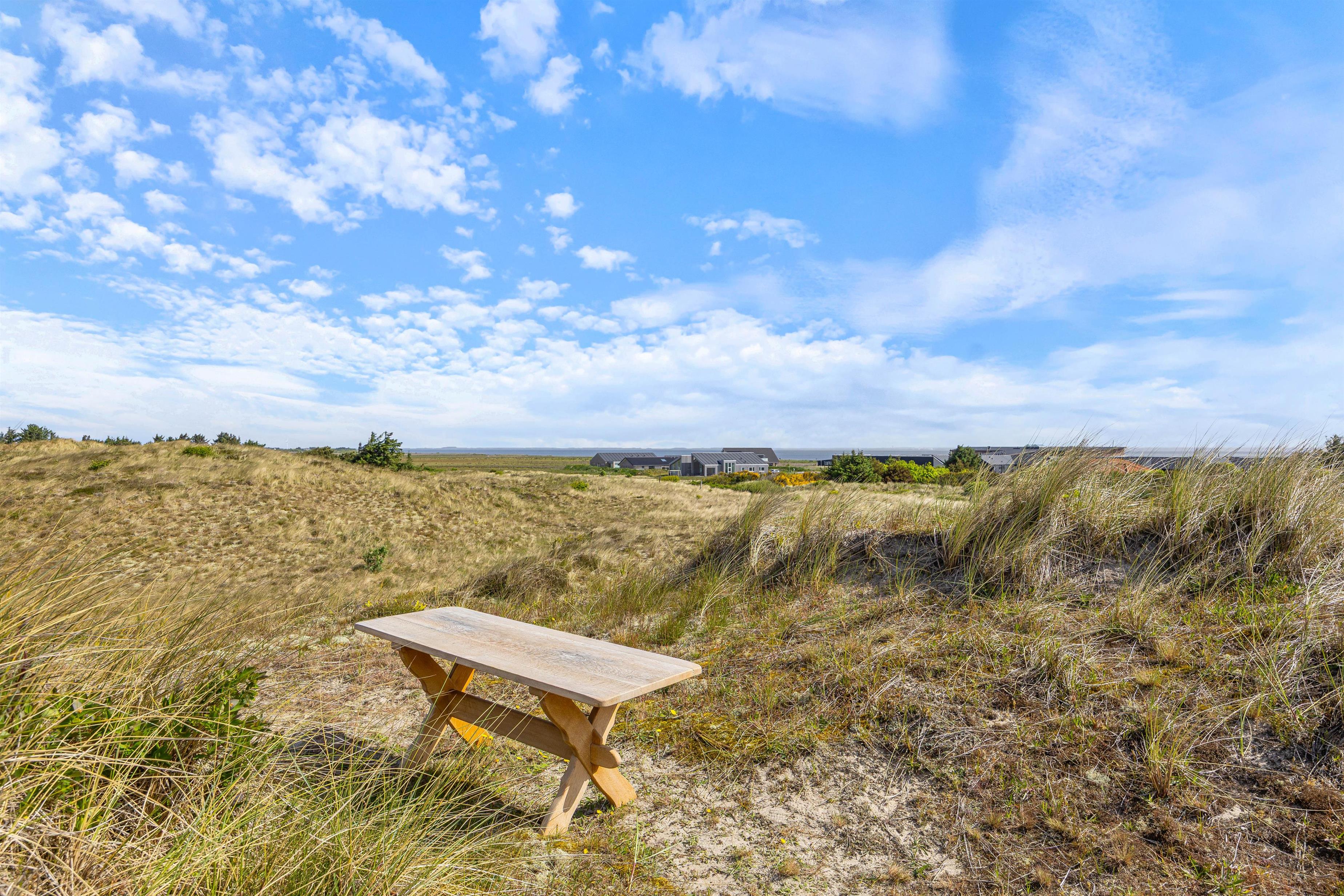 Feriehuset ligger i den nordlige del af Hvide Sande i et uforstyrret område, hvor marehalmen flagrer i vinden. På toppen af klitten ved feriehuset finder I en bænk, hvor I kan nyde den smukke udsigt udover fjorden og klitlandskabet.
