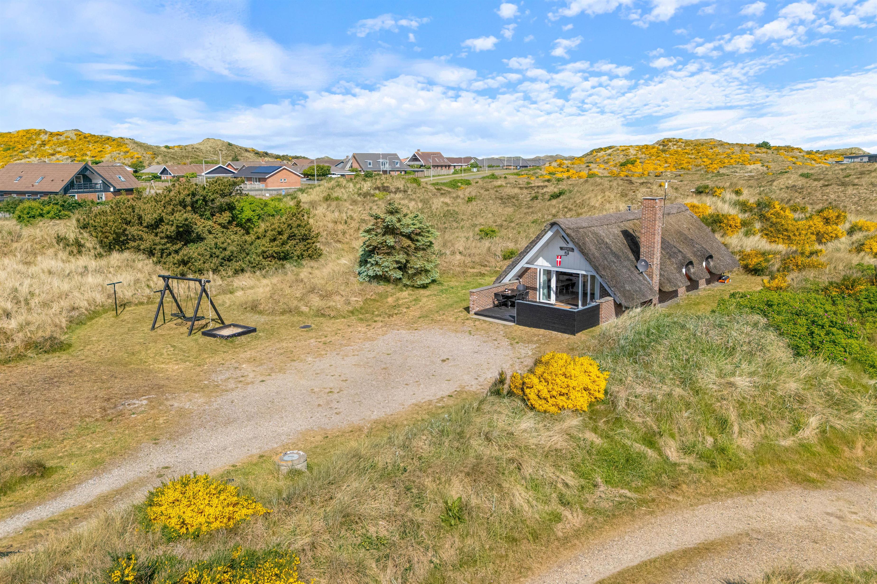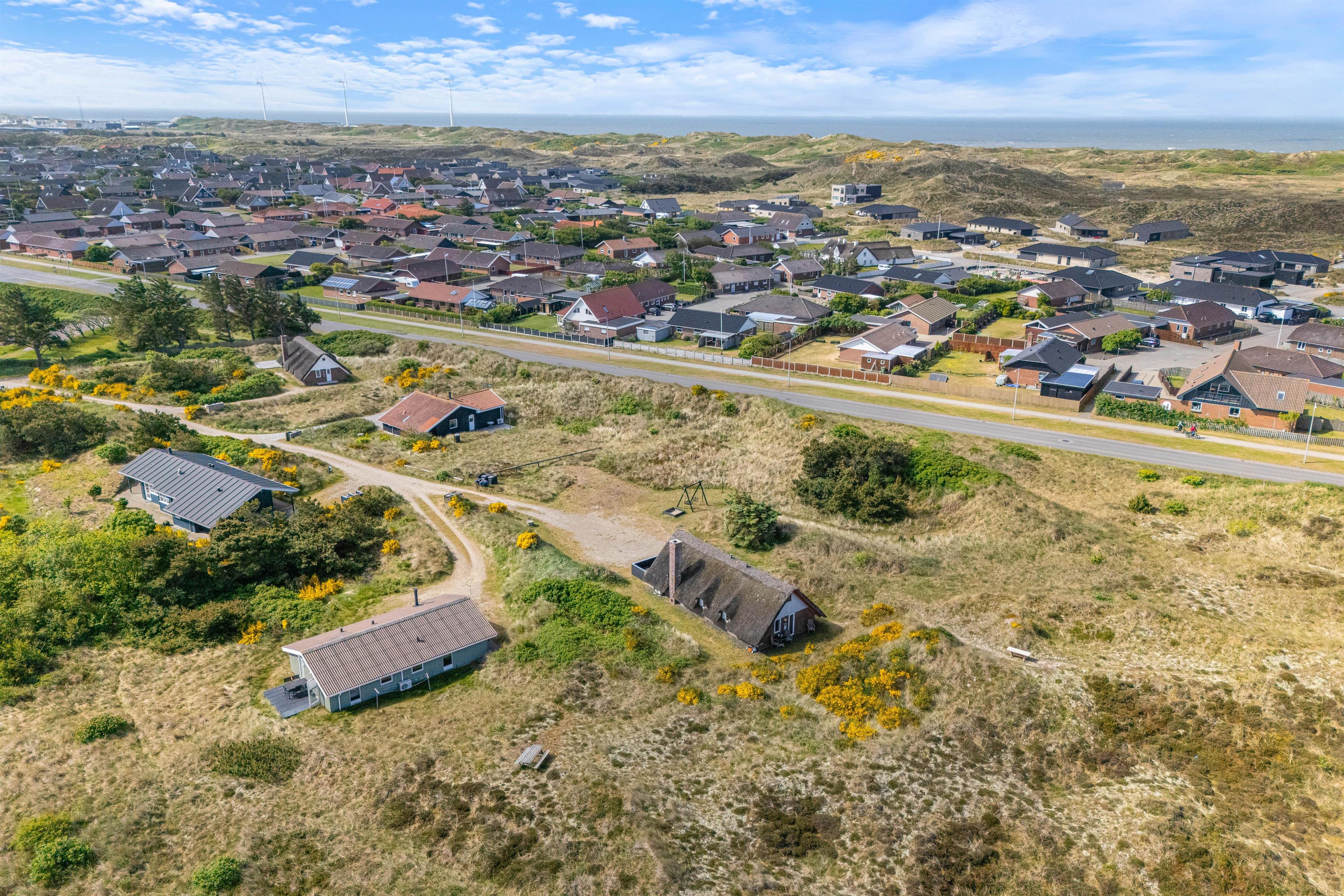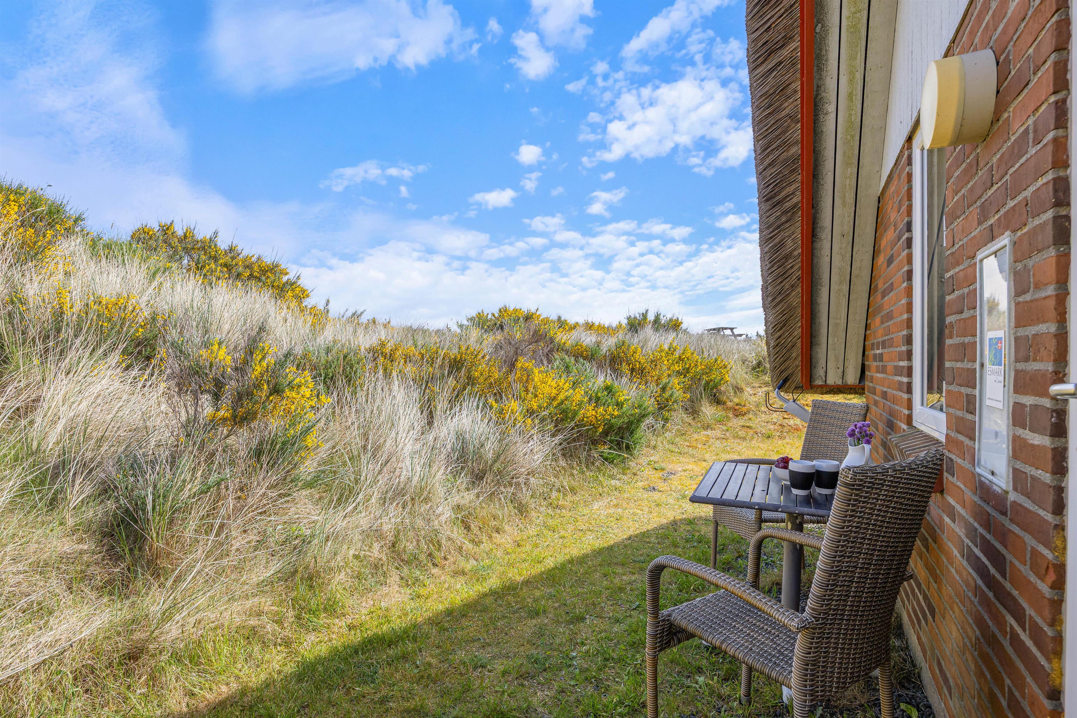 Feriehuset ligger i den nordlige del af Hvide Sande i et uforstyrret område, hvor marehalmen flagrer i vinden. På toppen af klitten ved feriehuset finder I en bænk, hvor I kan nyde den smukke udsigt udover fjorden og klitlandskabet.