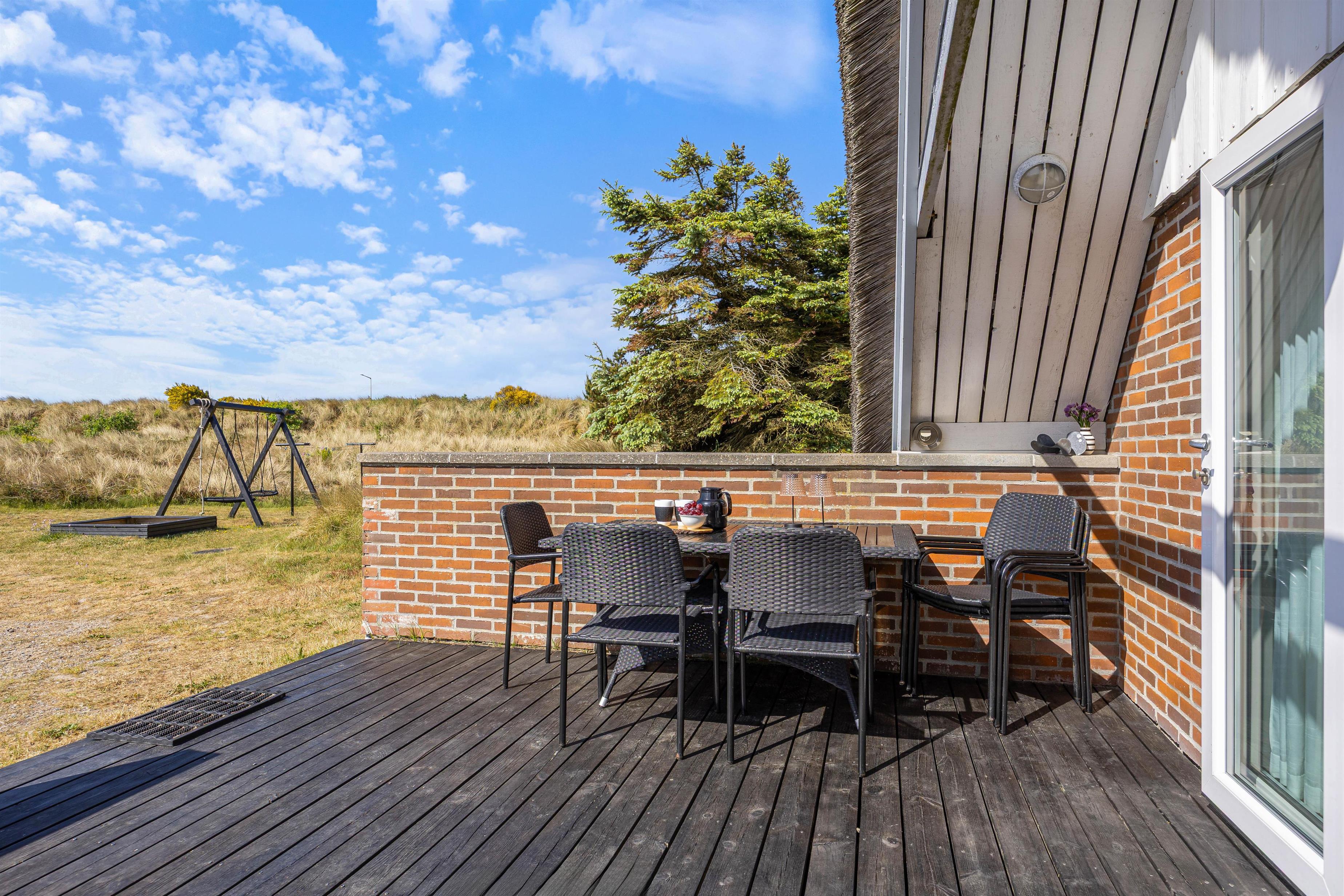 Hverken Vesterhavet eller Ringkøbing Fjord ligger længere end en gåtur fra dette feriehus på Holmsland Klitvej 11. Ringkøbing Fjord er perfekt for surfere, om man er til windsurfing, kabelbane eller hyggelige gåture med hunden - der er kun 400 meter til det nærmeste surfcenter. Fra Syd- og Nordmolen i Hvide Sande finder I de perfekte badestrande.