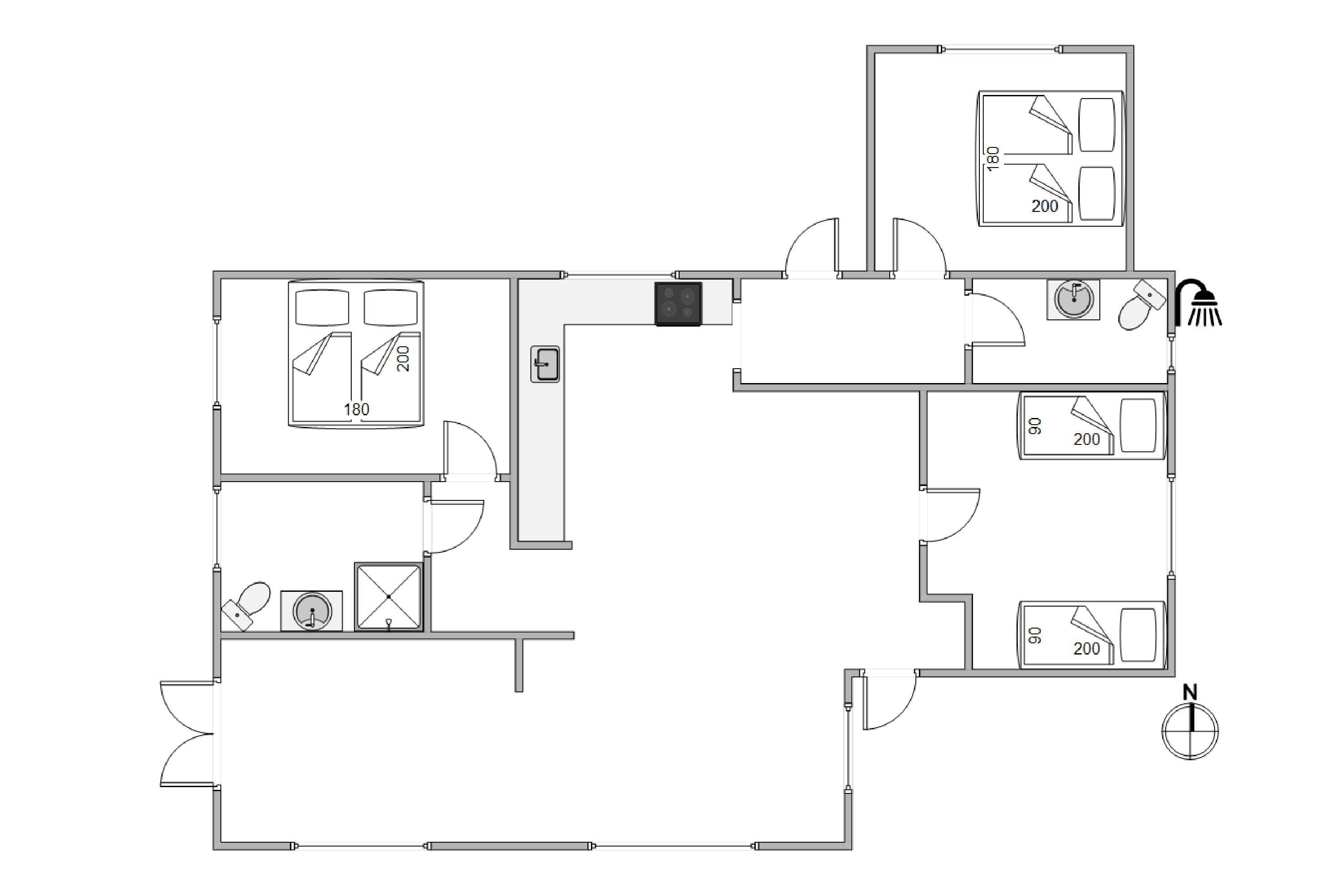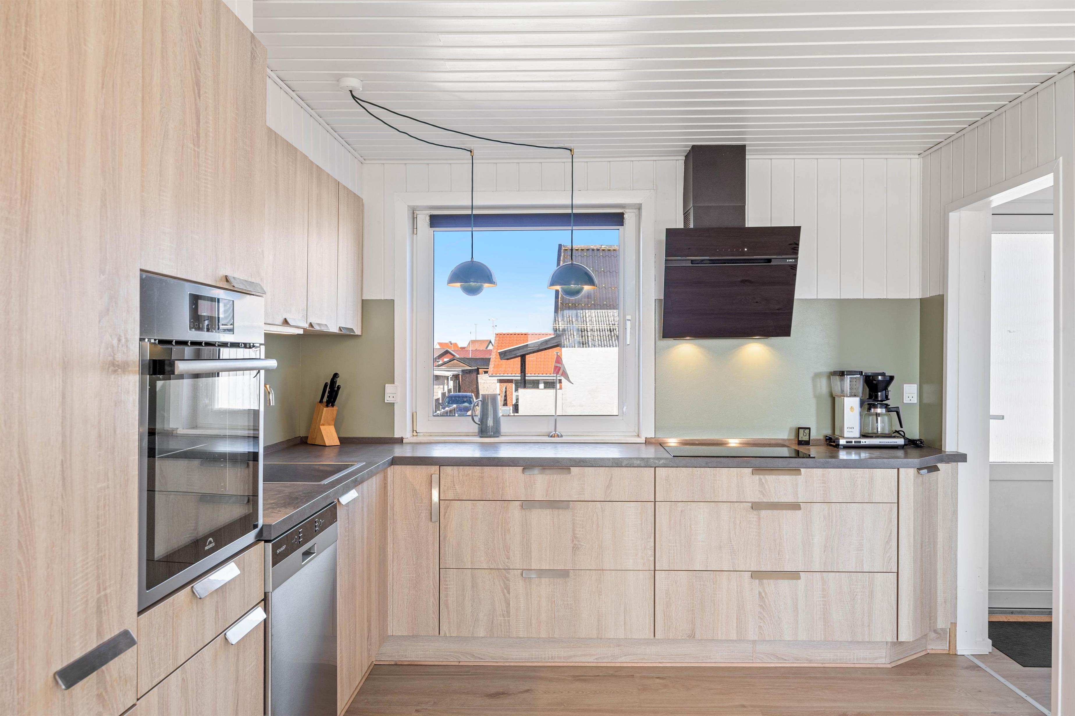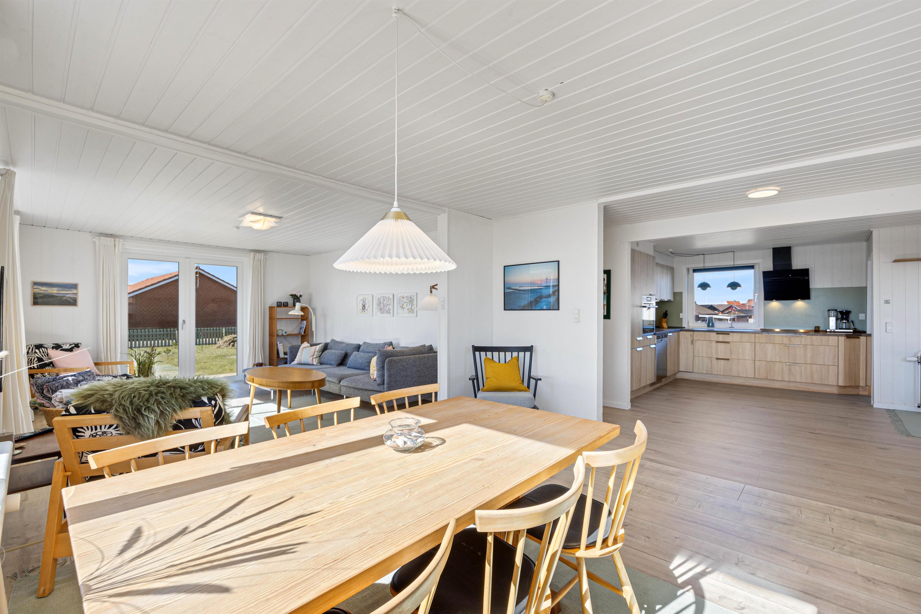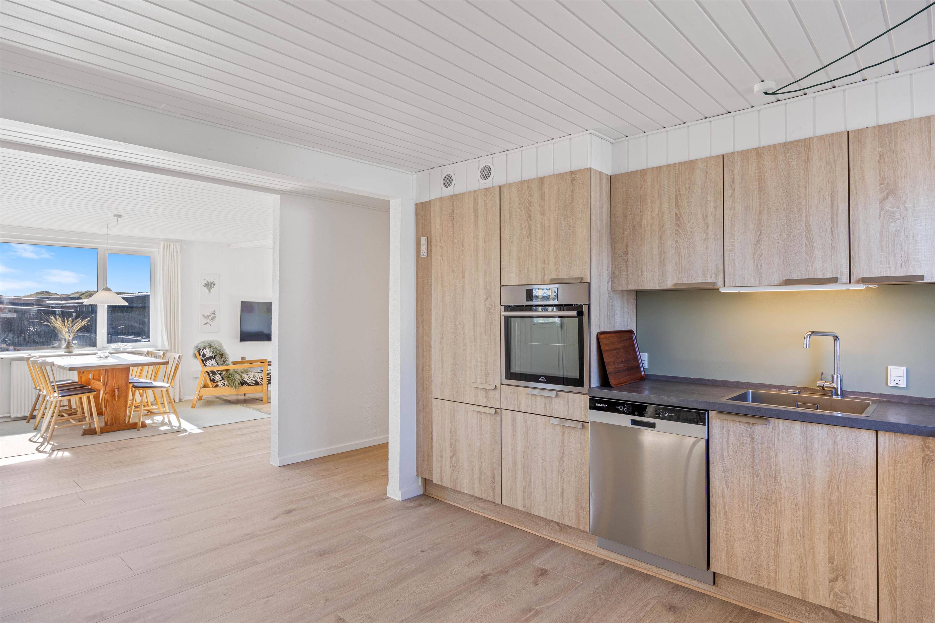 Sommerhusets samlingspunkt er køkken-alrummet, hvor der er plads til, at I alle kan samles om aftensmaden eller sætte jer ind i stuen og se en god film. I køkkenet finder I en opvaskemaskine, så I ikke skal tænke på opvasken efter aftensmaden.