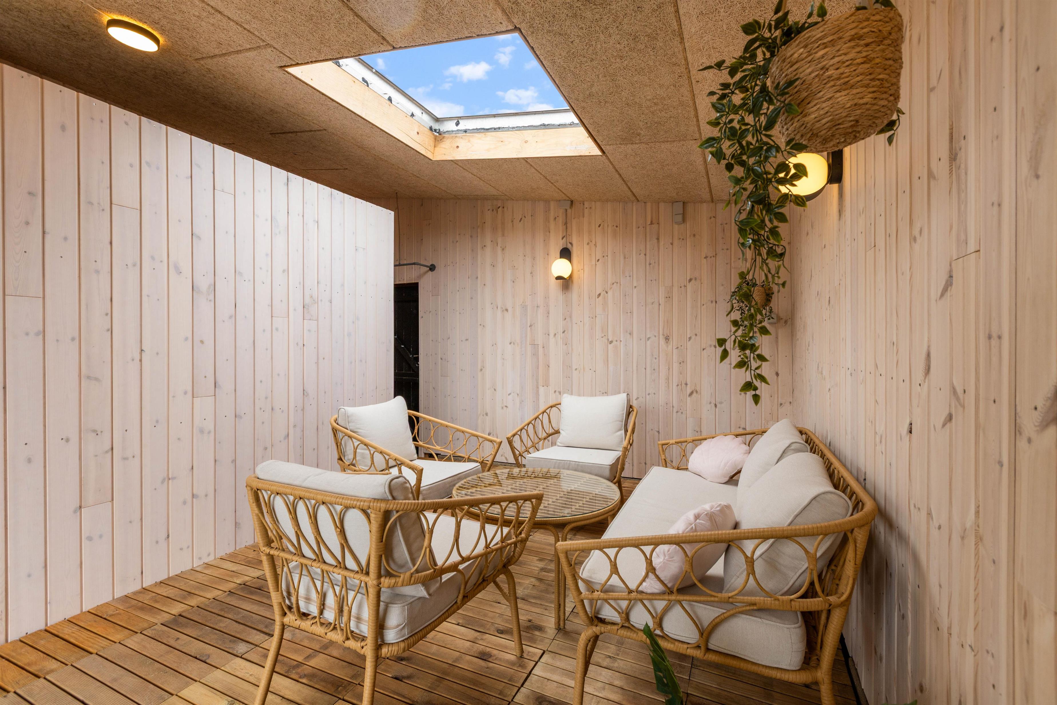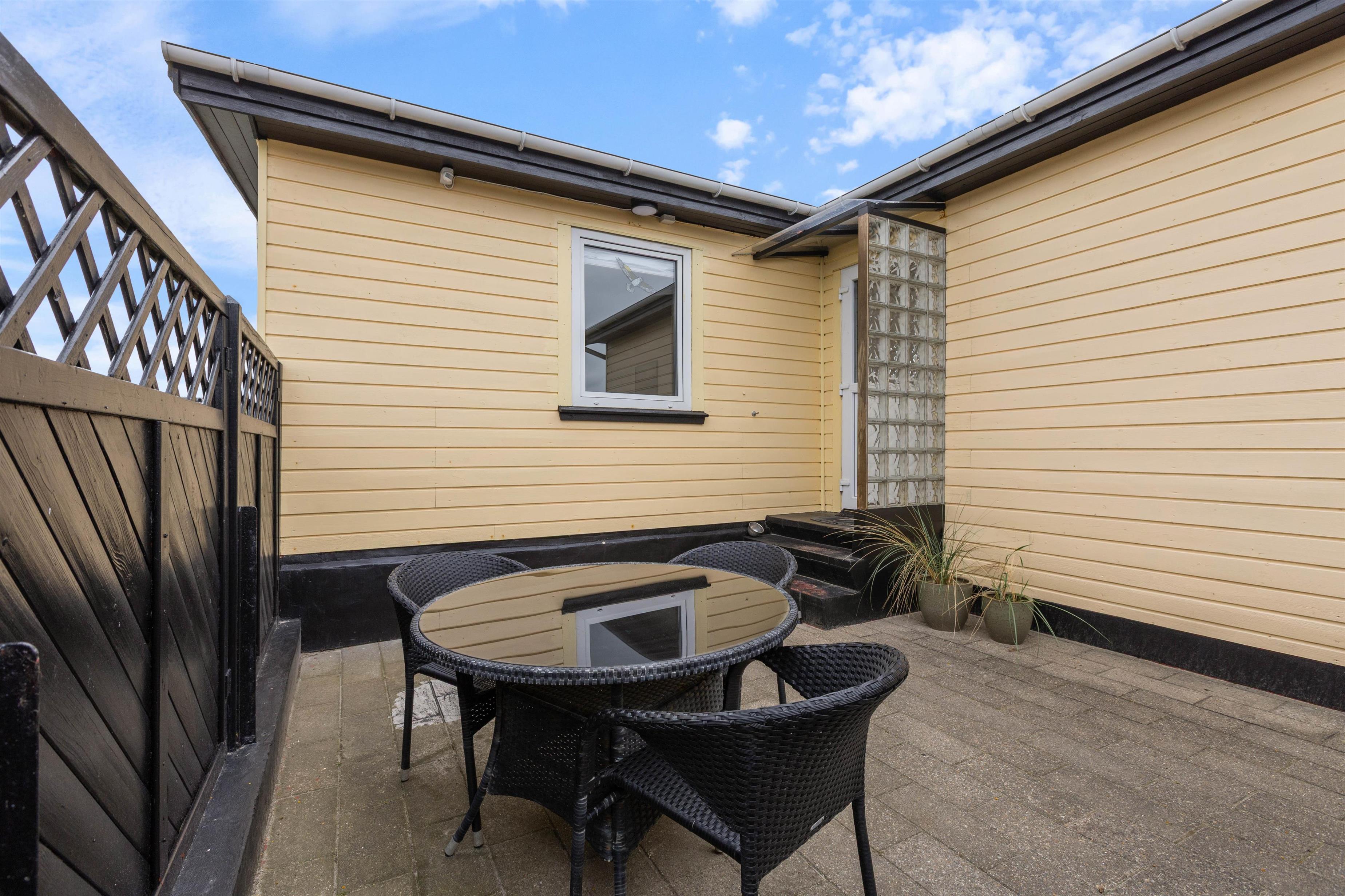 Udendørsarealerne er ideelle til afslapning og leg. Den lukkede plænegrund giver trygge rammer for både børn og hund, mens havemøblerne indbyder til lange sommeraftener med grill og hygge.