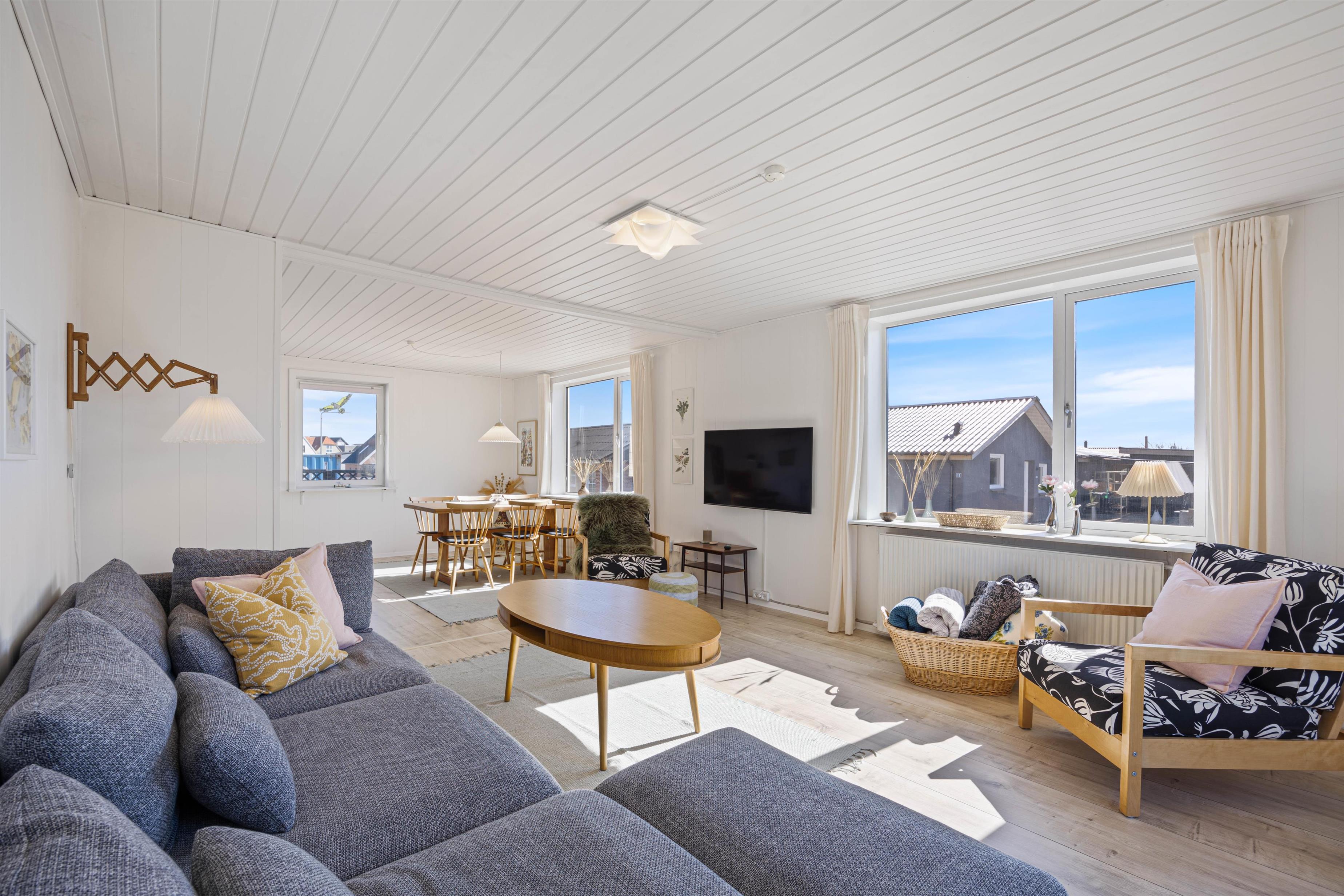 Vesterhavsvej 10 er beliggende i Hvide Sande, og der er derfor kun 400 meter til nærmeste indkøb, så I nemt kan handle ind til feriens måltider. Hvide Sande byder på gode fiskerestauranter og masser af aktiviteter – fra vandsport på Ringkøbing Fjord til hyggelige butikker.