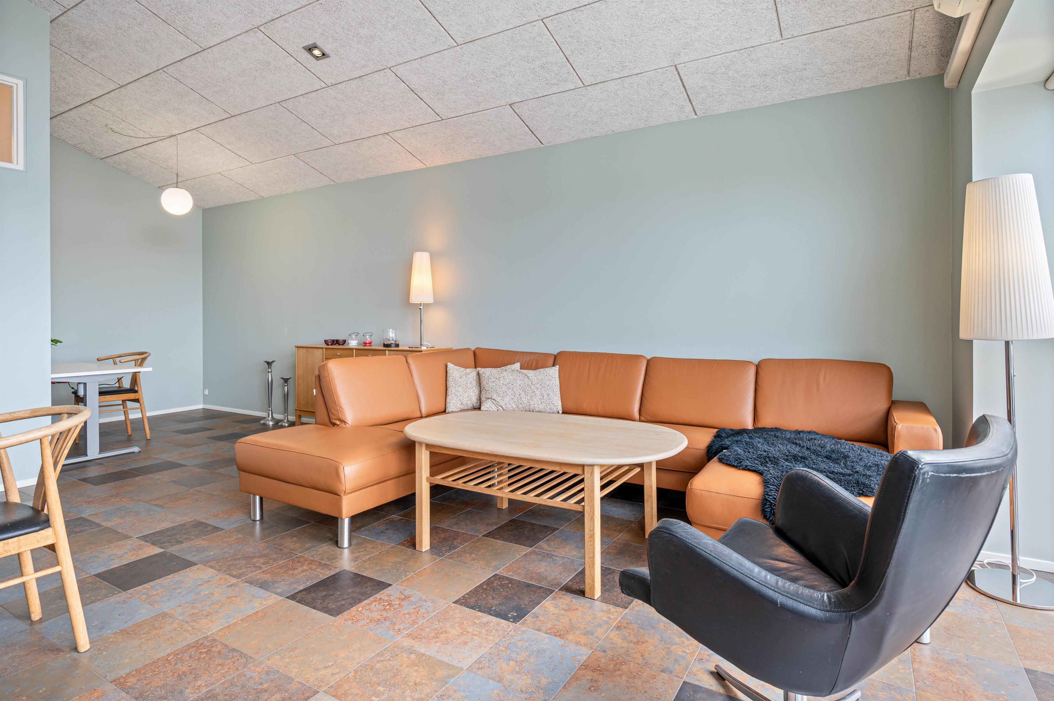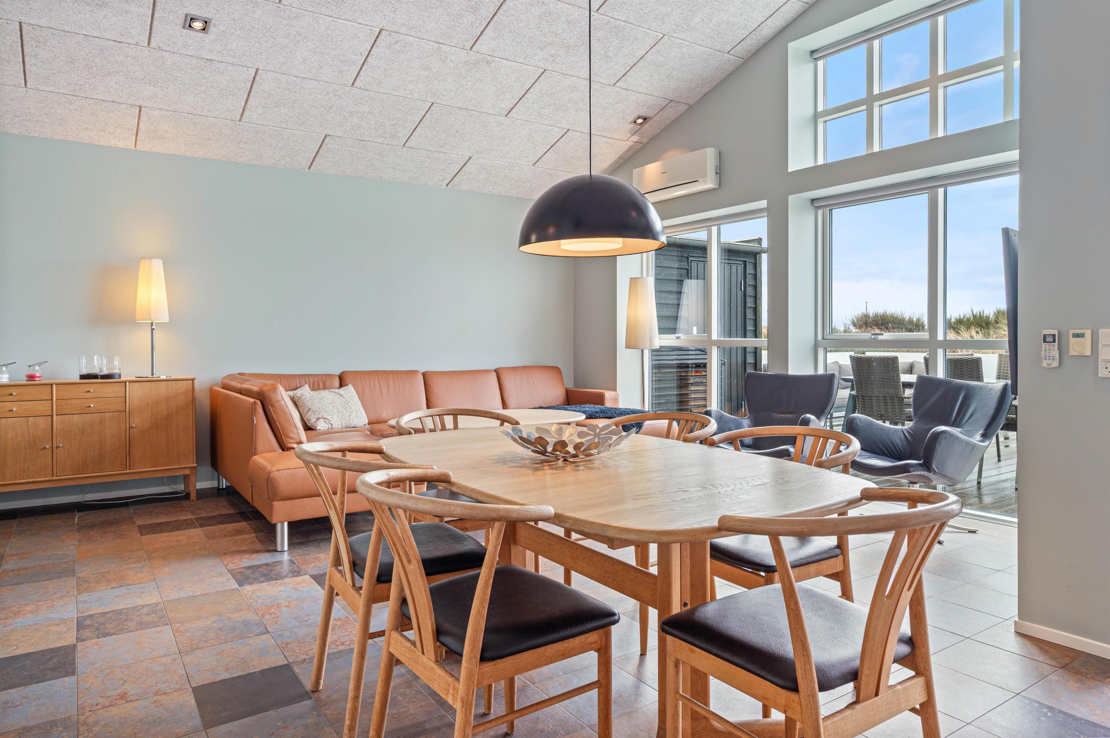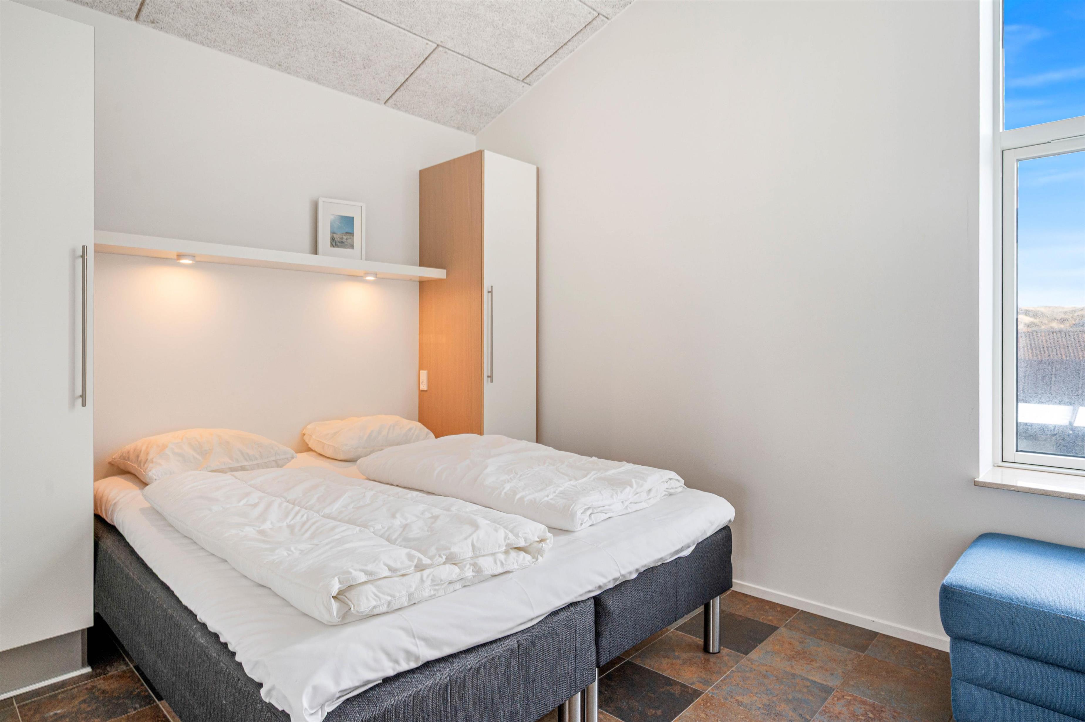 Med det samme I træder ind i denne dejlige ferielejlighed, mødes I af et lyst og rummeligt åbent opholdsrum, som rummer både køkken og stue. De store vinduespartier lukker masser af lys ind og skaber en behagelig atmosfære. En varmepumpe sikrer en dejlig temperatur i ferielejligheden året rundt.