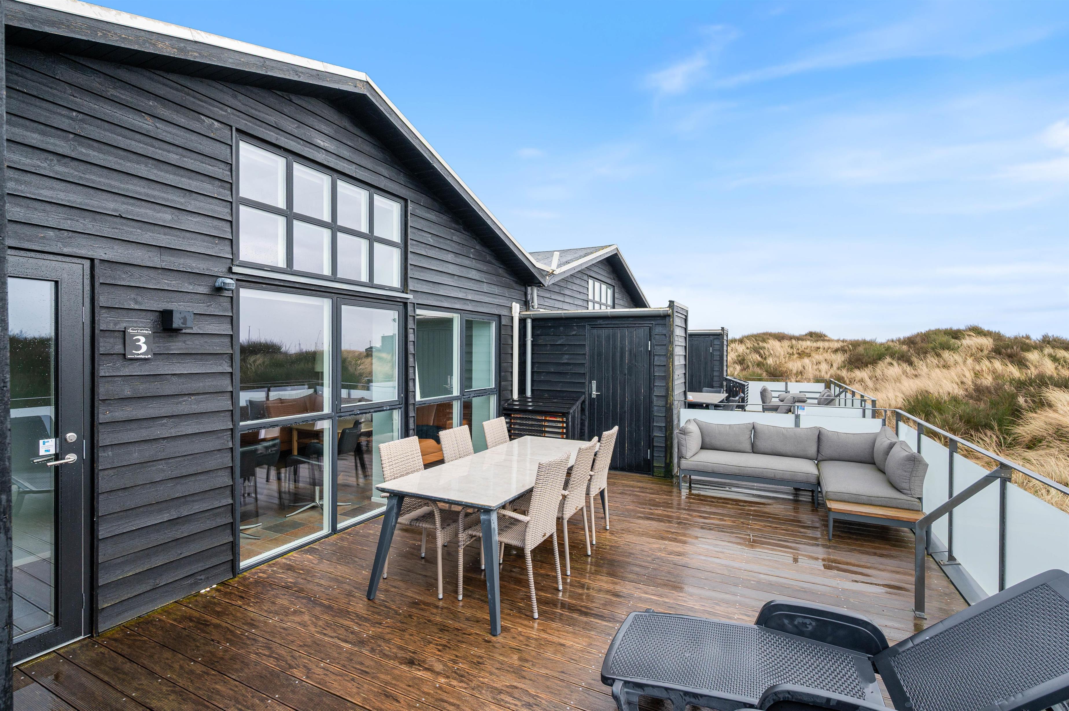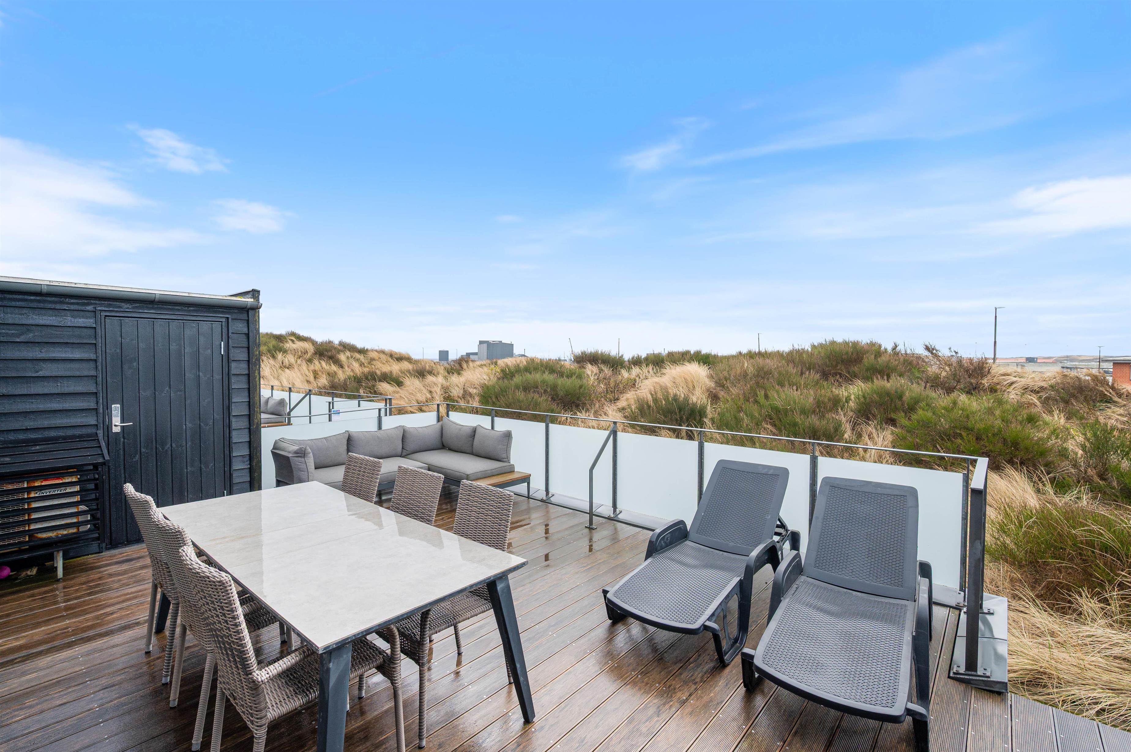 Terrassen er lukket, hvilket er en fordel, hvis I har hund med. Her kan både børn og hund færdes trygt, mens I nyder roen og den friske vestjyske luft.