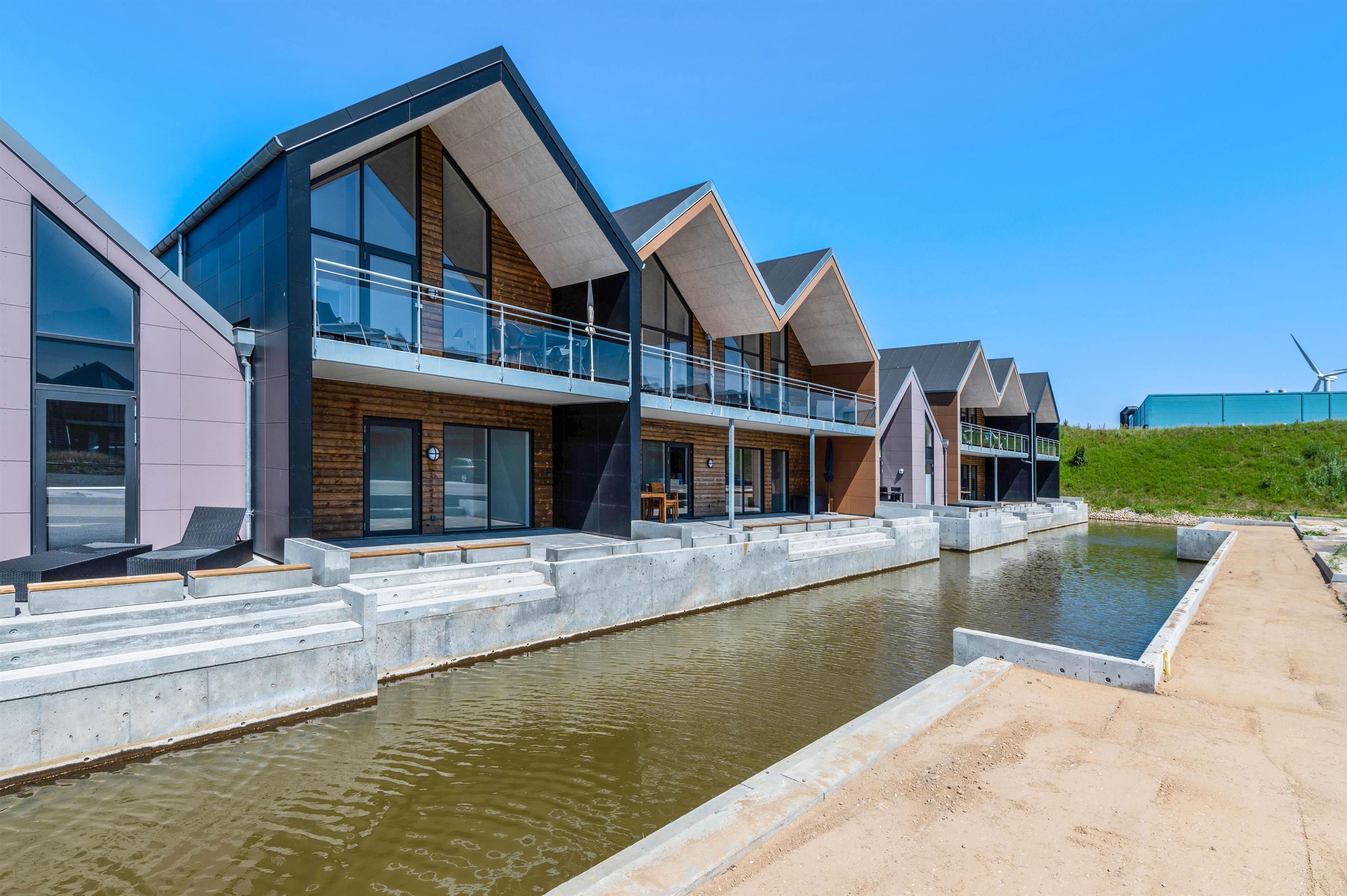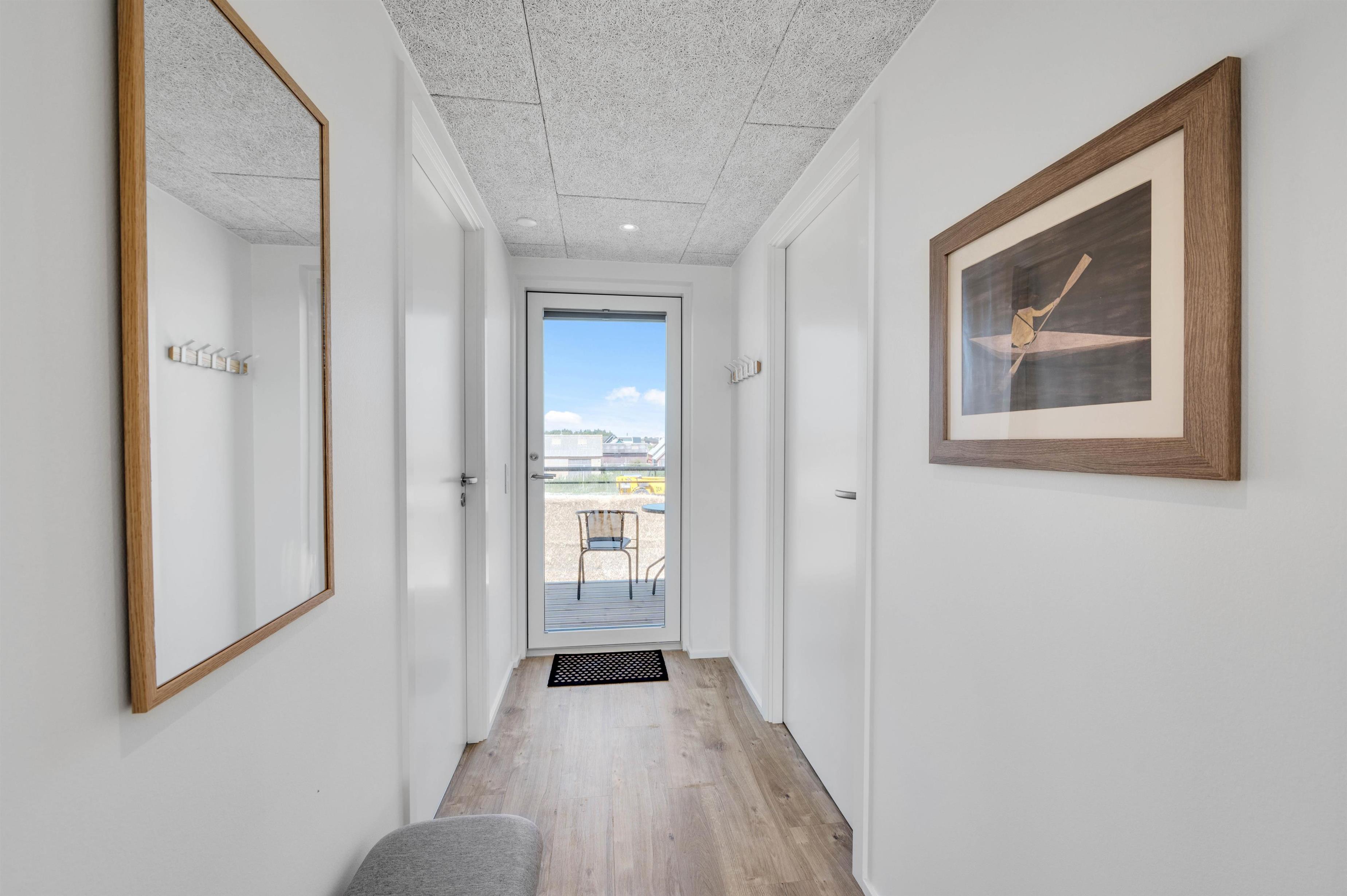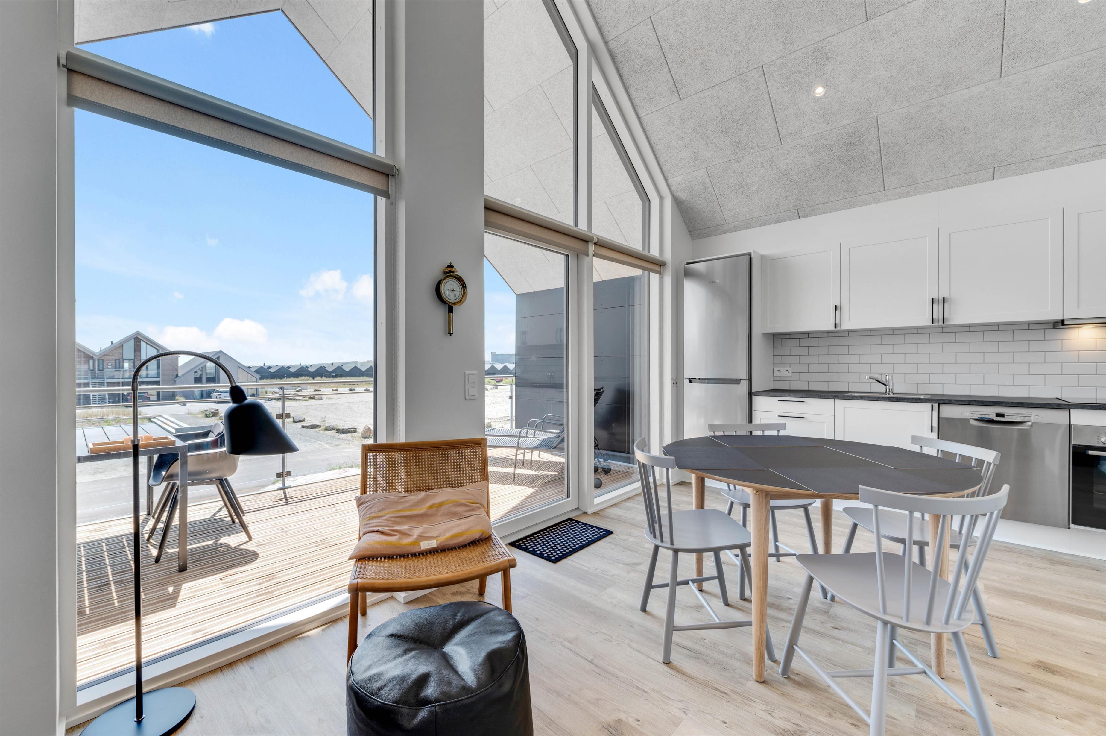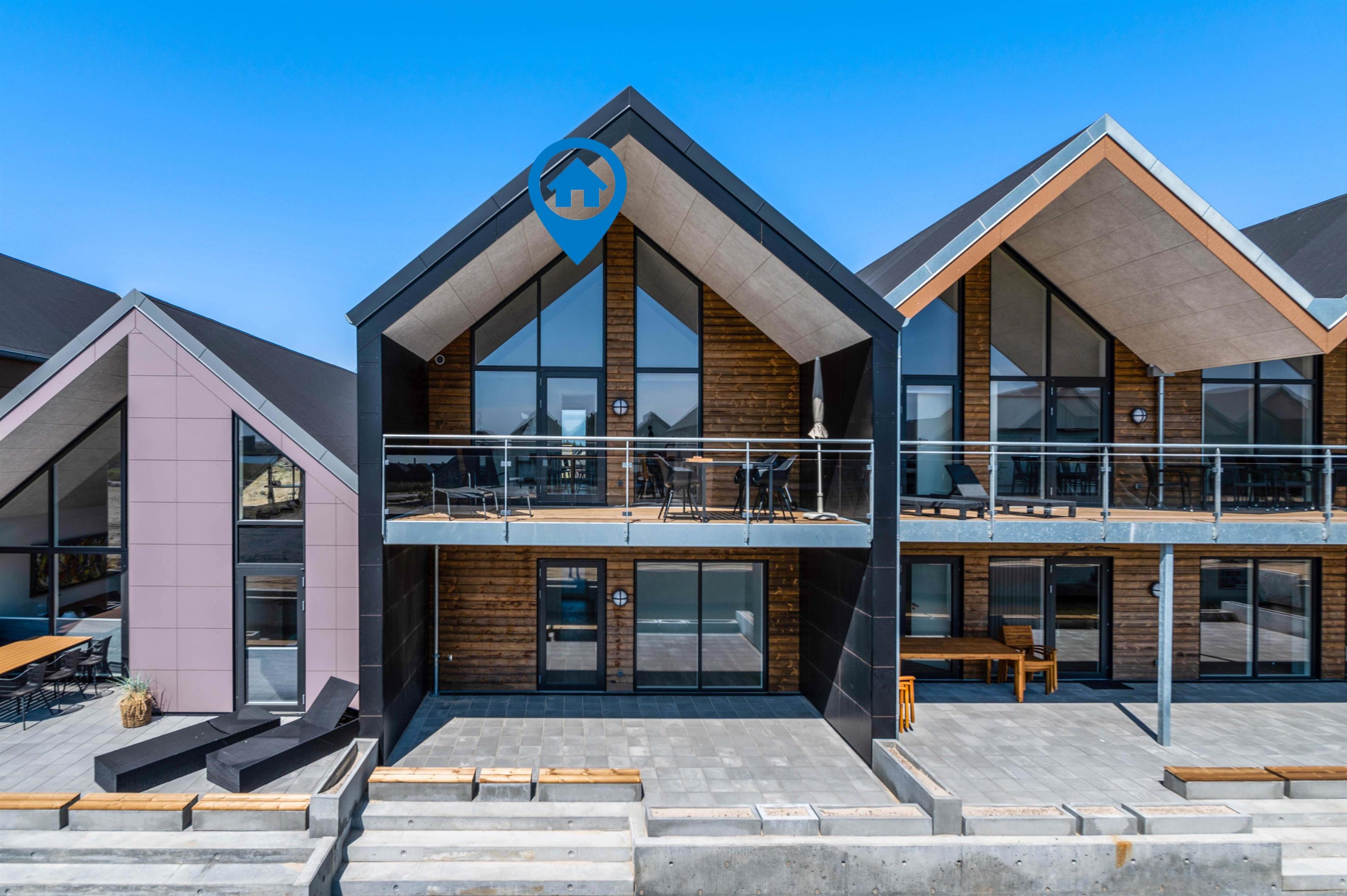 Ferielejligheden har i det hele taget en dejlig beliggenhed i Hvide Sandes nyeste ferieområde, ”Langsand Langs Vand”. Den lille kanal-ferieby kombinerer moderne feriebebyggelse med det hyggelige liv langs vandet, og I kommer til at bo få minutters gang fra Ringkøbing Fjord og den autentiske fjordhavn, Tyskerhavnen, hvor små joller hver dag sejler ind og ud af havnen. Ringkøbing Fjord kan ses fra begge terrasser ved lejligheden.