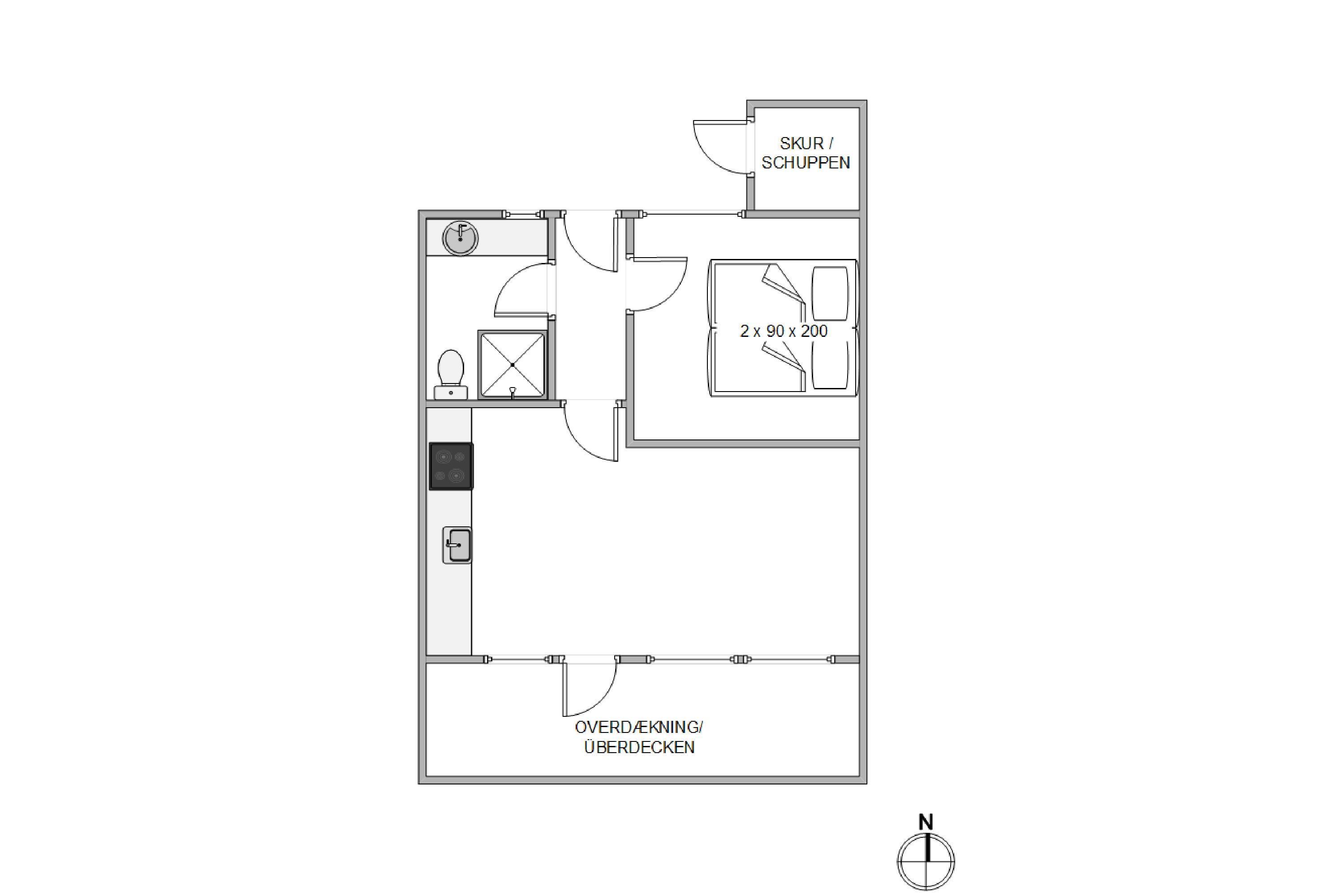 Moderne ferielejlighed til 2 personer – tidløs, praktisk indretning og altan med udsigt