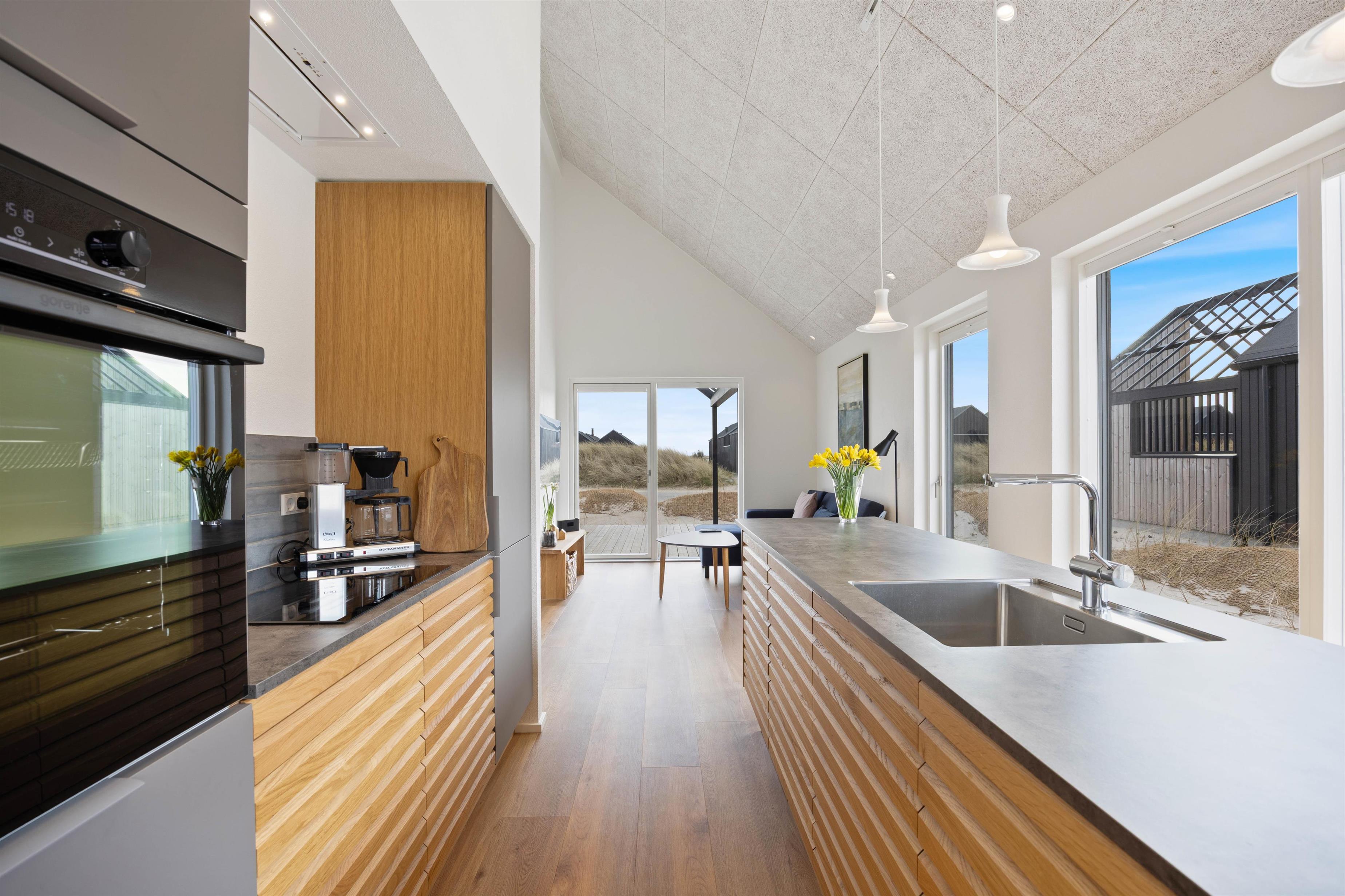 Sommerhuset er bygget i 2025 med store vinduespartier, som lukker masser af naturligt lys ind i rummene. I sommerhusets hjerte, det åbne køkkenalrum, kan hele familien samles om madlavning og hyggelige måltider. Køkkenet er naturligvis udstyret med både opvaskemaskine og god bordplads, så det er nemt at tilberede lækre måltider.