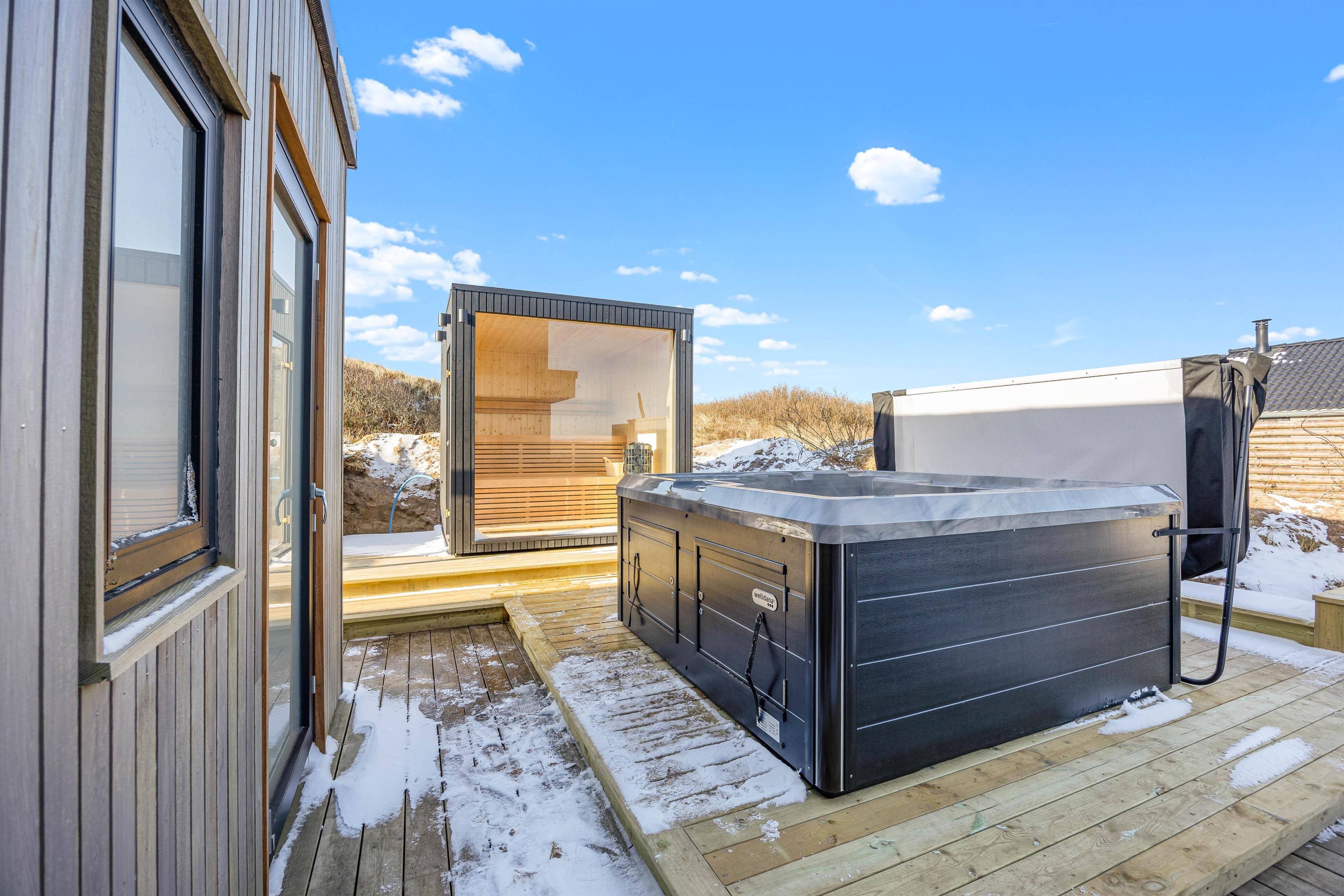 Efter en dag ved stranden kan I forkæle jer selv med en tur i udespaen eller tage en tur i udesaunaen og nyde roen. Den udendørs bruser giver mulighed for et forfriskende bad efter en dukkert i Vesterhavet eller en varm stund i spaen. I skal være opmærksomme på, at udebruseren kun er tilgængelig fra april til november.
