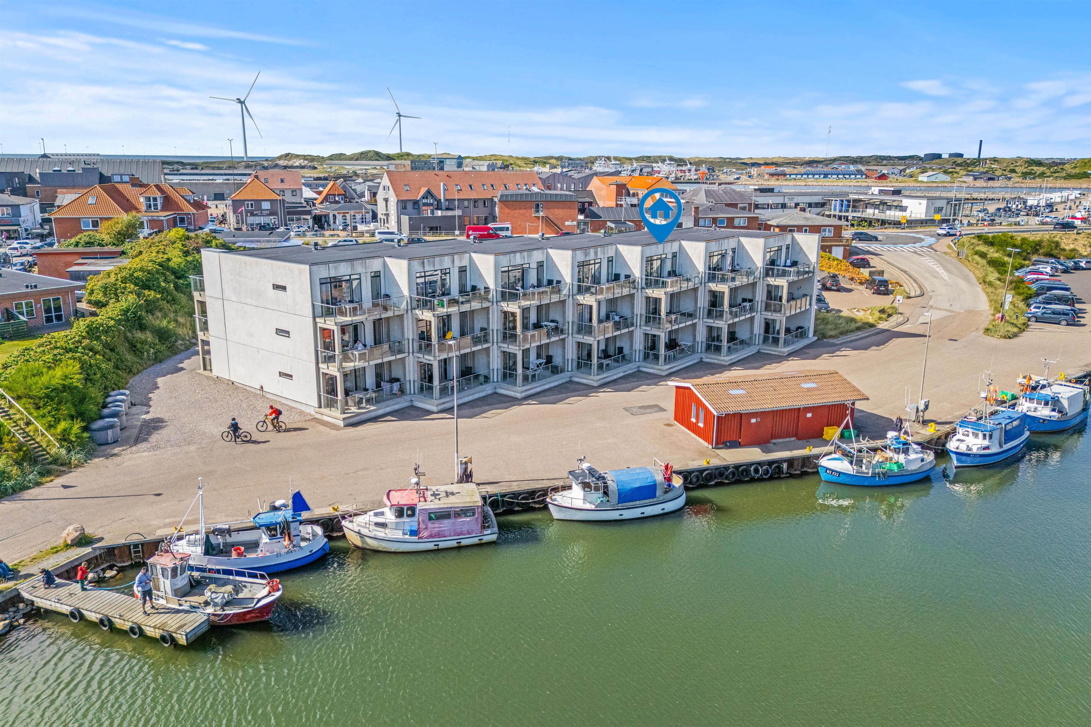 I får en helt unik beliggenhed i den hyggelige havneby Hvide Sande, og her ligger alt i gåafstand fra feriehjemmet.