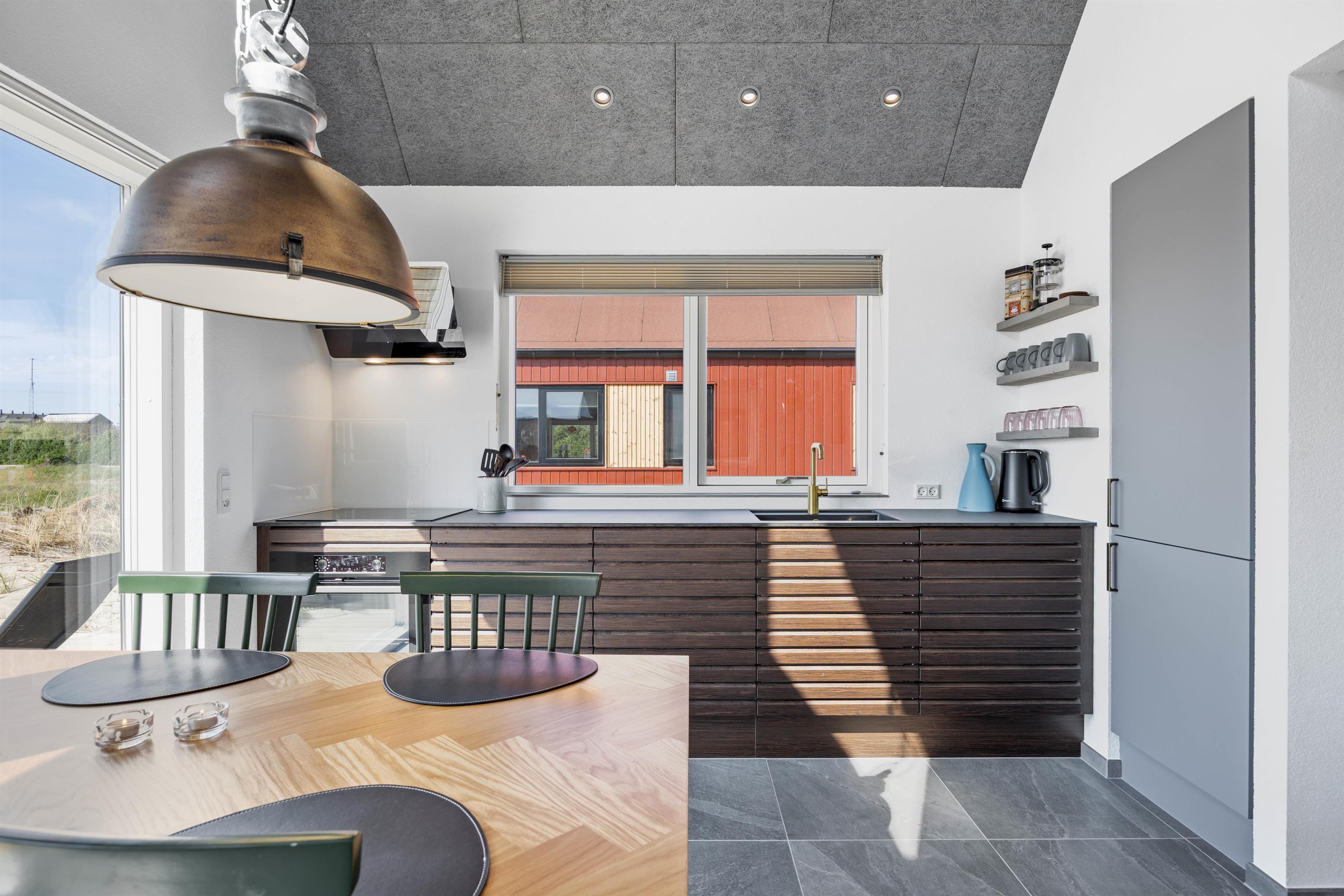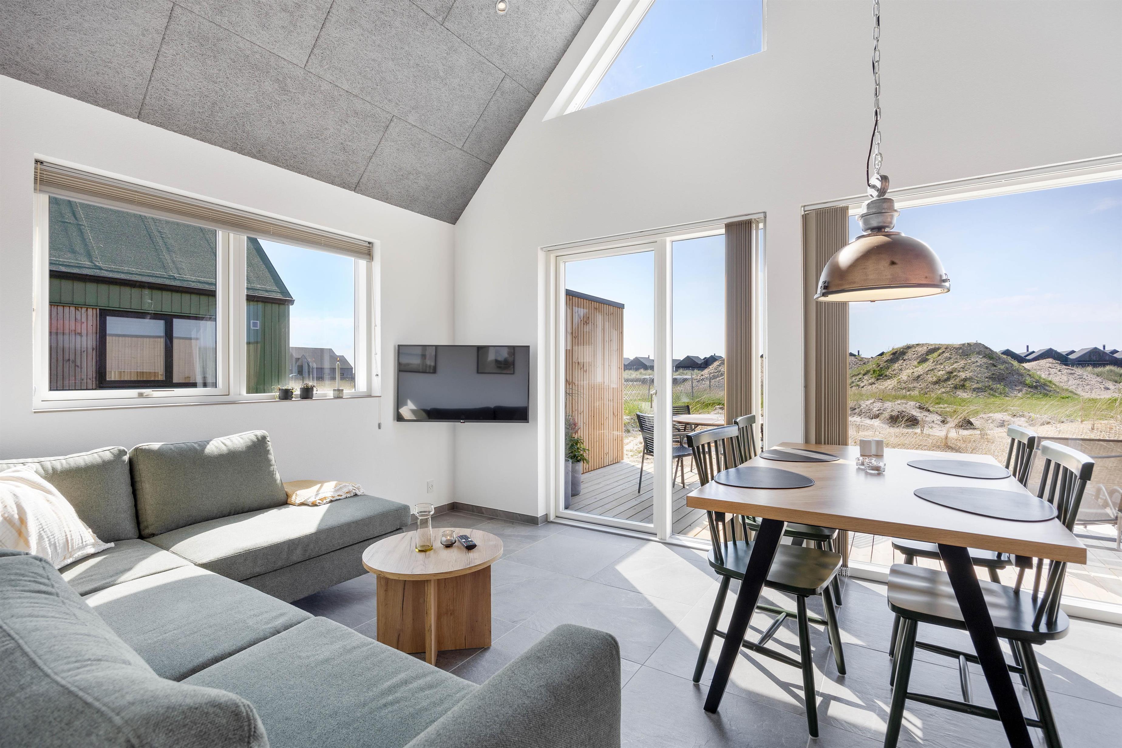 Dette moderne sommerhus er bygget i 2023 og kan rumme 4 personer. Sommerhuset ligger på Langsand blot få meter fra den hyggelige Tyskerhavn, hvor I kan gå ture langs vandet ved Ringkøbing Fjord. Sommerhuset er beliggende på en naturgrund med åben og afskærmet terrasse. Hvis I ankommer i en el-bil, er det også muligt at lade den ved sommerhuset, I skal blot selv medbringe et kabel.