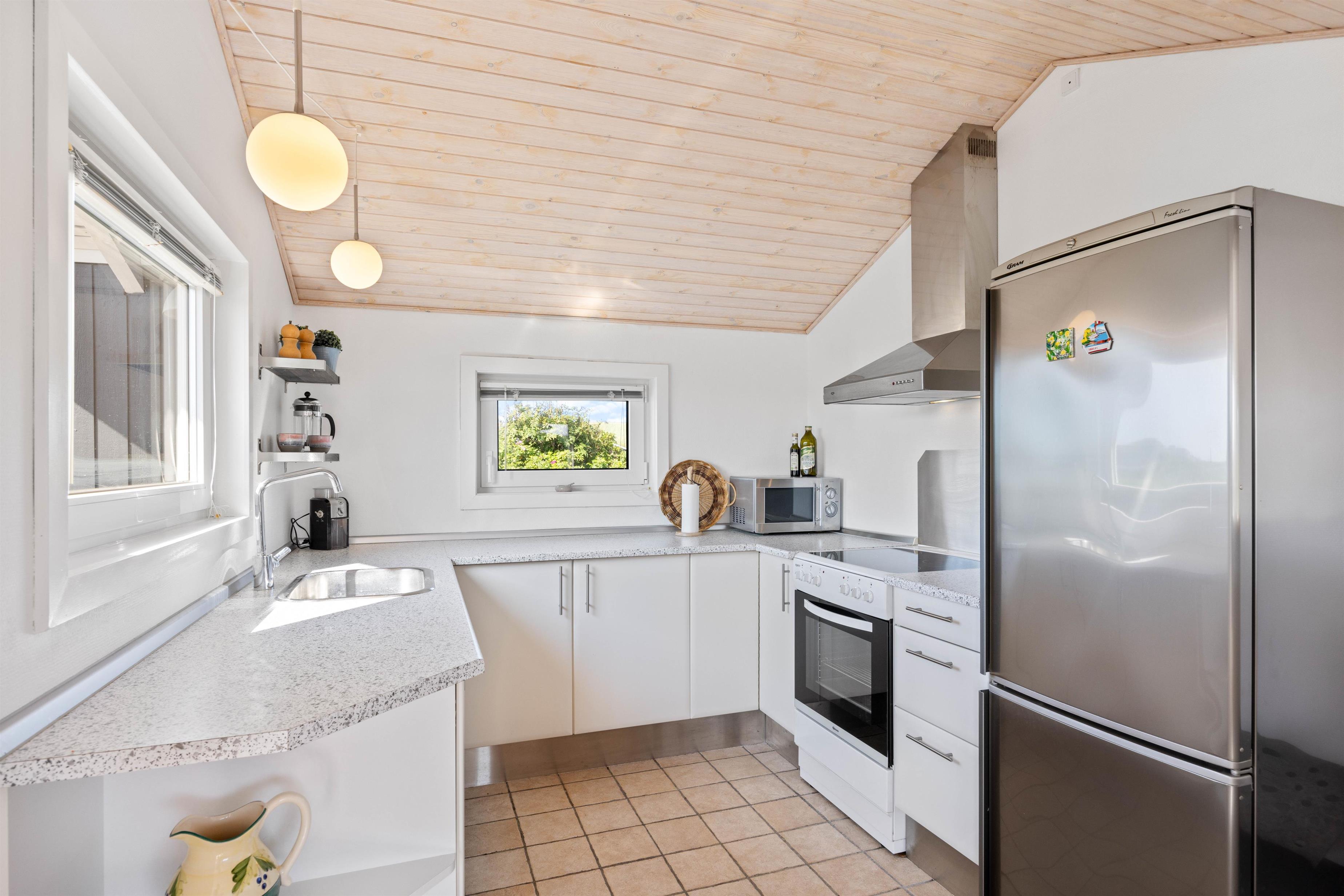 Sommerhuset byder på en hyggelig indretning med plads til 5 personer og 1 hund. Det åbne køkken er veludstyret, så I nemt kan tilberede lækre måltider sammen. I stuen kan I slappe af i de komfortable møbler, se TV eller nyde en god bog. Badeværelset er praktisk indrettet med en vaskemaskine, så I har mulighed for at vaske tøjet.