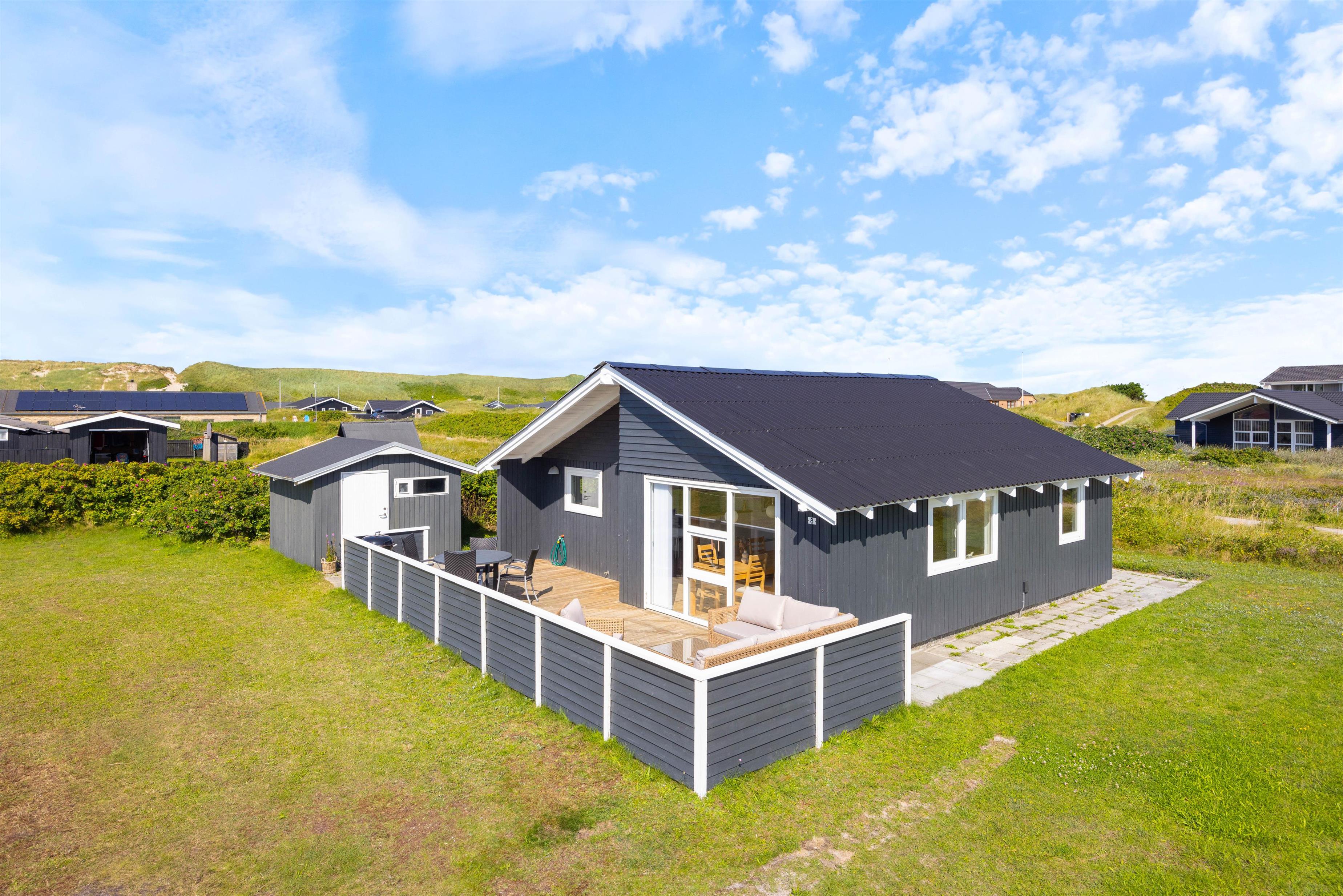 Den rummelige plænegrund giver masser af plads til leg og aktiviteter for både børn og hund. Med kun 200 meter til havet kan I tage lange gåture på stranden. Indkøbsmulighederne er også tæt på, kun 1900 meter væk, så I nemt kan handle ind til jeres ophold.