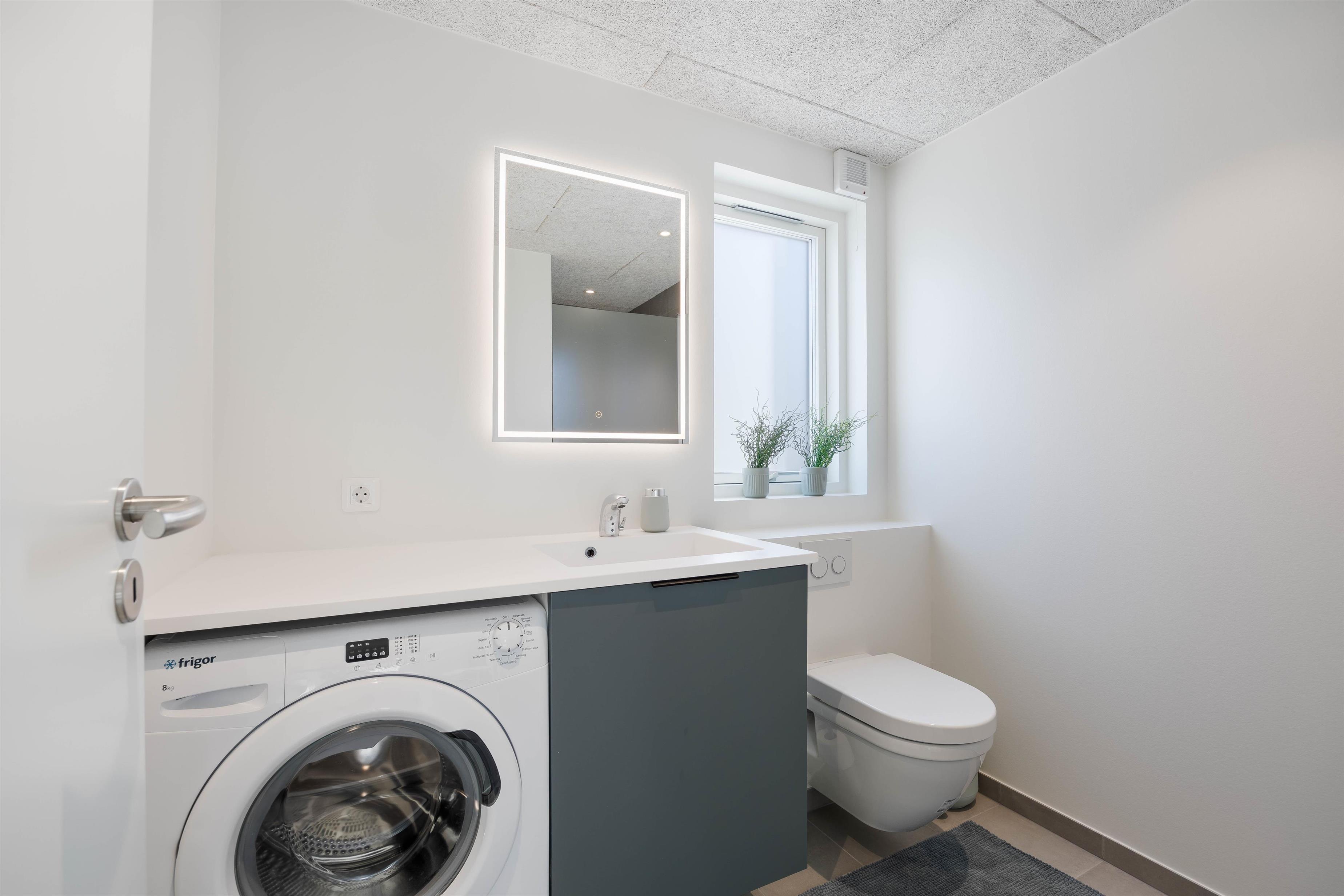 Der er installeret gulvvarme i både køkkenalrummet og på badeværelset, som sørger for en behagelig temperatur i sommerhuset. Desuden er varmen gratis, og I skal derfor ikke bekymre jer om nogle ekstra udgifter. Der er også en vaskemaskine til fri afbenyttelse.
