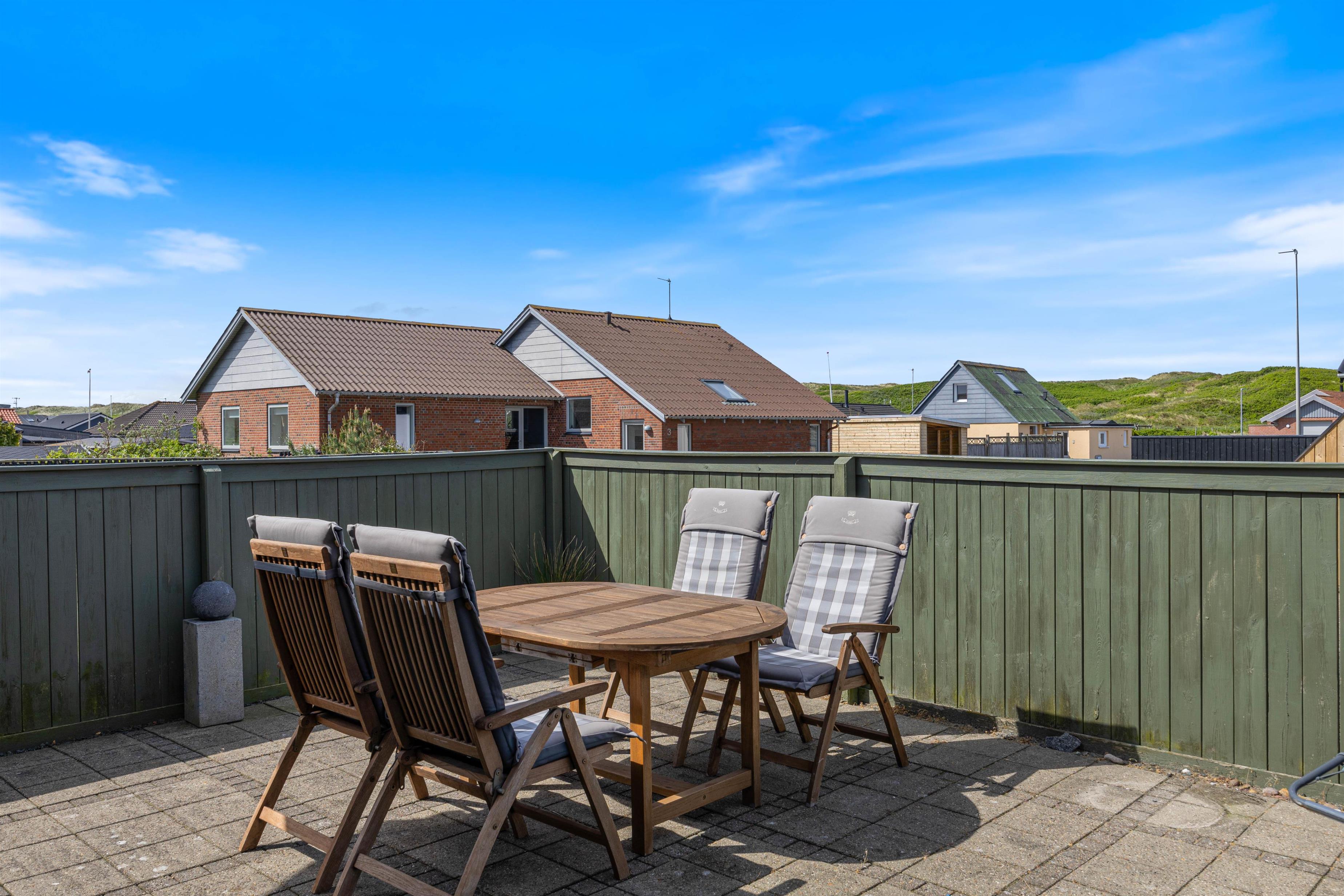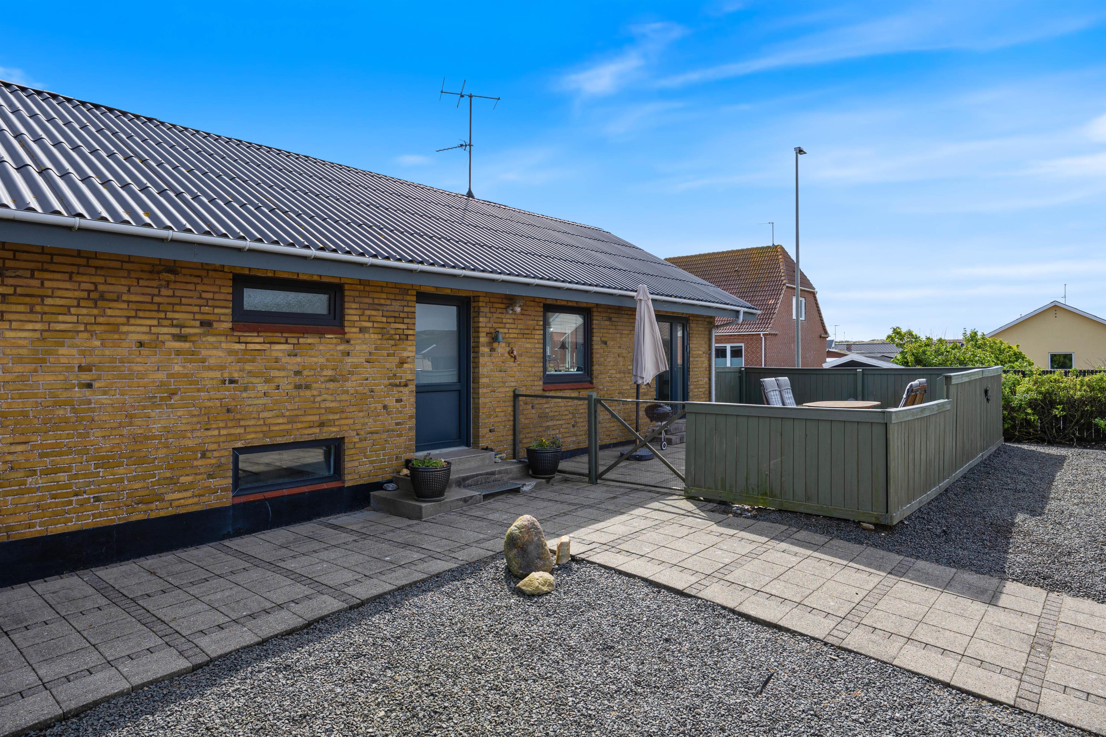 Den lukkede terrasse gør det nemt at lade børn og hunde lege frit, mens man en sommeraften nyder en grillmiddag og en god rødvin, med solnedgangen og havets brusen i baggrunden. Det må være den ultimative nydelse og afslapning - og ren balsam for krop og sjæl.