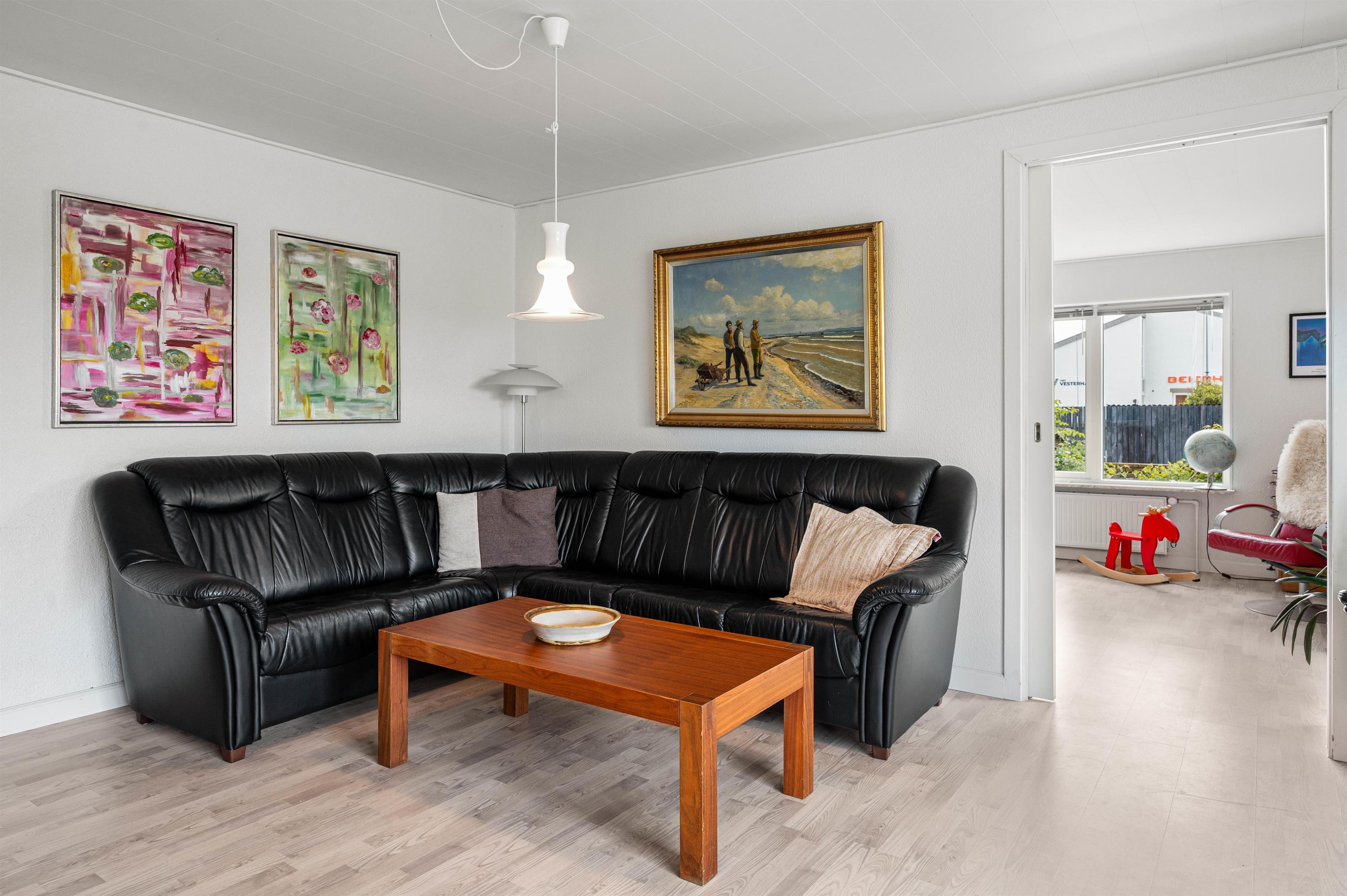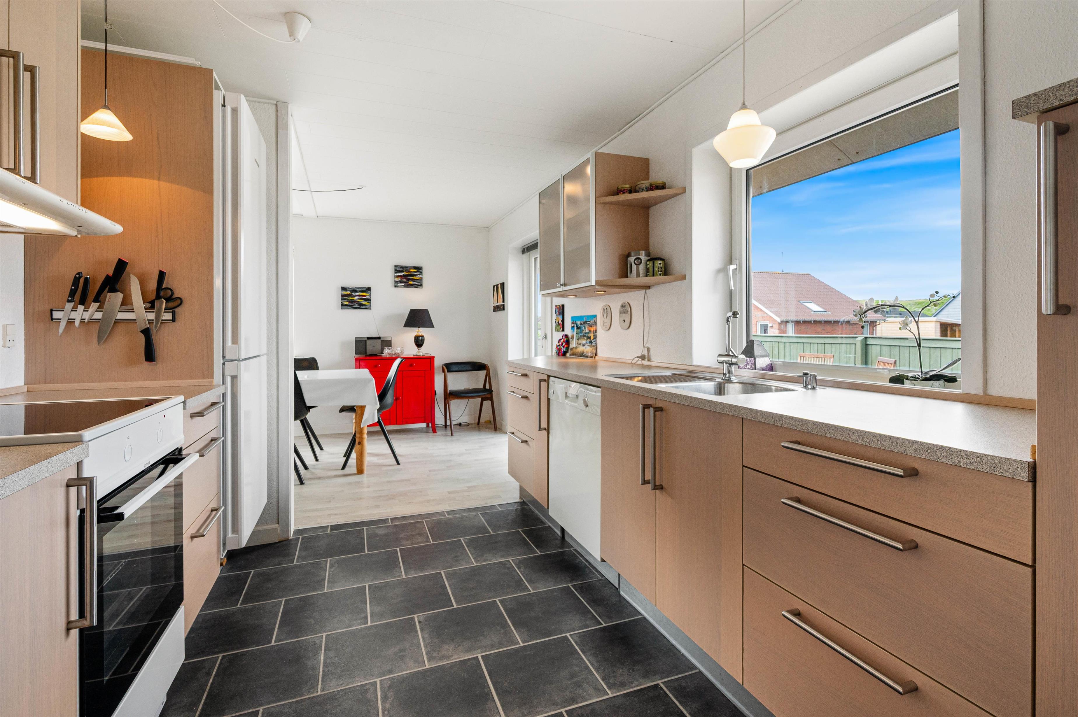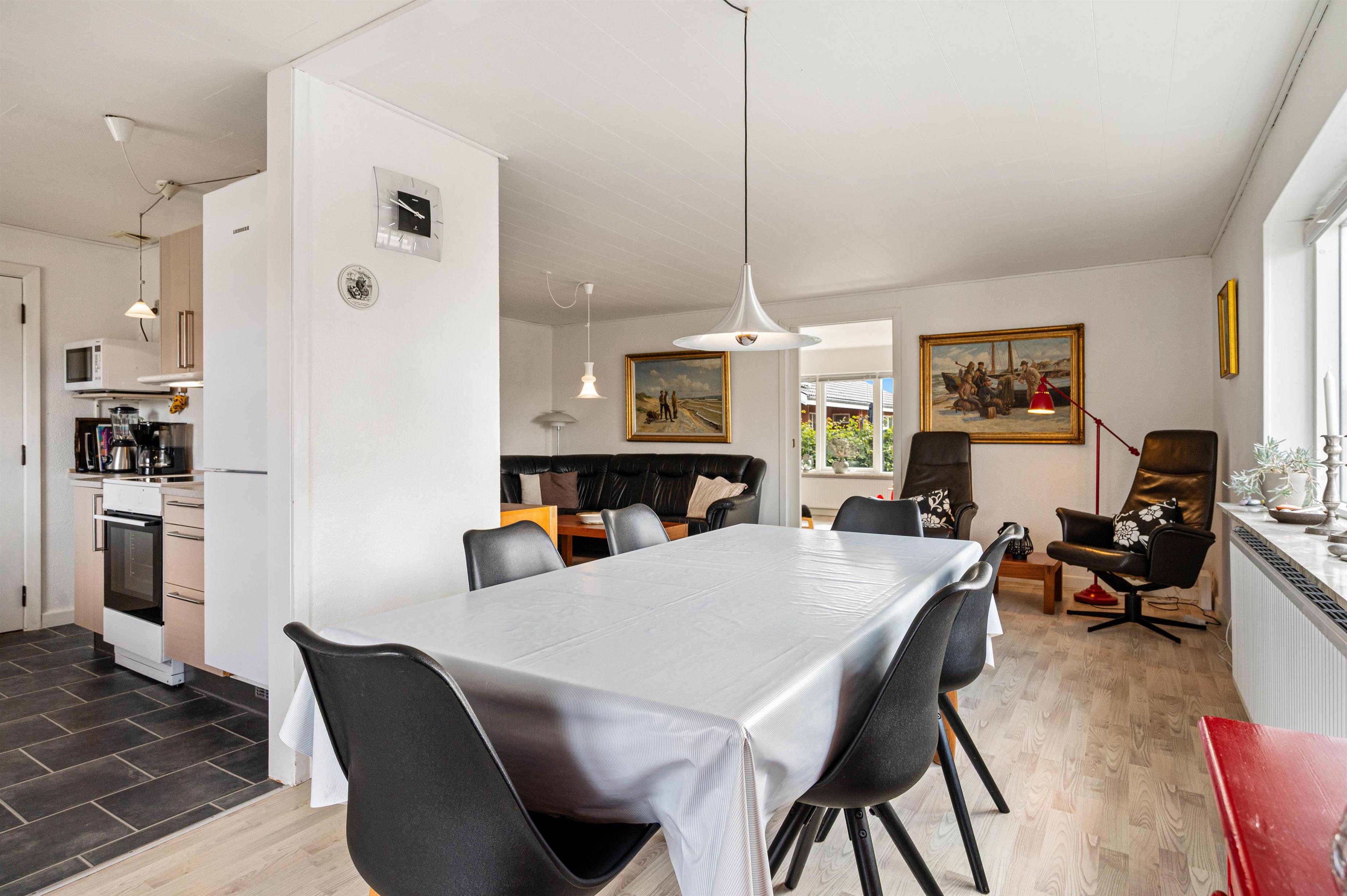 Dette dejlige byhus i det centrale Hvide Sande er overalt hyggeligt og lyst indrettet, med bl.a. trælaminat gulve og klinker.