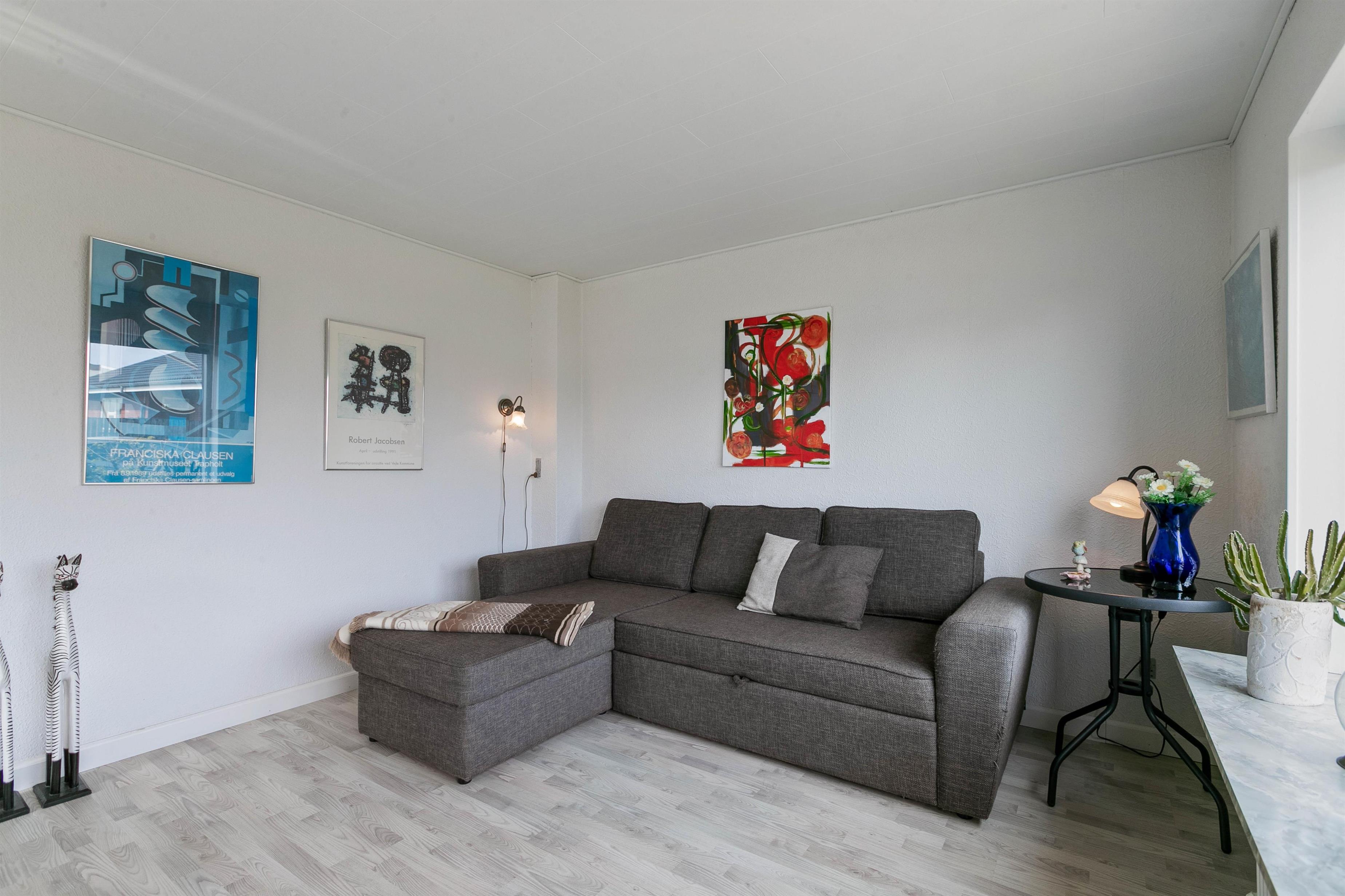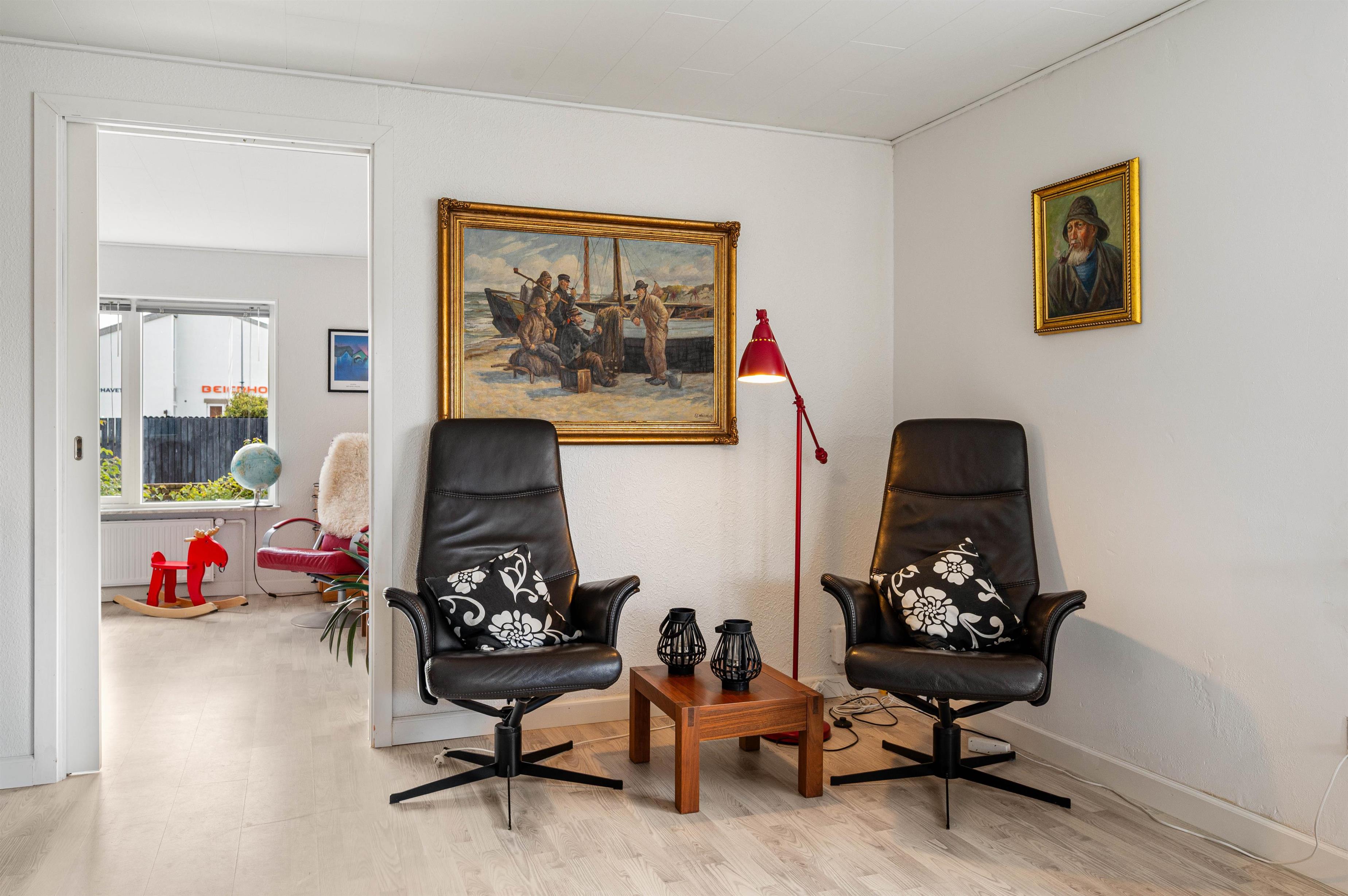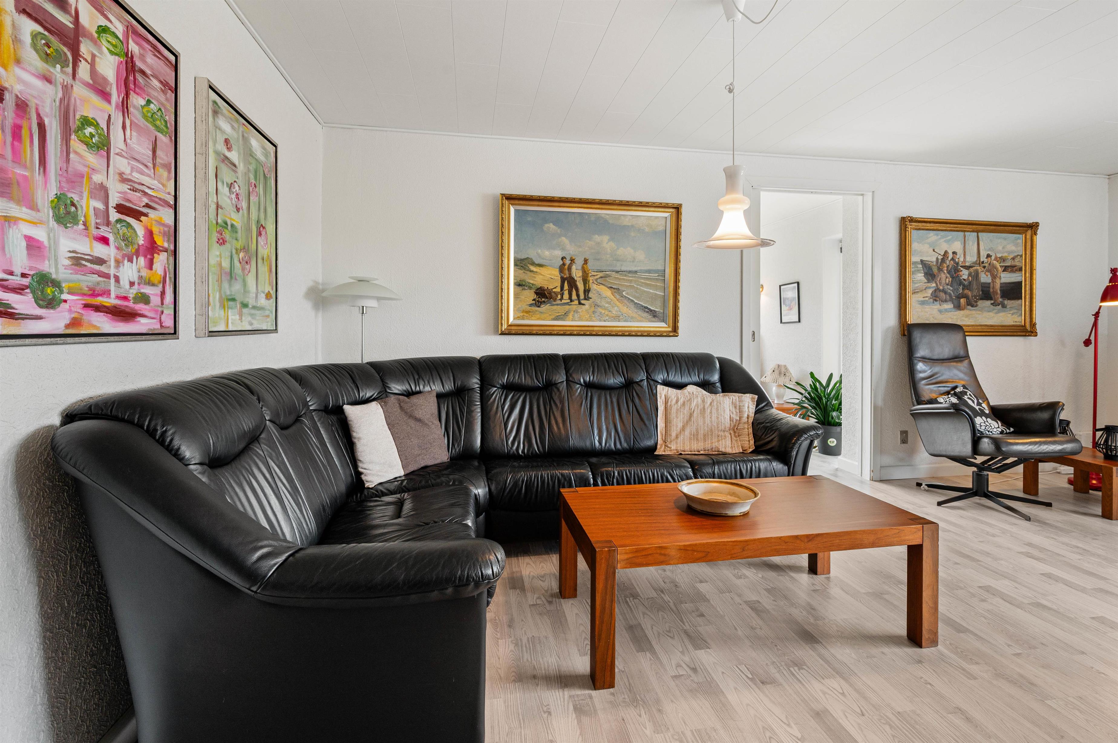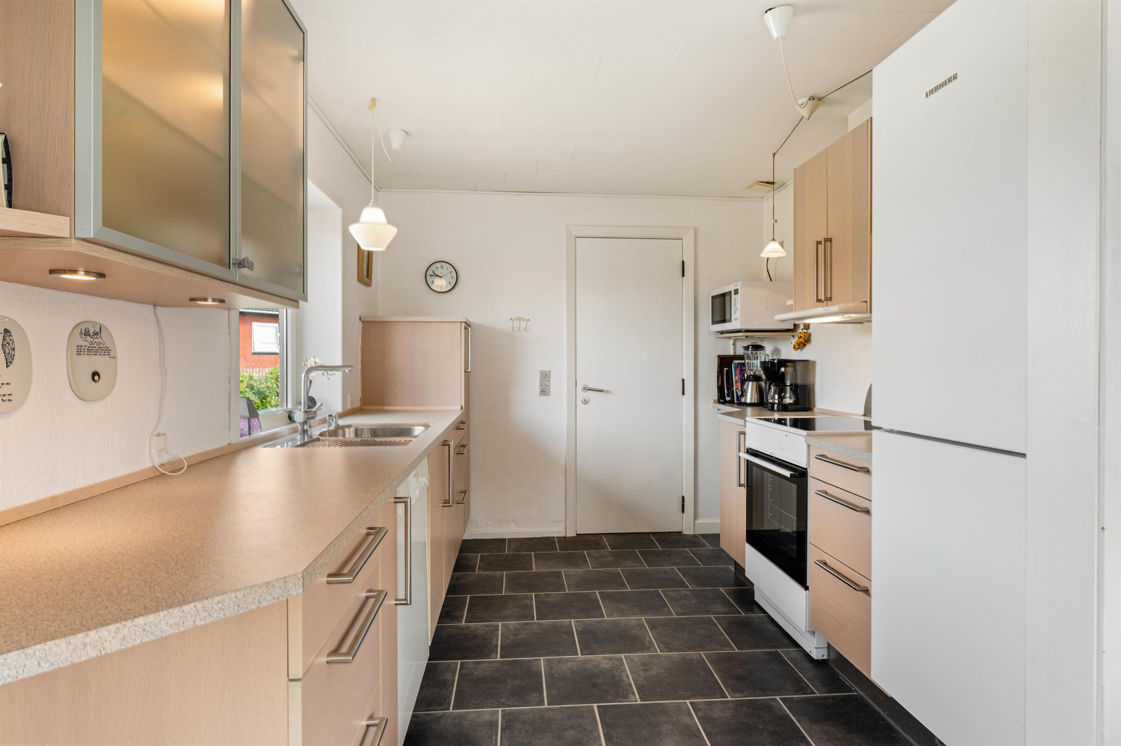 Dette dejlige byhus i det centrale Hvide Sande er overalt hyggeligt og lyst indrettet, med bl.a. trælaminat gulve og klinker.