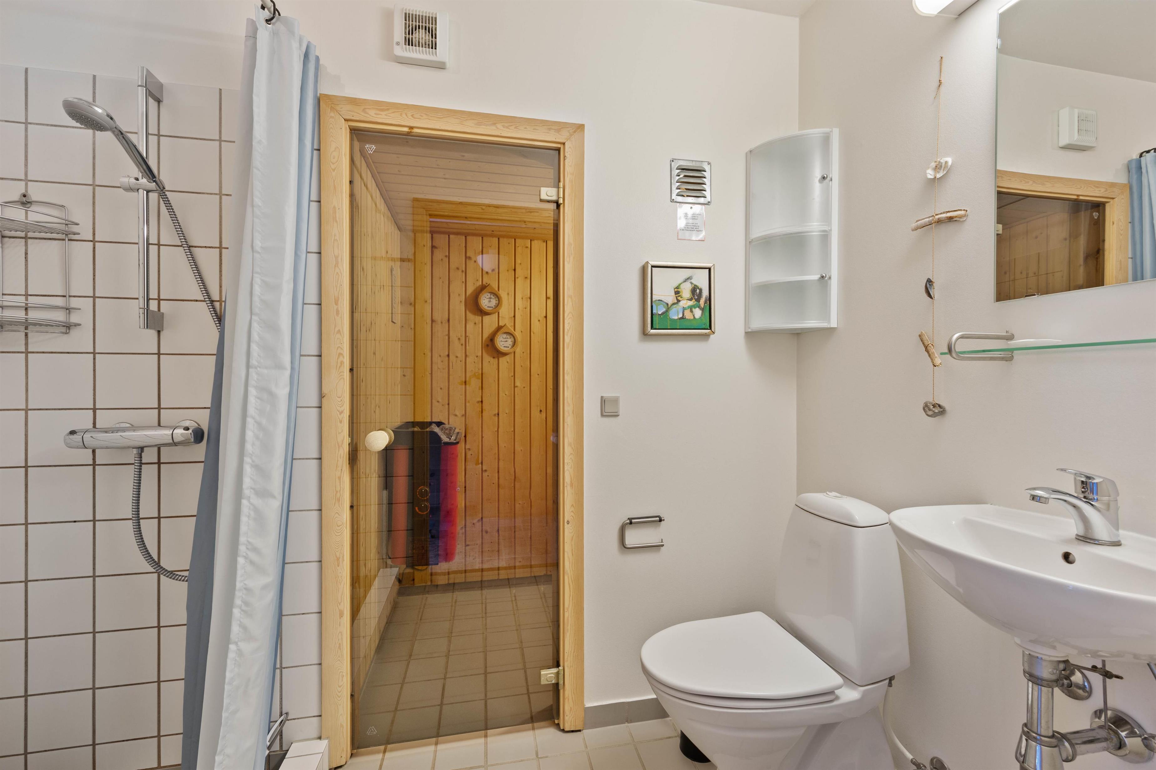 Lejligheden er den yderste i lejlighedskomplekset. Den gode beliggenhed betyder, at du fra ferielejligheden har en smuk udsigt over Ringkøbing Fjord fra stuen og det ene værelse med dobbeltseng. En udsigt du kan nyde, mens du får morgenmad på den sydlige terrasse, nyder solens varme i liggestolen eller langsom vågner fra sengen. I ferielejligheden findes to værelser, og på begge værelser er en dobbeltseng – perfekt til den lille familie eller to vennepar, der gerne vil tilbringe en uge sammen og slappe af! På badeværelset finder I sauna og spabad, hvor I kan få slappet af og ladet batterierne op.