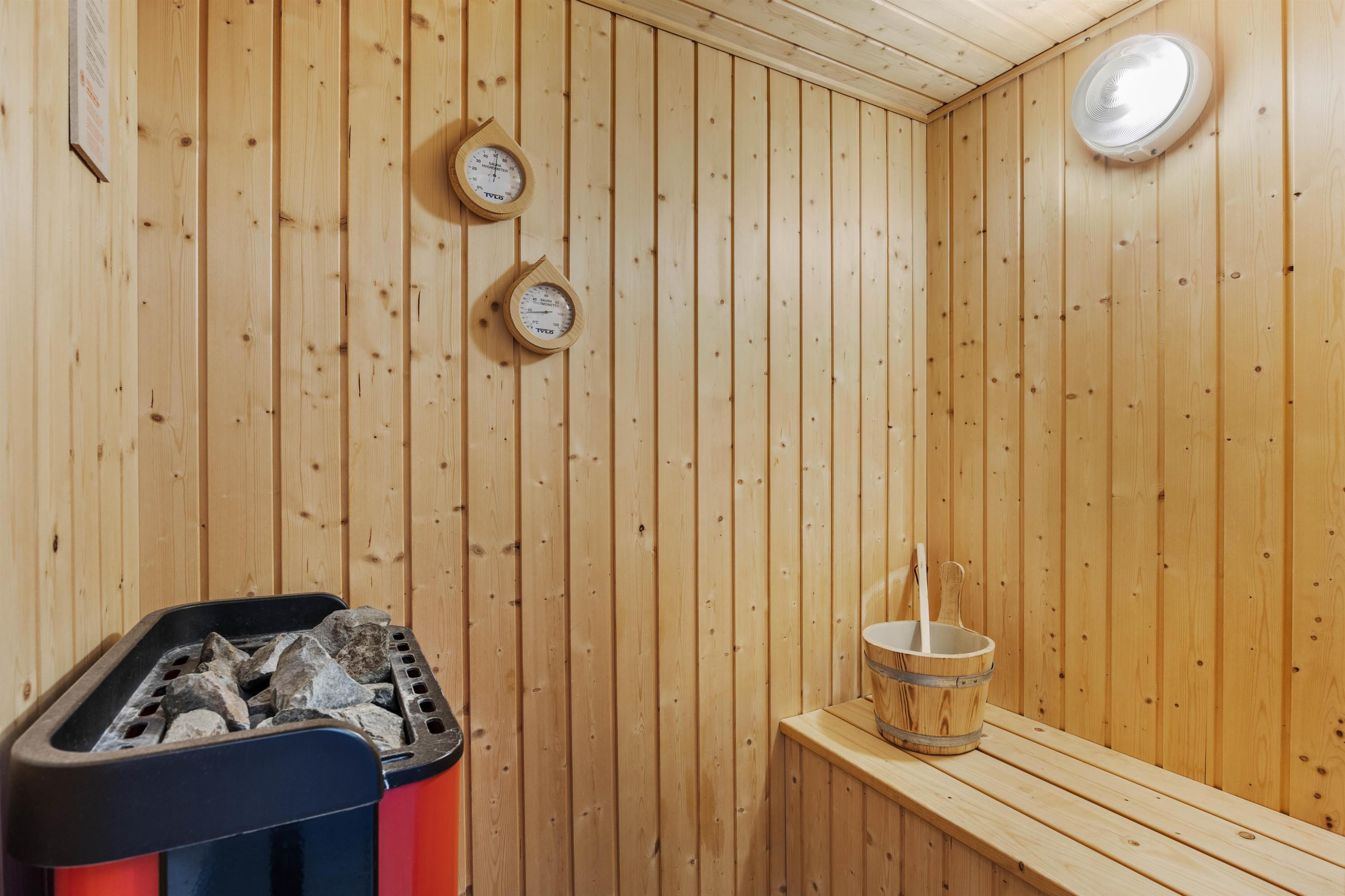 Denne skønne, lyse feriebolig er hyggeligt indrettet og indbyder til en dejlig afslapningsferie. I stuen kan I sætte jer godt til rette og nyde udsigten over fjorden. Og efter en frisk gåtur langs fjordstien eller ved stranden kan I slappe af i saunaen eller spaen.