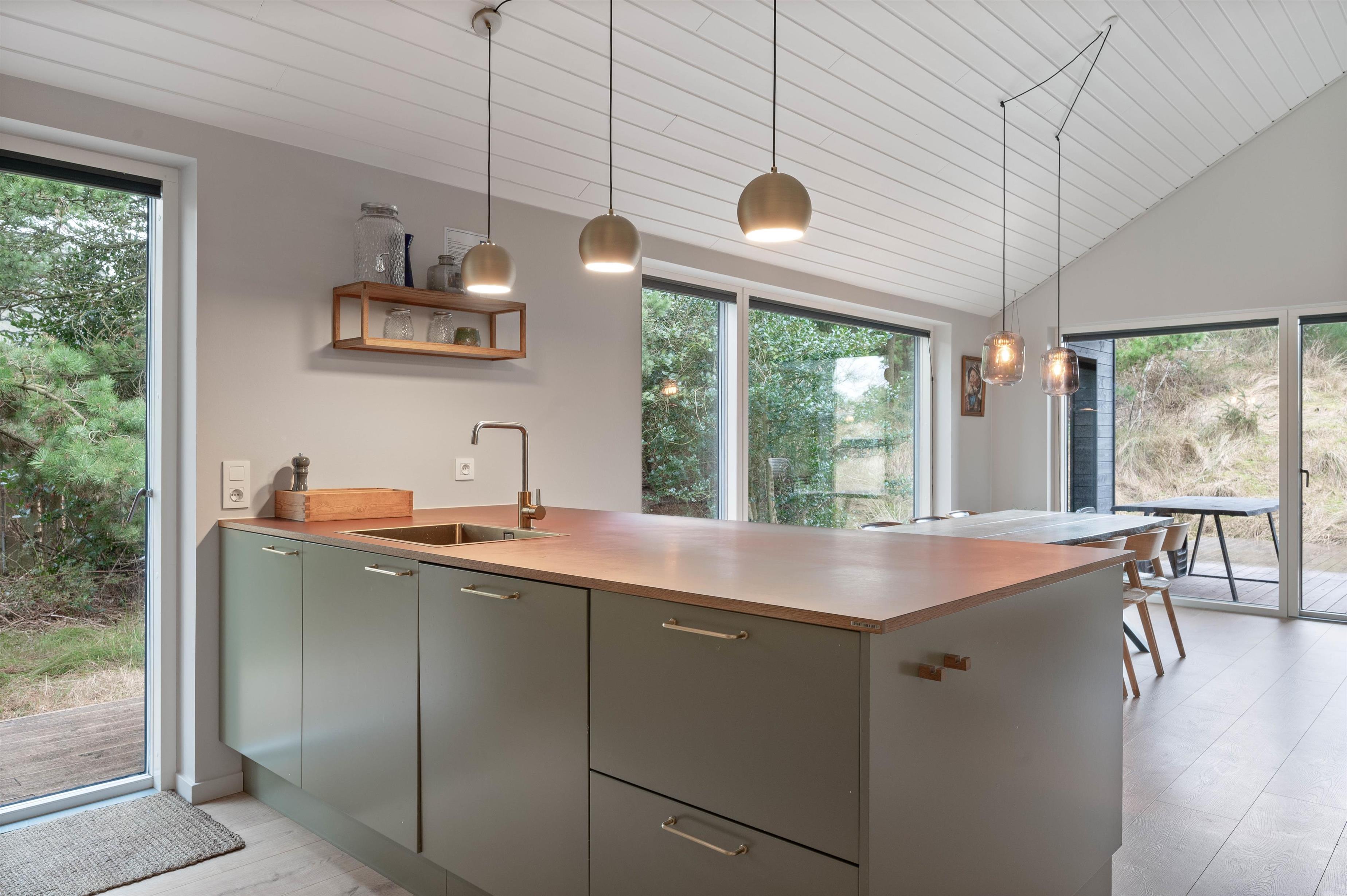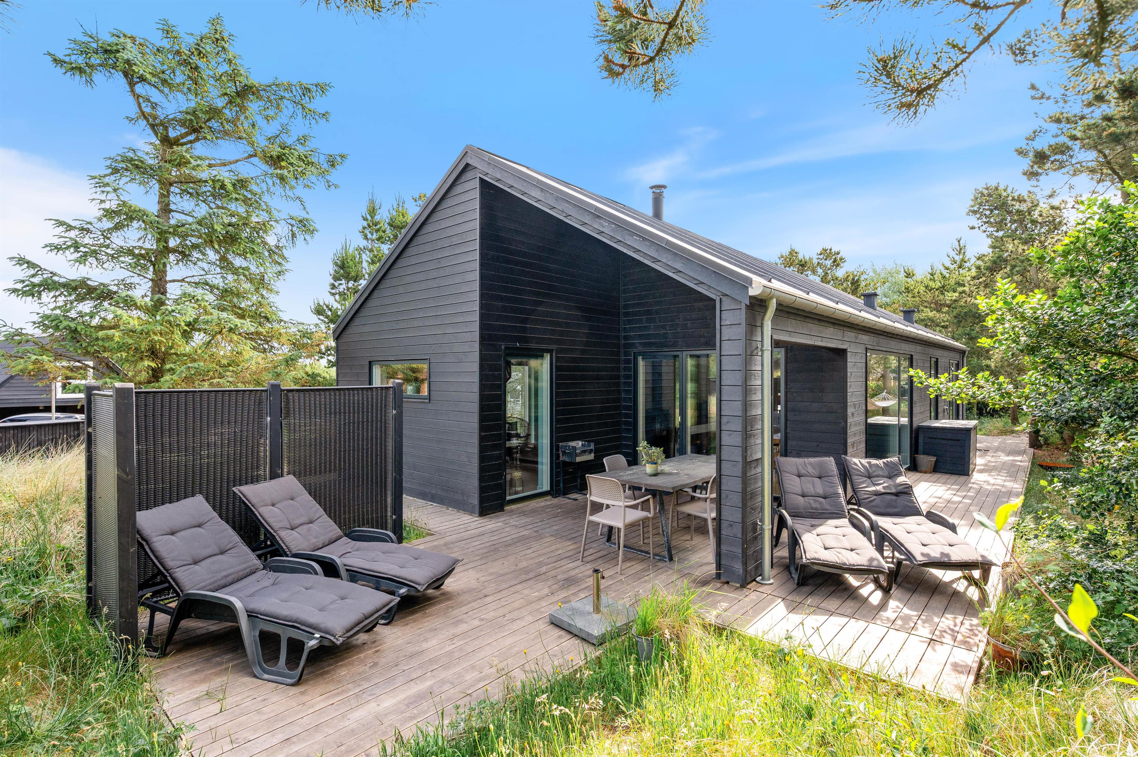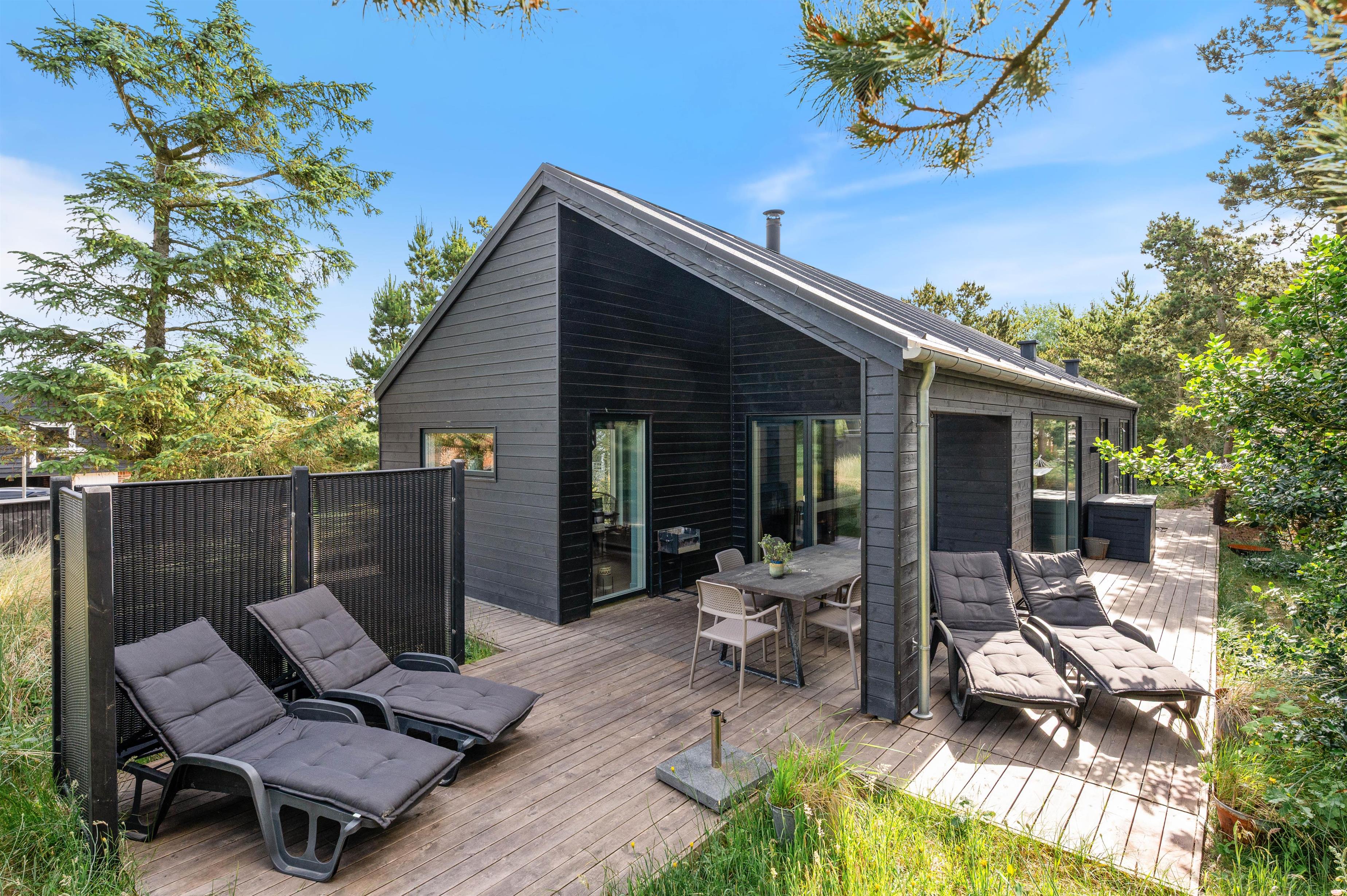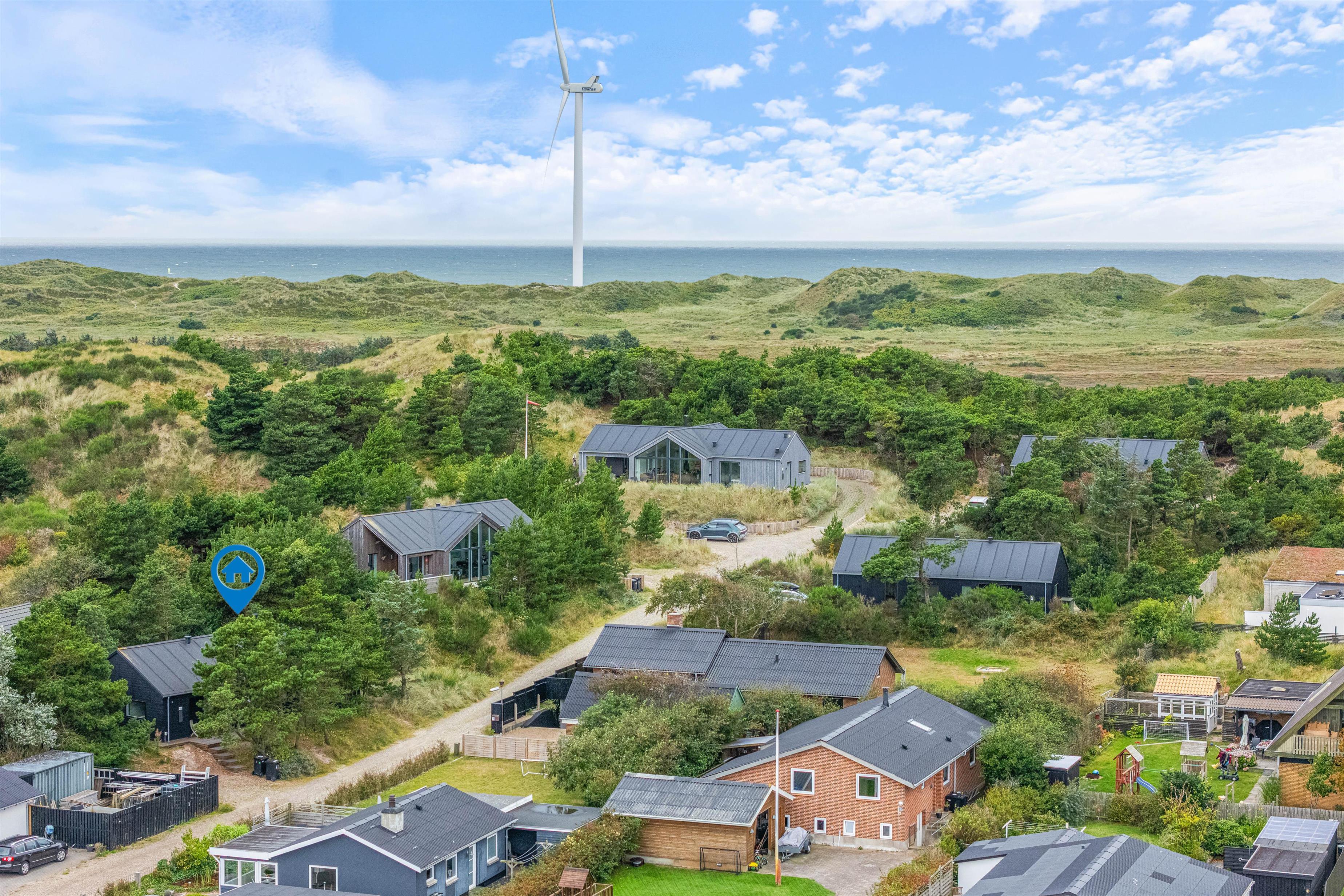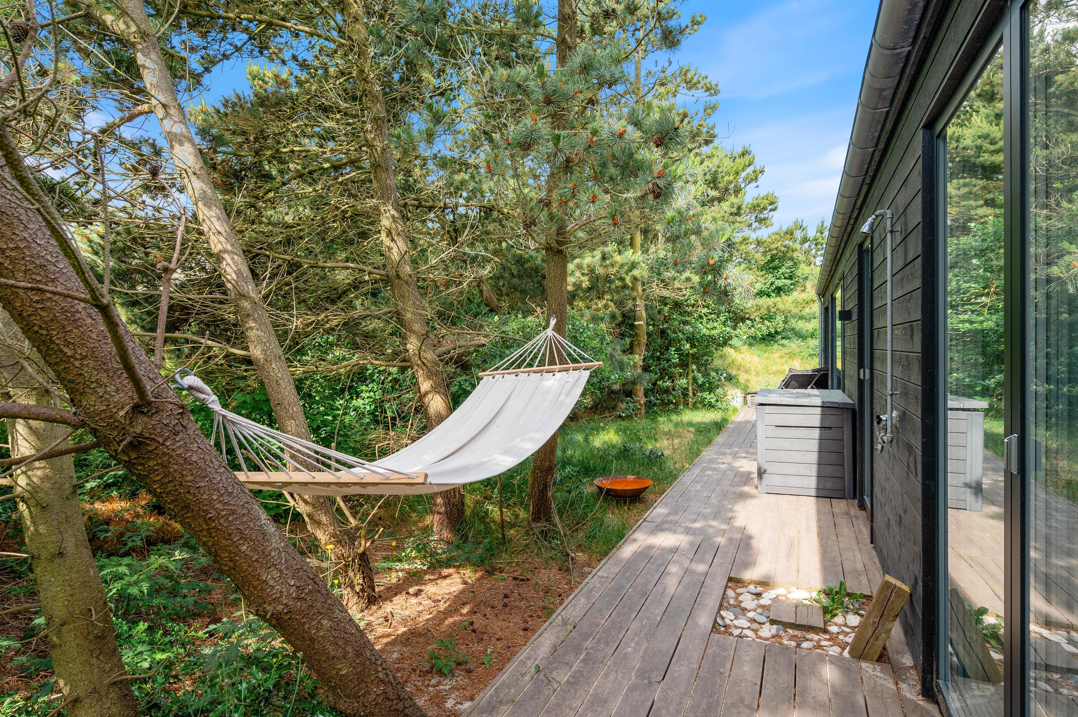 Vesterhavet ligger kun ca. 650 meter fra feriehuset, ideelt til strand- og badeture eller til en romantisk aften på stranden med en flaske rosé i solnedgangen. Efter strandtouren kan du skylle fødderne under udendøresbruseren, som kan benyttes fra april til oktober.