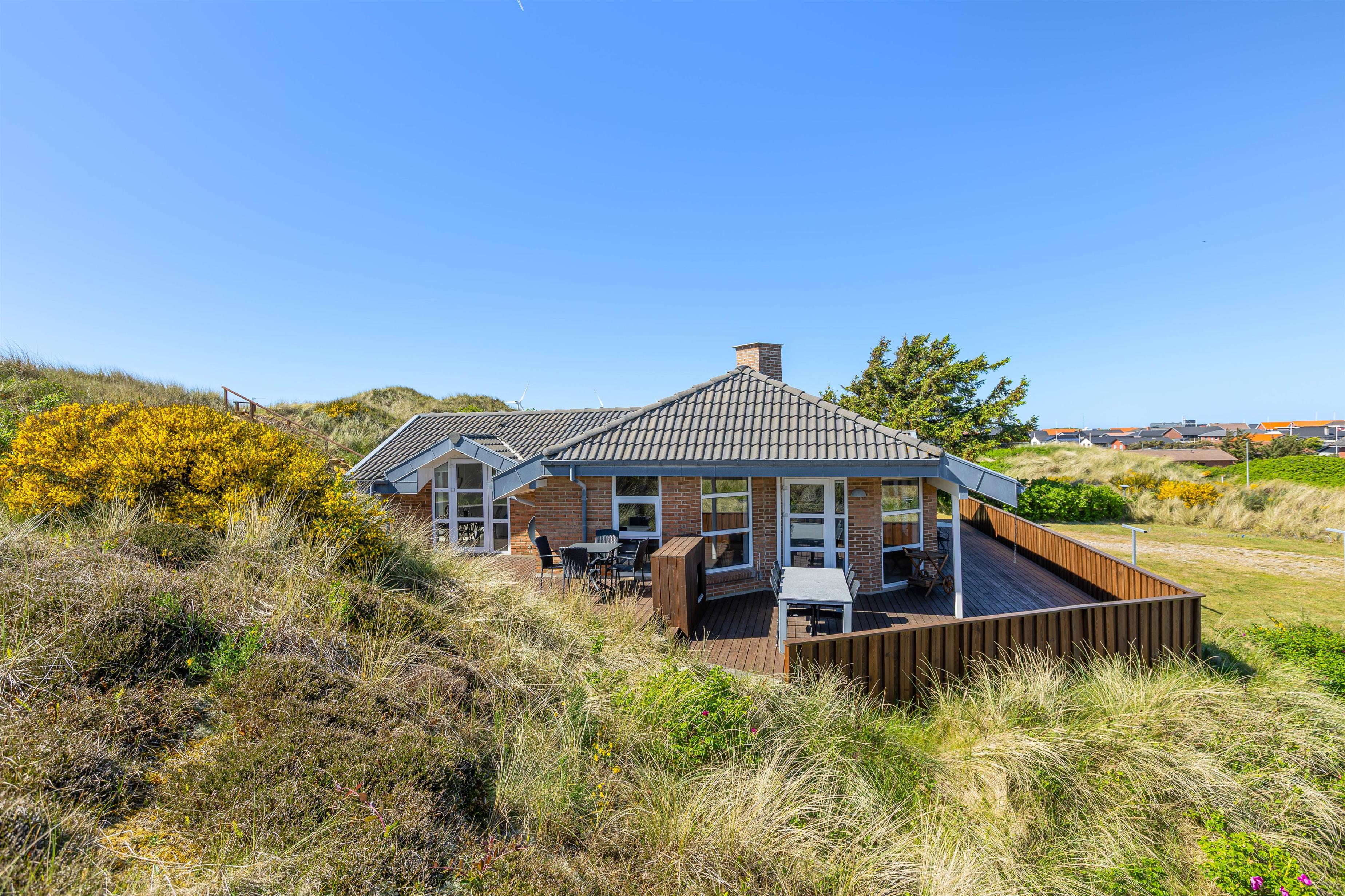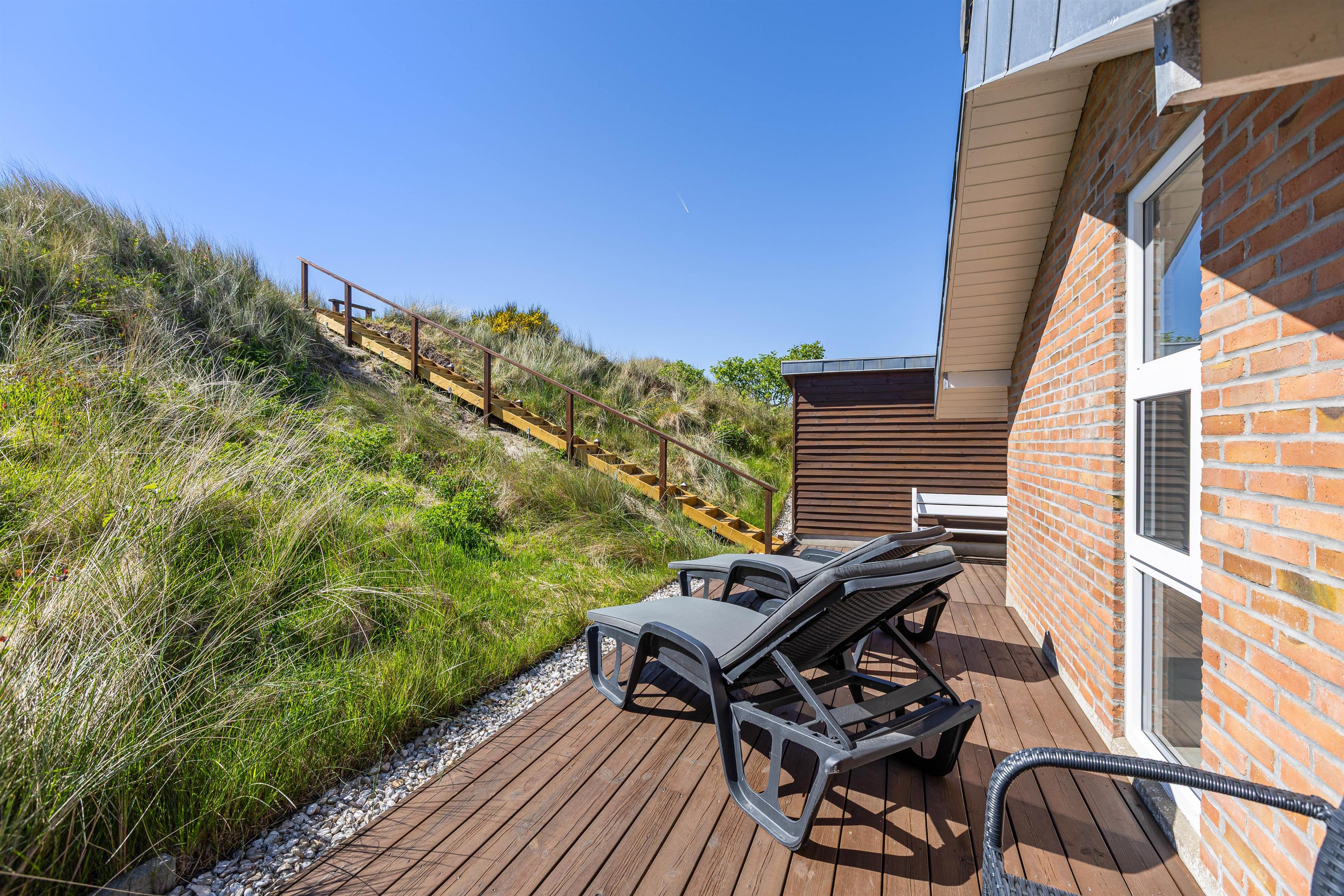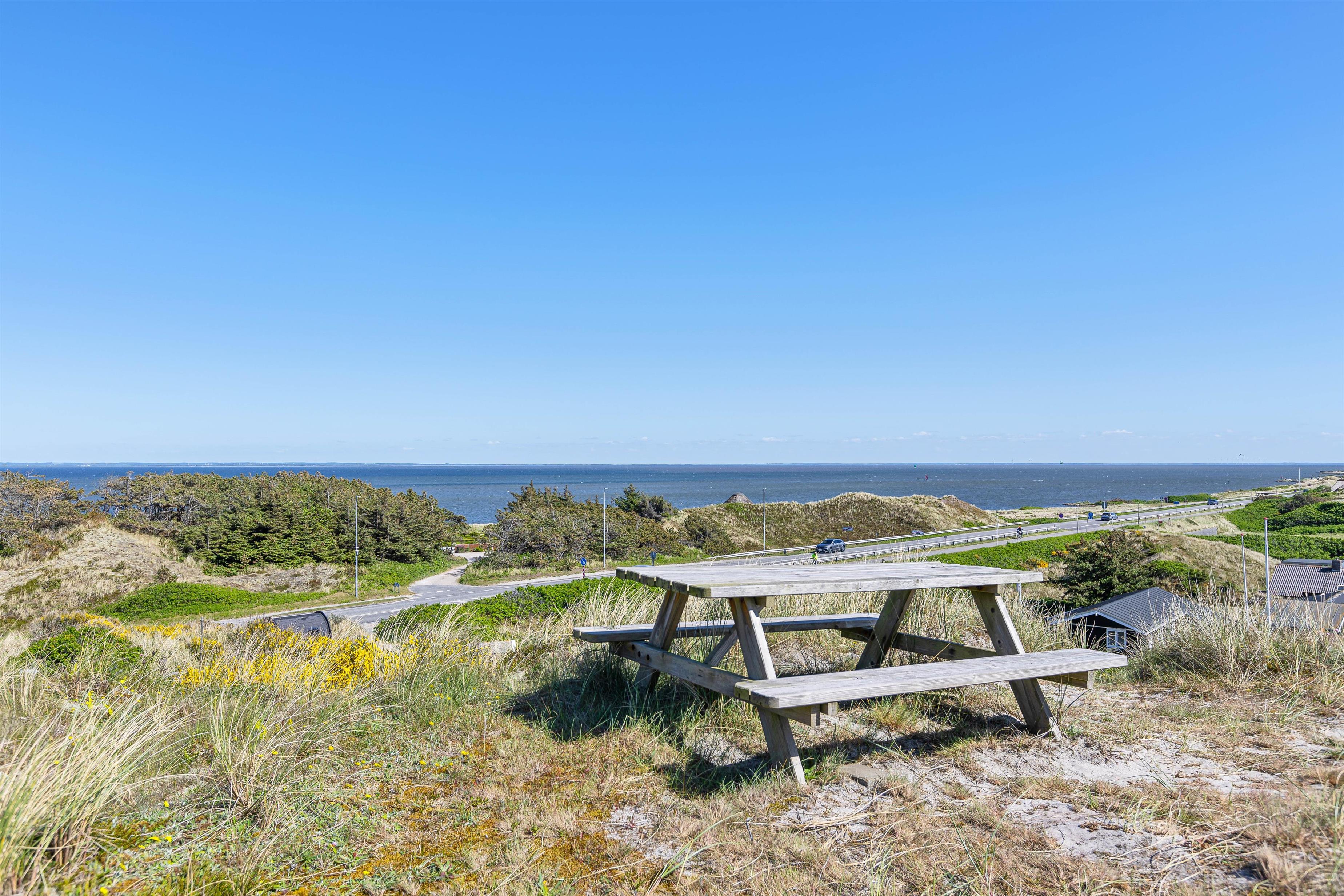 Fra terrassen er der en lille trappe op på højen, hvor I kan sidde som på 1. parket og bare nye den smukke udsigt over området, - her er et skønt panoramablik på både vand og det smukke klitlandskab. Tag på mange gåture i området, og med kun 300 meter til Vesterhavet, er det virkelig oplagt at tage mange ture på stranden. Vesterhavet er helt unikt, og er et besøg værd hele året rundt. Derudover ligger Ringkøbing fjord også ganske tæt på, og er også virkelig værd at tage en tur forbi.