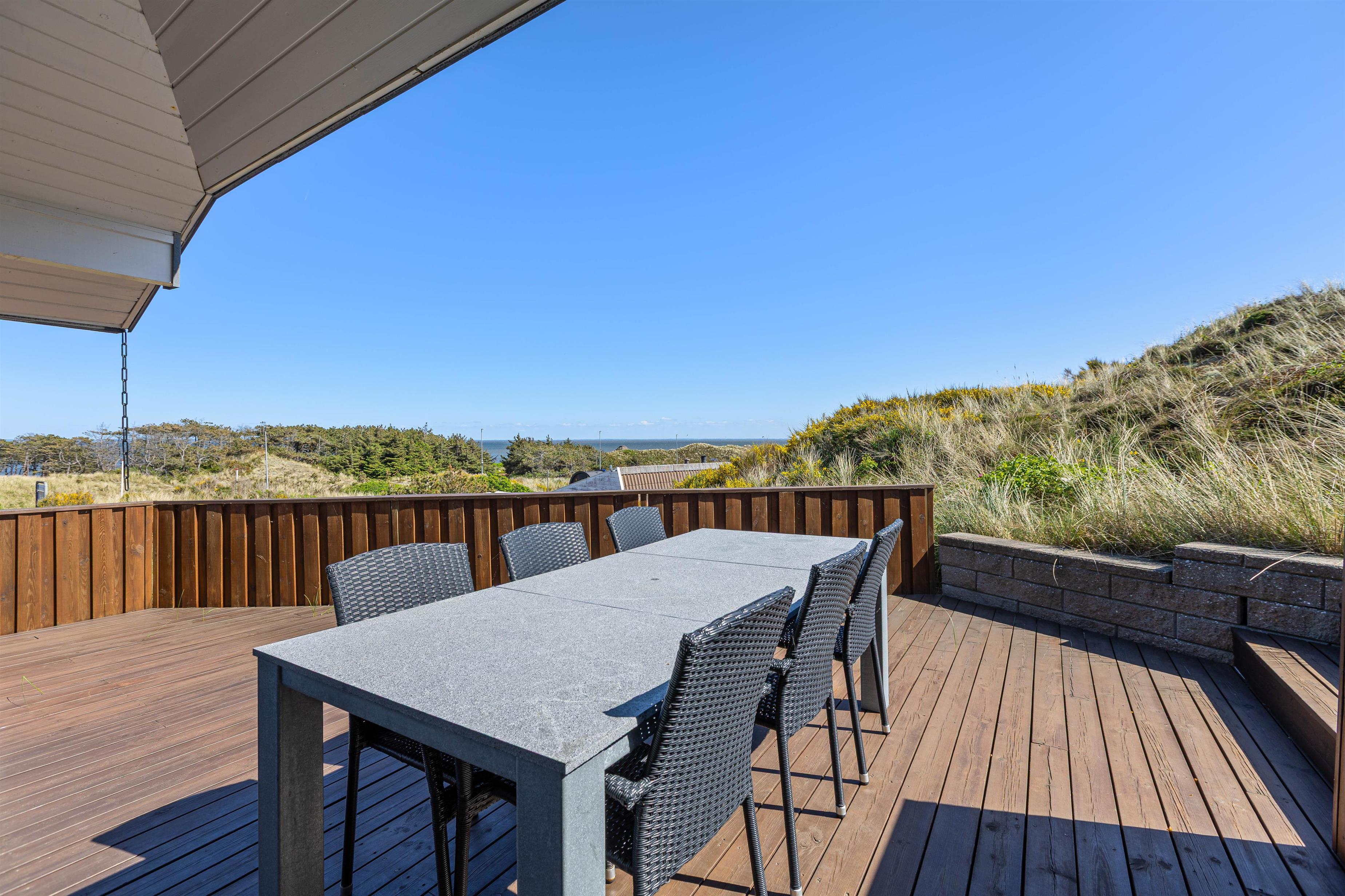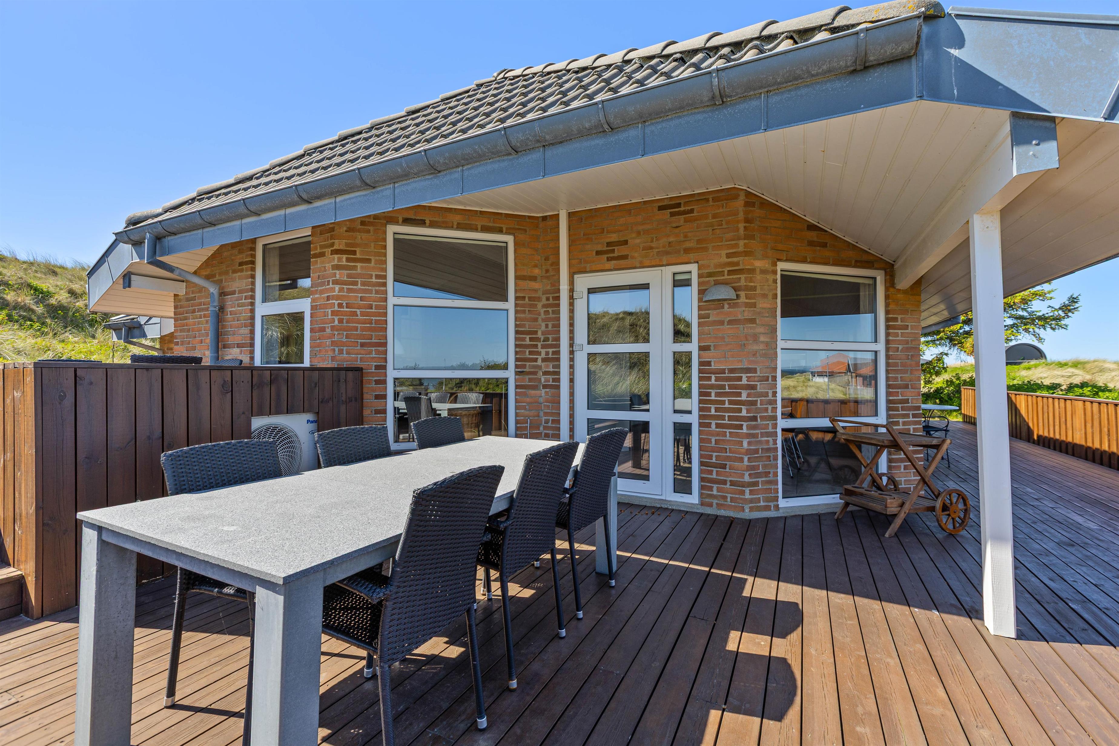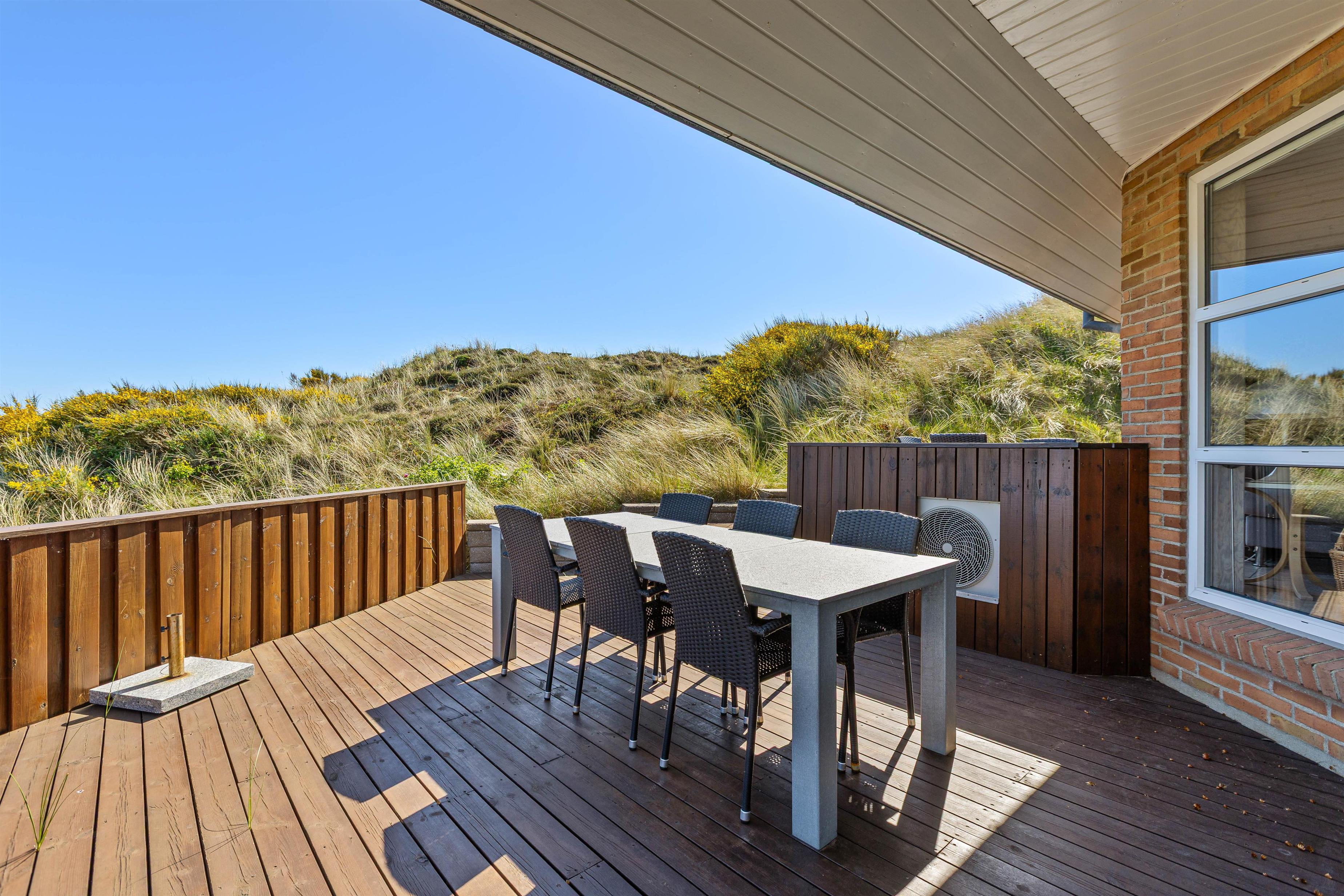 Fra terrassen er der en lille trappe op på højen, hvor I kan sidde som på 1. parket og bare nye den smukke udsigt over området, - her er et skønt panoramablik på både vand og det smukke klitlandskab. Tag på mange gåture i området, og med kun 300 meter til Vesterhavet, er det virkelig oplagt at tage mange ture på stranden. Vesterhavet er helt unikt, og er et besøg værd hele året rundt. Derudover ligger Ringkøbing fjord også ganske tæt på, og er også virkelig værd at tage en tur forbi.
