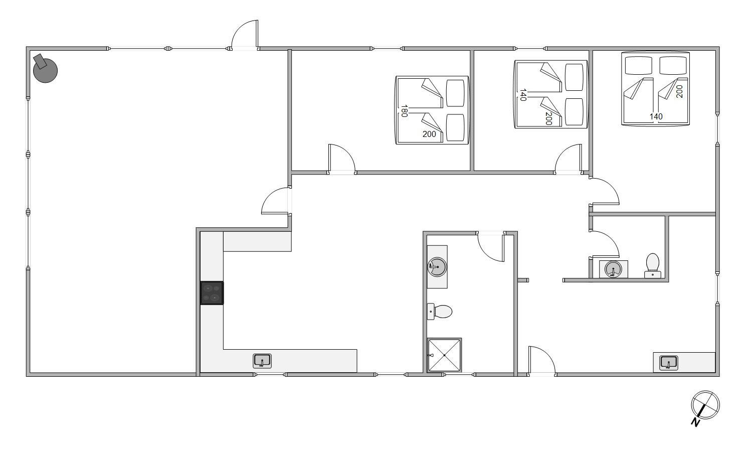 Sommerhuset har 3 soveværelser, som alle tre er udstyret med en dobbeltseng. For at der ikke er stress om morgenen, er der udover et badeværelse også et gæstetoilet i dette feriehus, og de har begge gulvvarme, så man ikke får kolde fødder. Også i køkkenet, hvor gulvet er flisebelagt, er der dejlig gulvvarme. I køkkenet finder du alt, hvad du behøver for at tilberede smagfulde måltider. Køkkenet er stort nok til, at flere af jer kan lave mad sammen, og børnene kan også være med.