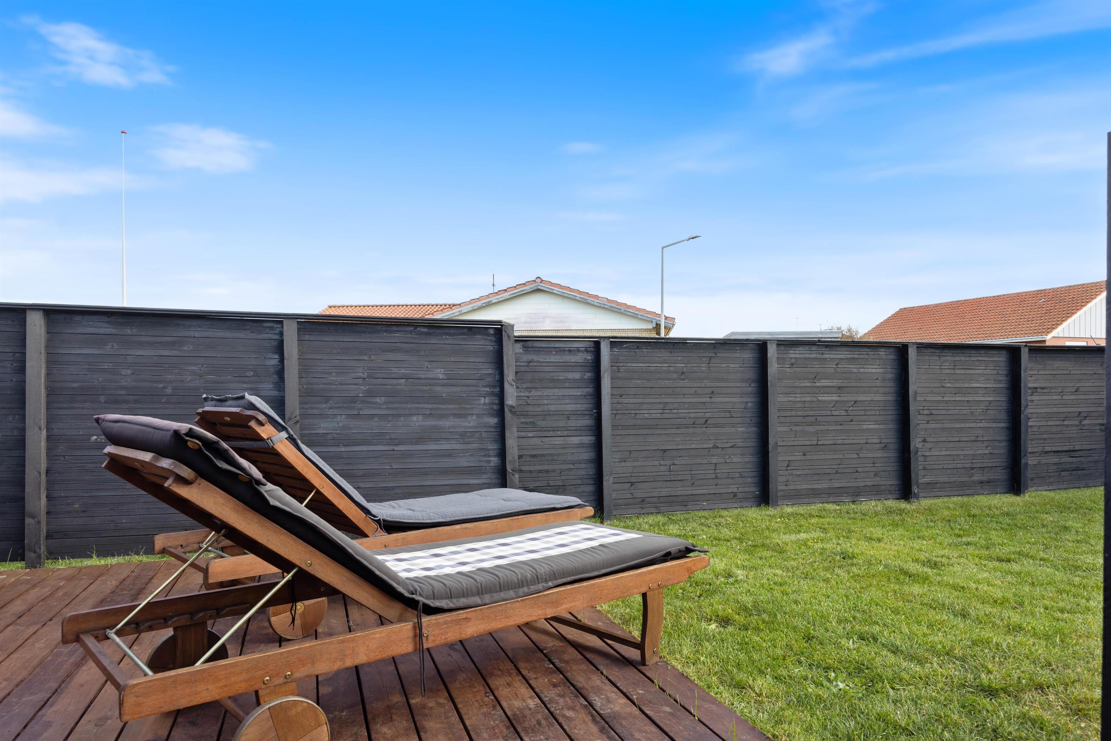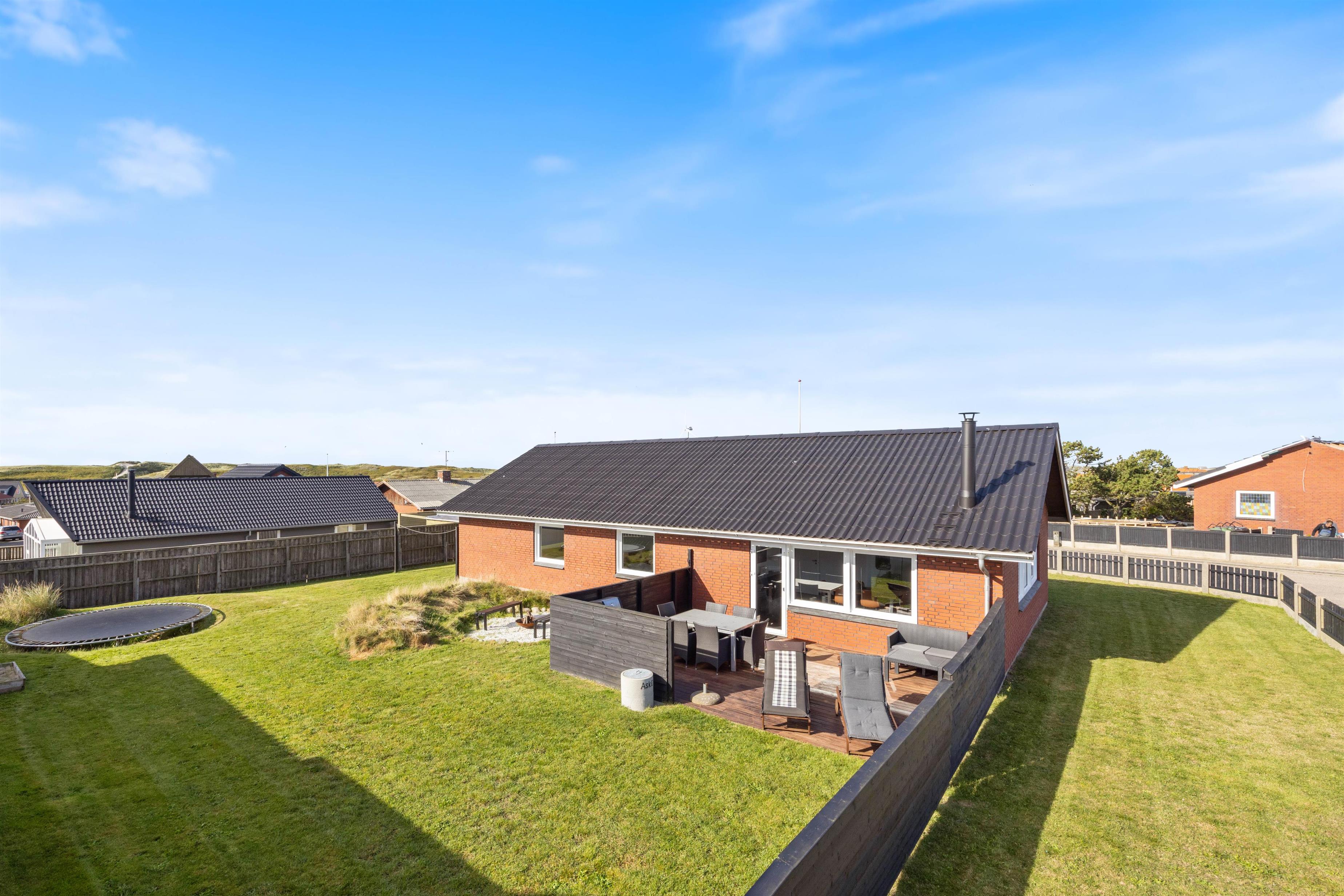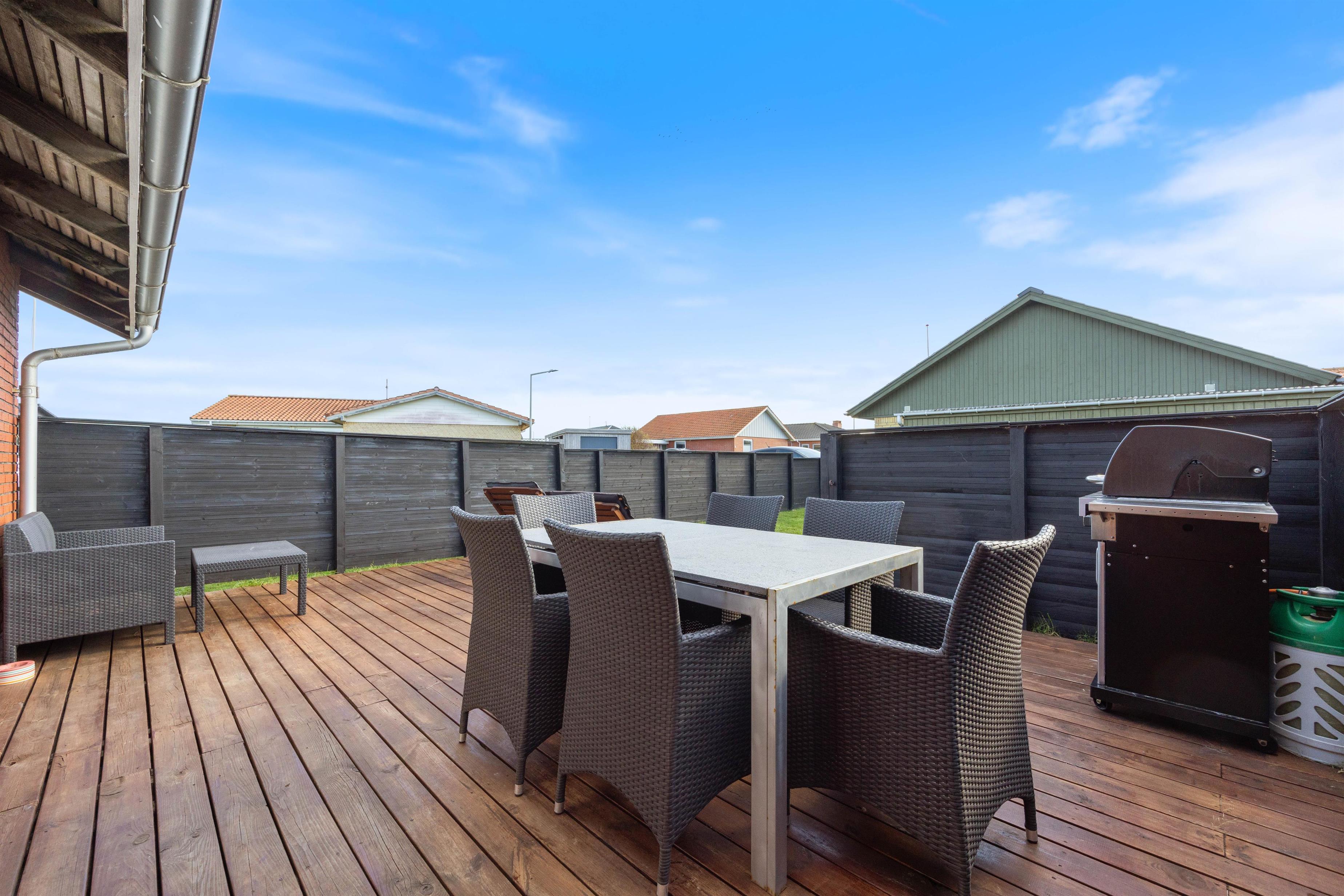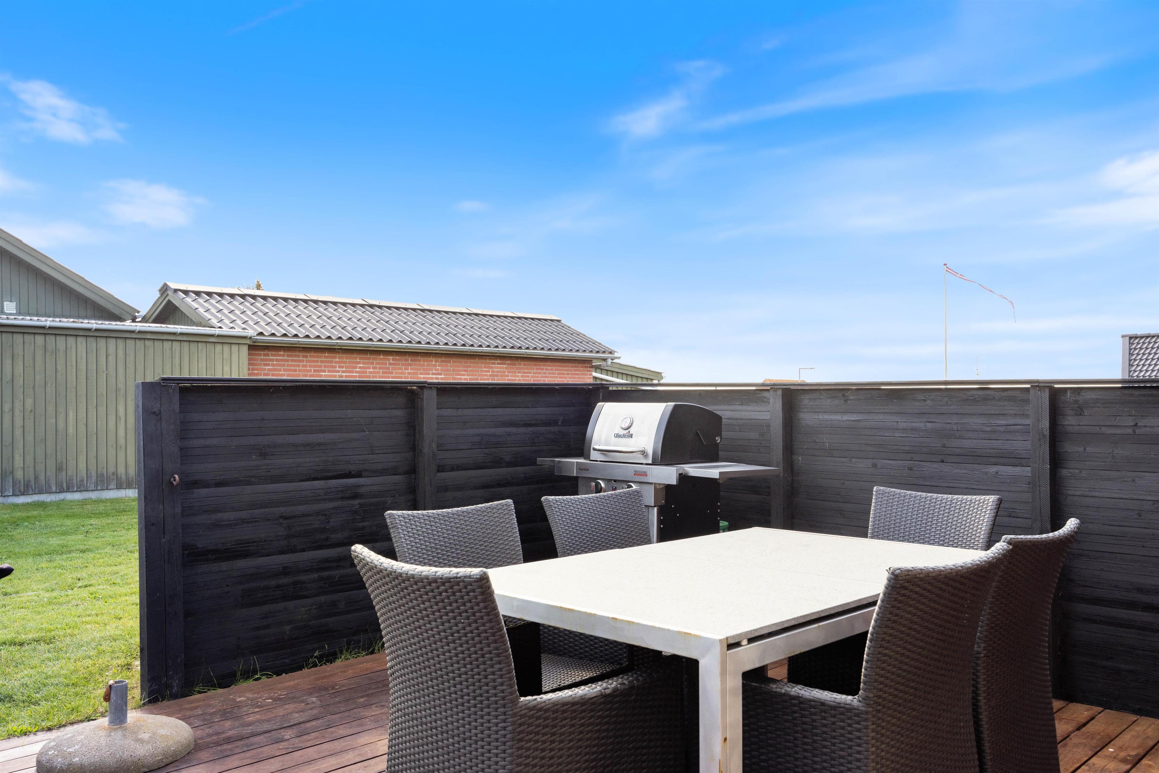 Udendørs venter jer en smuk indhegnet have, som vil være til stor glæde - ikke kun for dig, men også for dine firbenede venner, som kan løbe frit. Terrassen er delvist afskærmet, hvilket giver dig privatliv, så du også kan nyde din ferie udenfor i fred og samtidig sidde i læ. I kan slå jer ned i sommerhusets havemøbler eller finde gasgrillen frem, hvor I nemt og hurtigt kan tilberede et lækkert måltid, som I kan nyde i fællesskab.