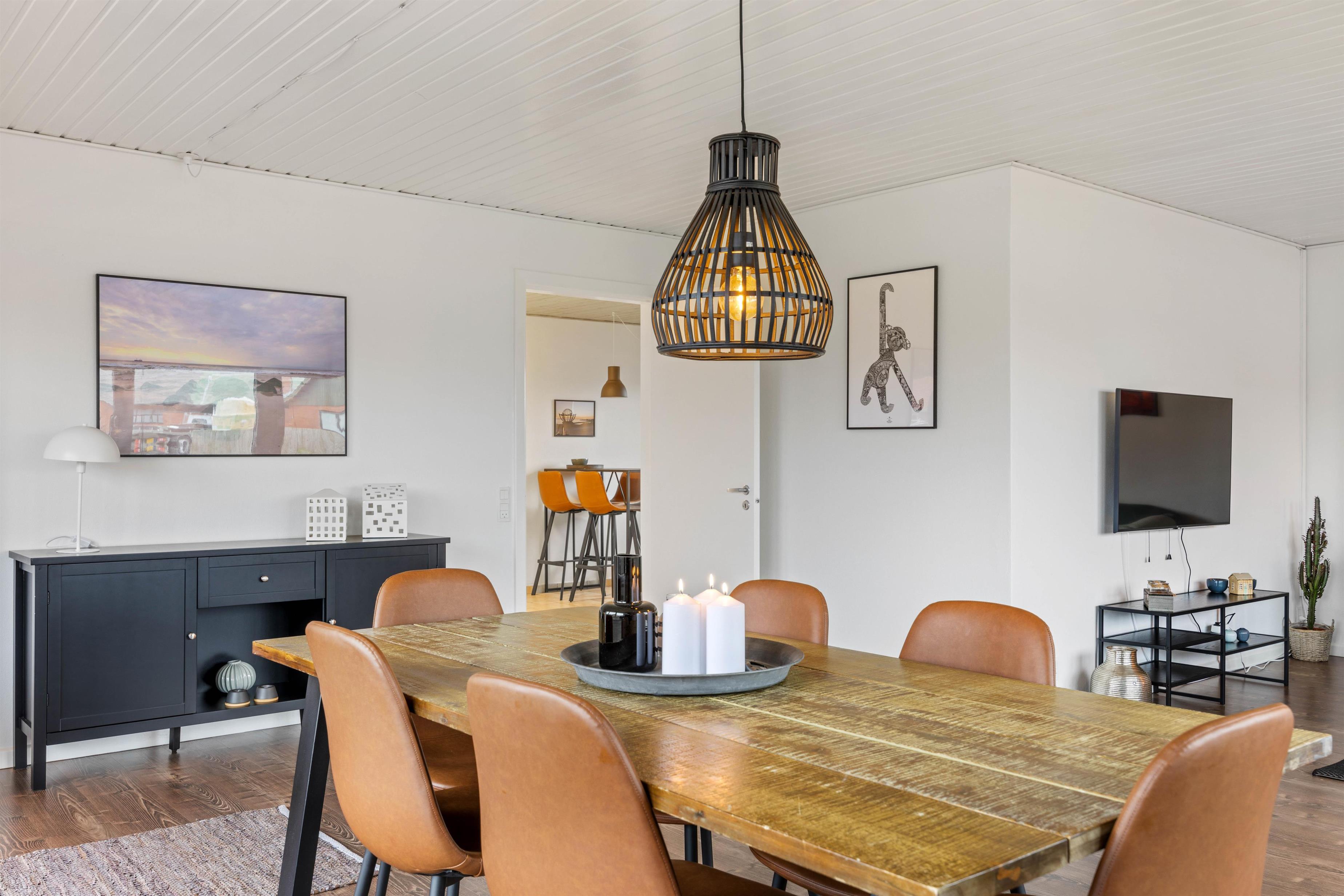 I stuen kan I samles i sofaen og have en hyggelig aften med blandt andet kort- og brætspil, hvilket er sjovt for både store og små. For at gøre det endnu mere behageligt kan I tænde op i brændeovnen og nyde varmen derfra. Der er ikke noget mere hyggeligt og mere afslappende end at høre lyden af de knitrende flammer.