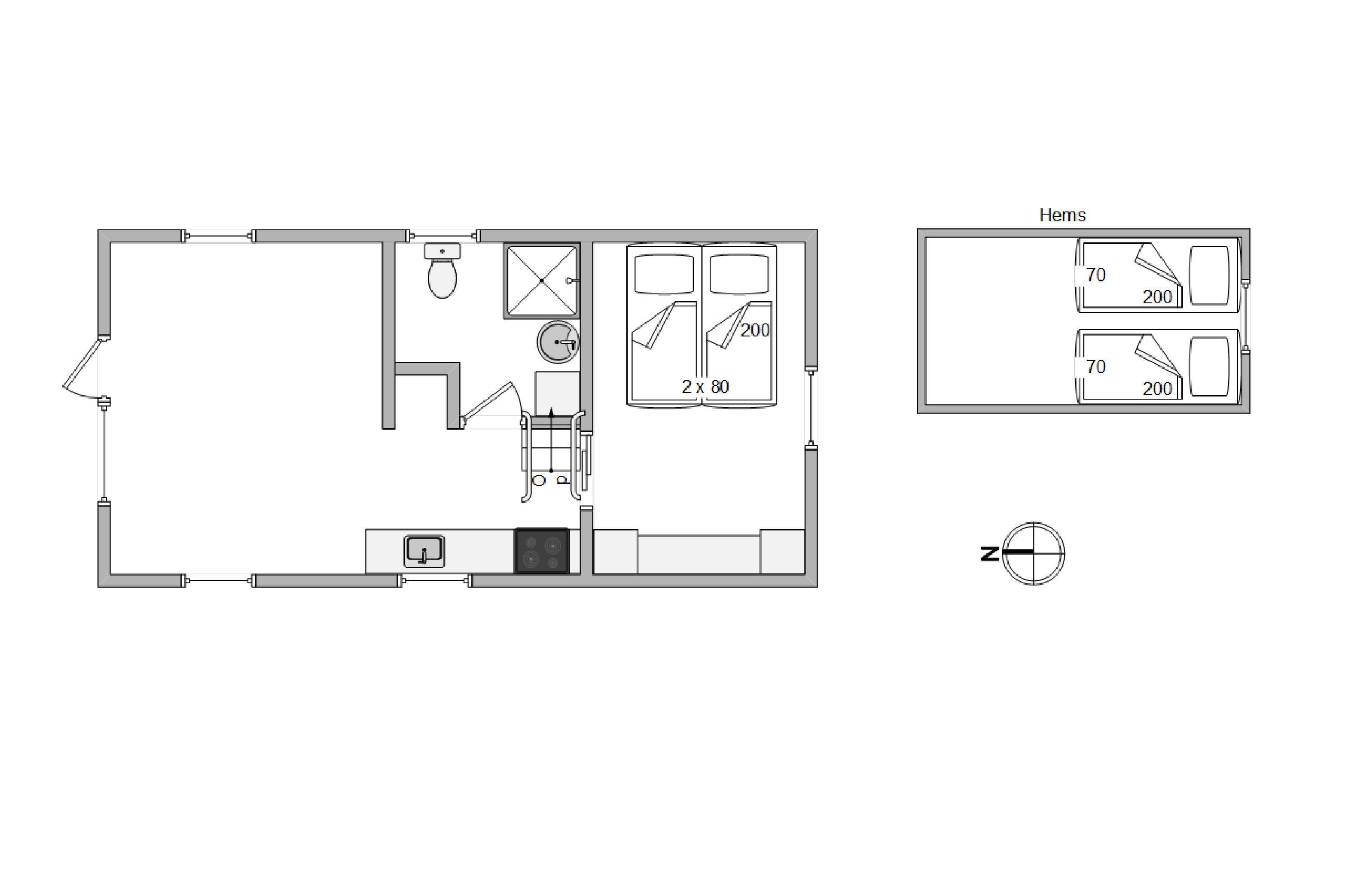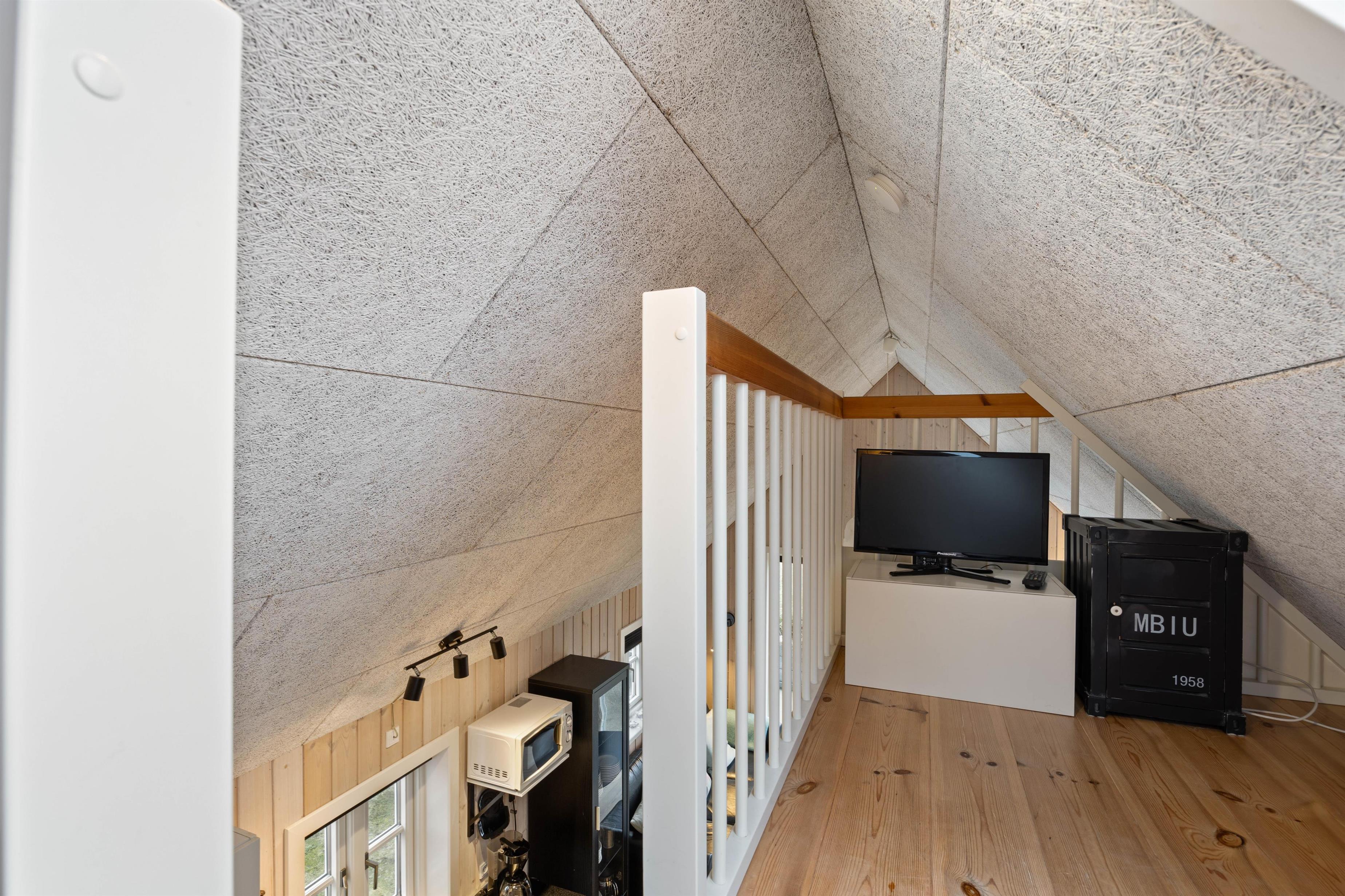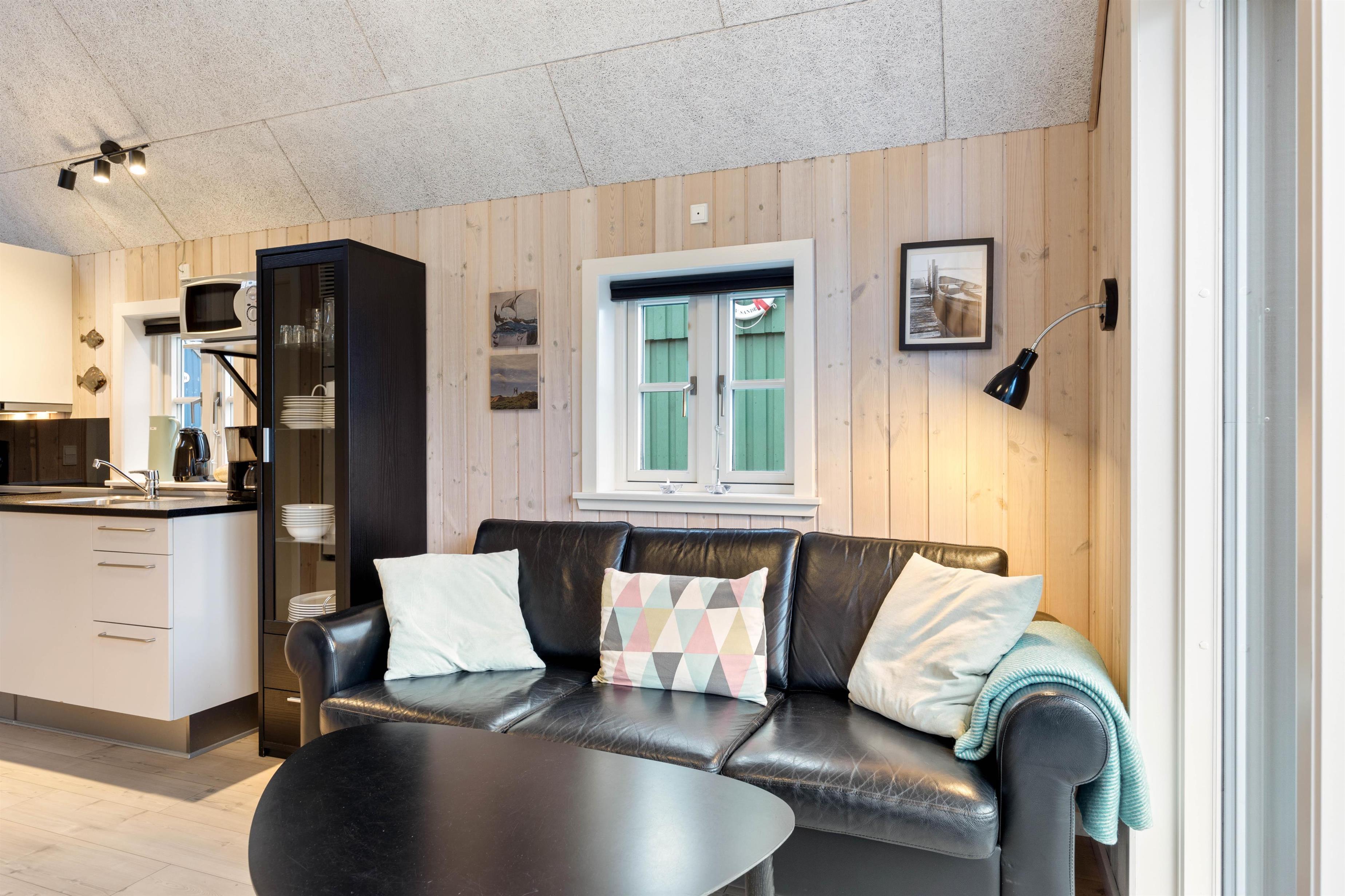 Den lille fine hytte er bygget i med respekt for omgivelserne og i samme stil som de gamle hytter der står i området. Inden i er hytten moderne og indbydende indrettet med et godt soveværelse med dobbeltseng og fladskærm, fint badeværese med gulvvarme og bruseniche og praktisk indrettet køkken med opvaskemaskine og køle/fryse skab. Den hyggelige stue står i åben forbindelse med køkkenet og her er der adgang til hems med 2 sovepladser. Fjernsynet poå hemsen er kun til DVD-afspiller eller spillekonsol. I stuen er der fladskærms-TV og du har også adgang til gratis trådløst internet. Hytten opvarmes med en energibesparende varmepumpe.
