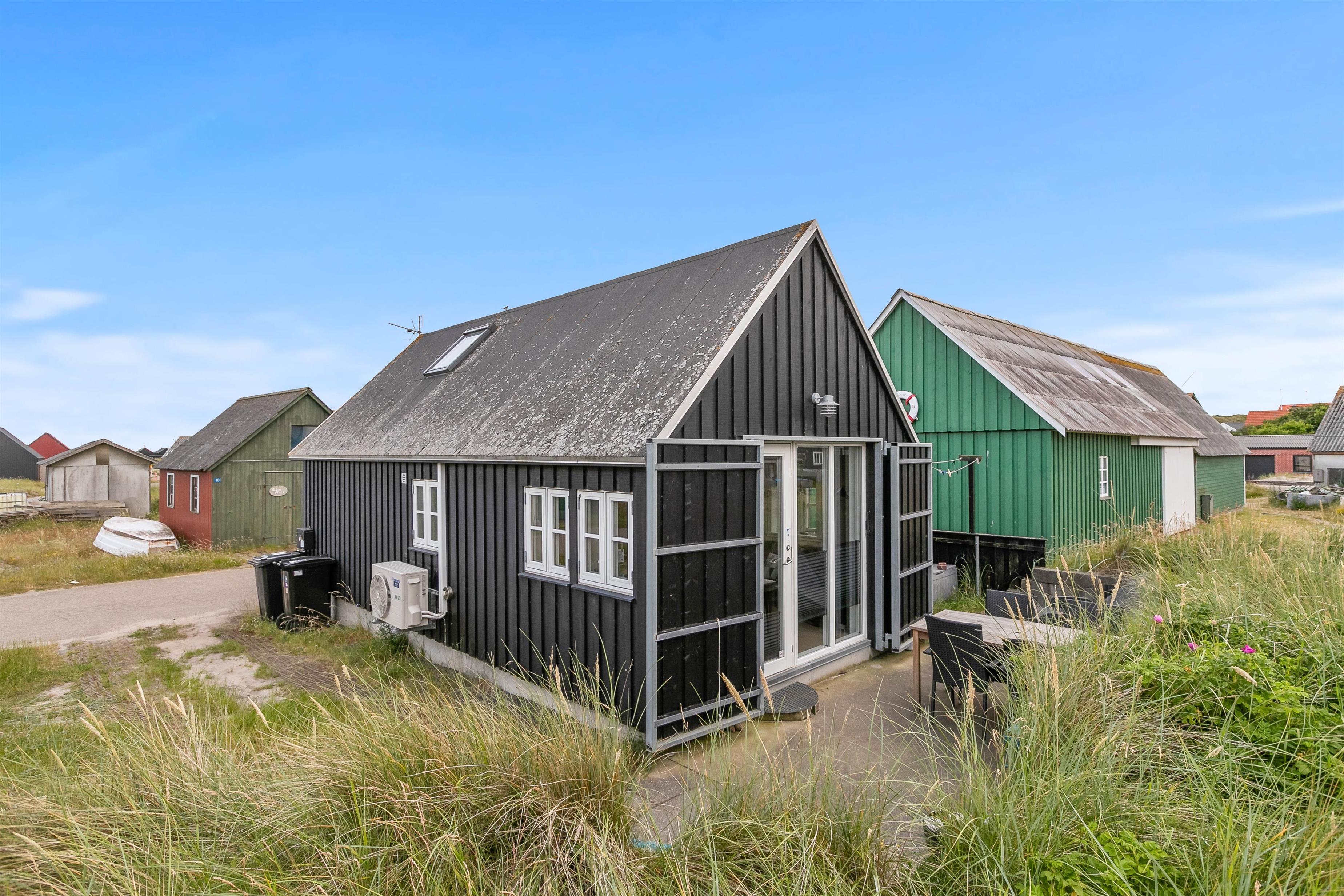 En dejlig lille hytte bygget i et gammelt havne område i Hvide Sande. Her har hytterne i mange år fungeret som opmagasinering for fiskernes redskaber. I dag er mange af de gamle hytter fjernet og bliver nu erstattet at disse små hyggelige hytter, som er bygget med respekt for området, så det autentiske miljø bevares. Her er kun et par minutters gang til fjorden og Hvide Sandes hyggelige Lystbådehavn, og til Tyskerhavnen, – en velfungerende lille jollehavn hvor der losses små fangster af f.eks. sild og skrubber.