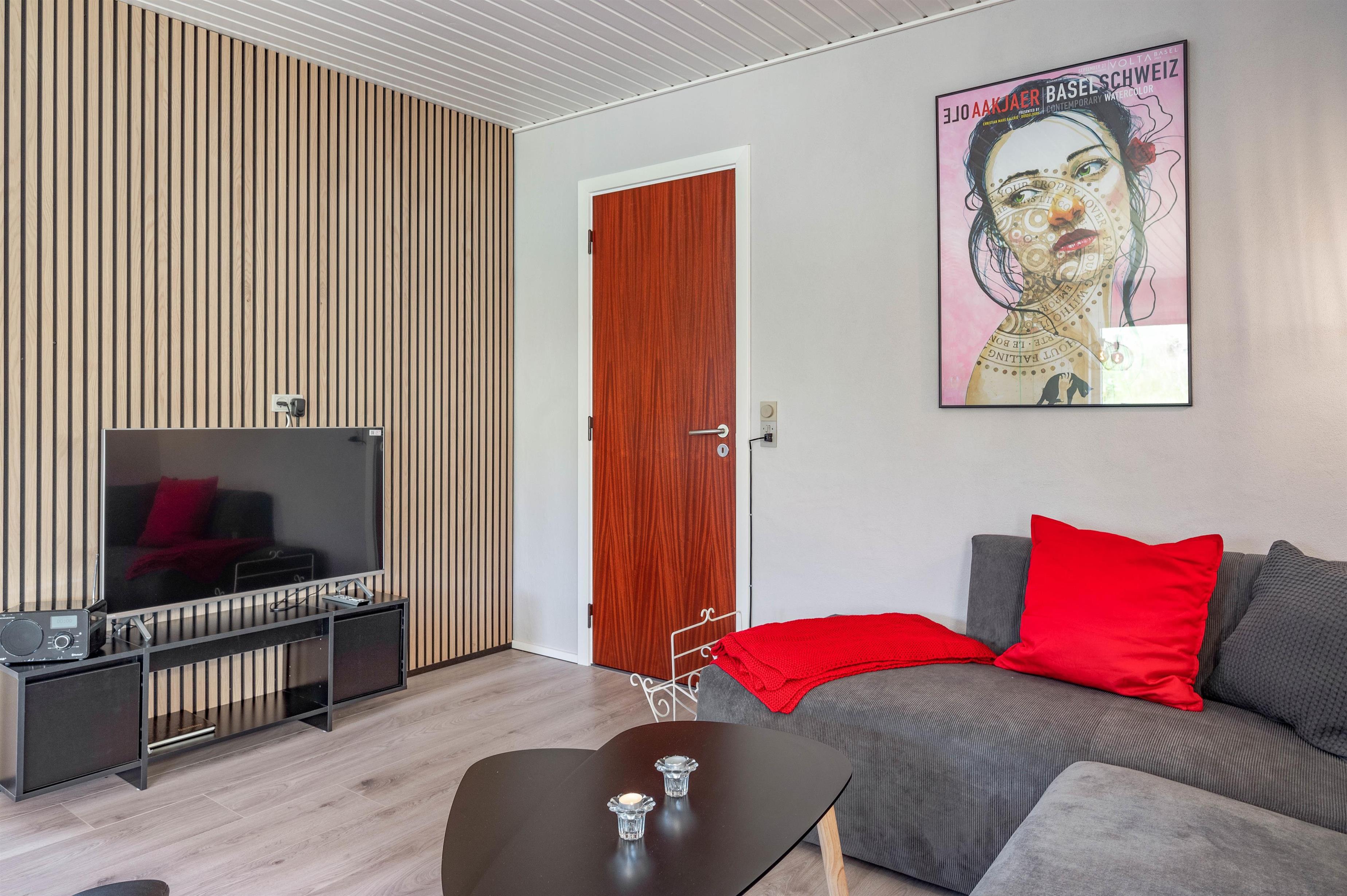 I stueområdet, der står i åben forbindelse til køkkenet, er der både fladskærms-TV og bluetooth-højtaler, så I kan se en god film eller høre jeres yndlingsmusik. I opholdsrummet er der også gulvvarme, som sørger for I aldrig fryser fødderne. Det samme gælder badeværelset.