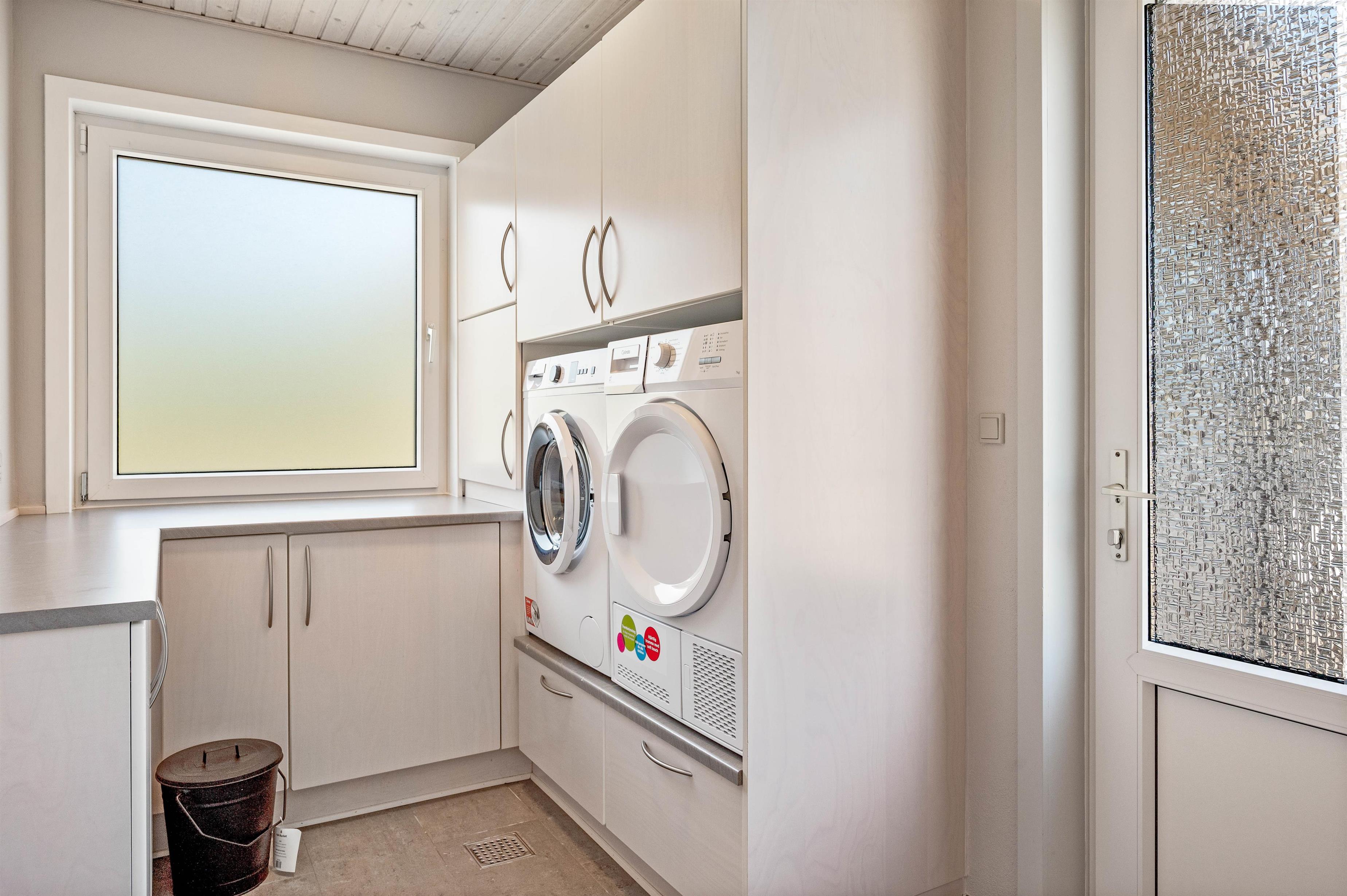 Der er også både vaskemaskine og tørretumbler, som I finder i husets bryggers. I bryggerset er der også rigeligt med ekstra skabsplads – et plus når man er en hel familie afsted. Der er 2 praktiske frysere i feriehusets skur, en til jeres selvfangede fisk og en til andre fødevarer.