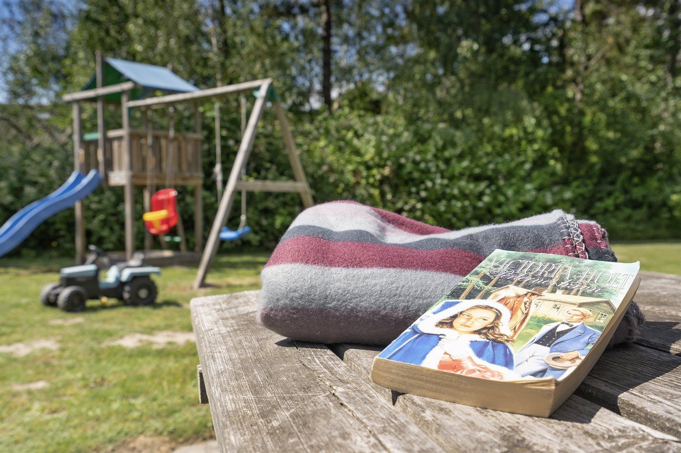 Ferieboligen er beliggende på en 1845 m² stor havegrund. Der er 300 m til havet. Nærmeste forretning er beliggende i en afstand af 5000 m. Til ferieboligen hører 80 m² terrasseareal. Desuden er der 20 m² overdækket terrasse. Gynge. Legetårn. Rutchebane. Parkering ved ferieboligen.