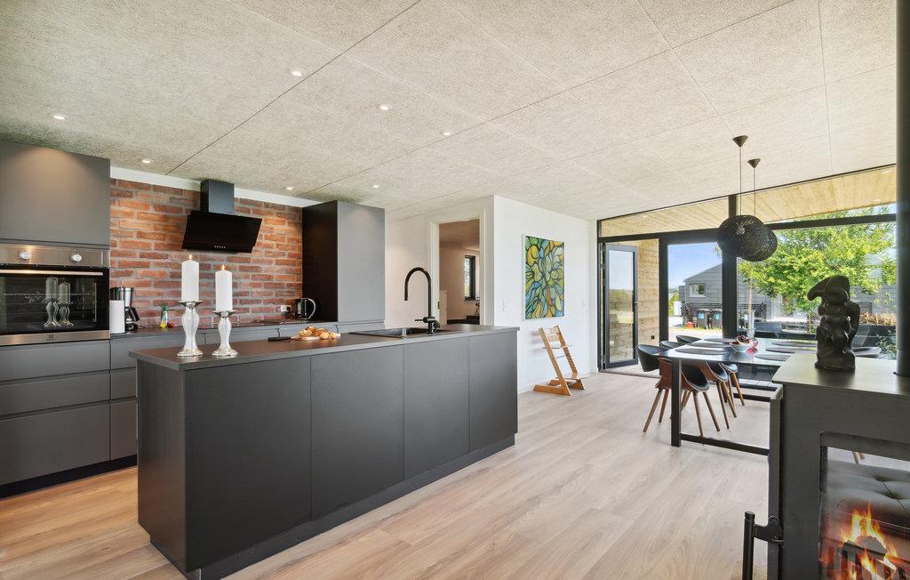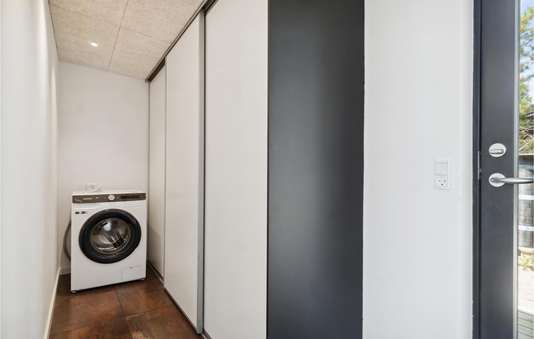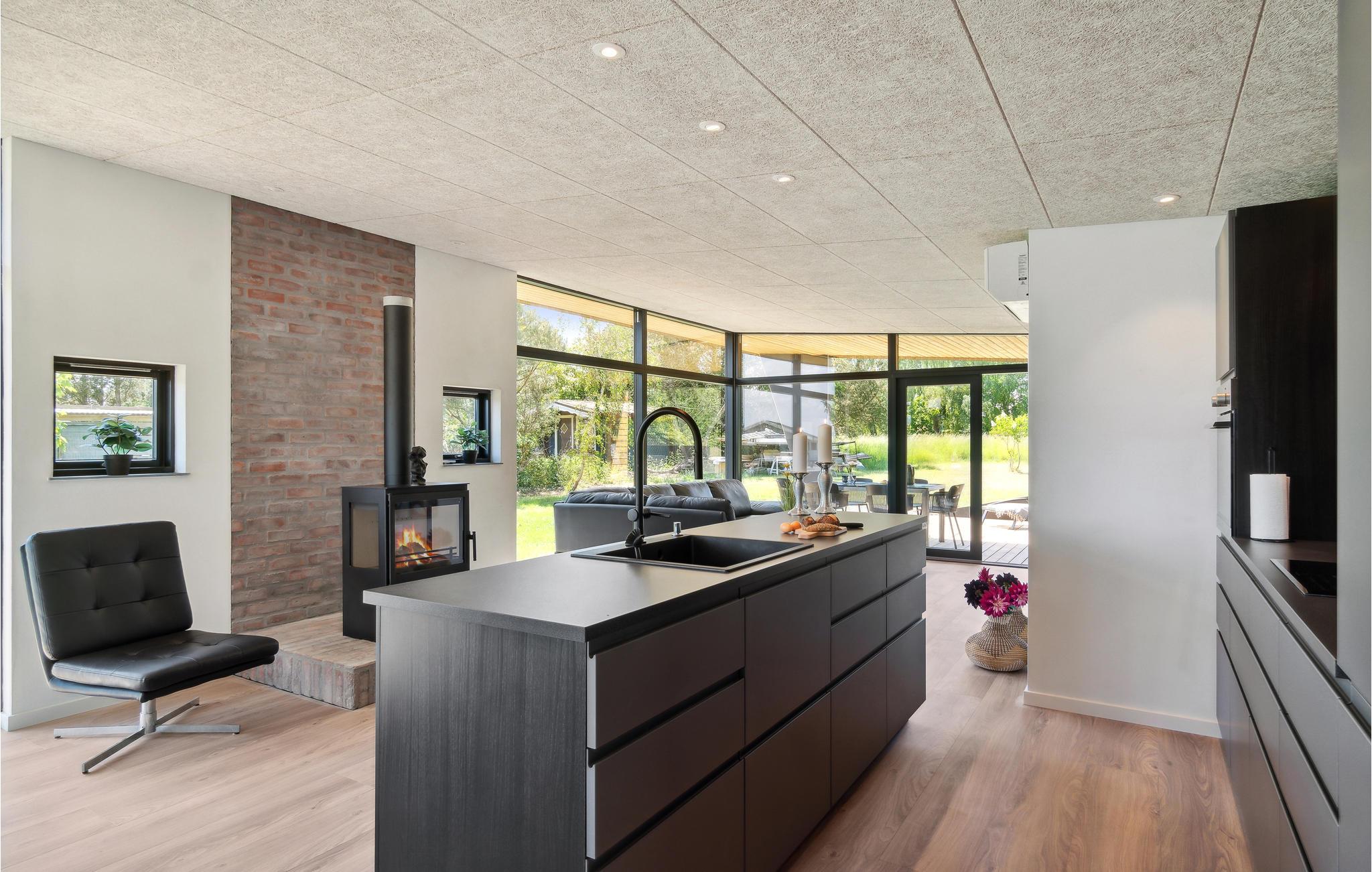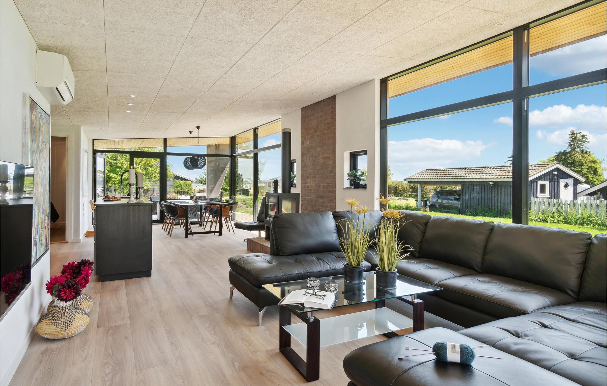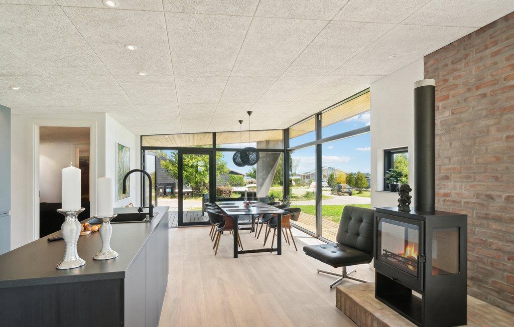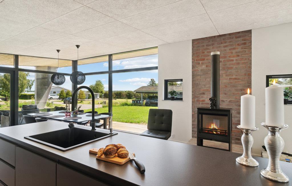 Tilbring en vidunderlig ferie i dette stilfuldt indrettede feriehus, som byder jer velkommen på en drømmeagtig beliggenhed nær fjorden. Panoramavinduerne fra gulv til loft giver jer en unik følelse af at være både inde og ude på én og samme tid. I kan sikkert allerede forestille jer oplevelsen af en nærmest magisk solnedgang! Nyd måltiderne ved det lange spisebord. Her mærker I naturens nærhed. Det bliver ekstra hyggeligt, når I tænder op i brændeovnen, som spreder en dejlig varme. Sæt jer godt til rette på terrasserne, hvor I kan slikke sol, læse den bog, I ikke har haft tid til at læse, og nyde lækre grillretter under åben himmel. Der er kun få skridt til fjorden, hvor I også kan bade. Huset ligger i et område med smuk natur, som indbyder til lange gå- og cykelture. ?
